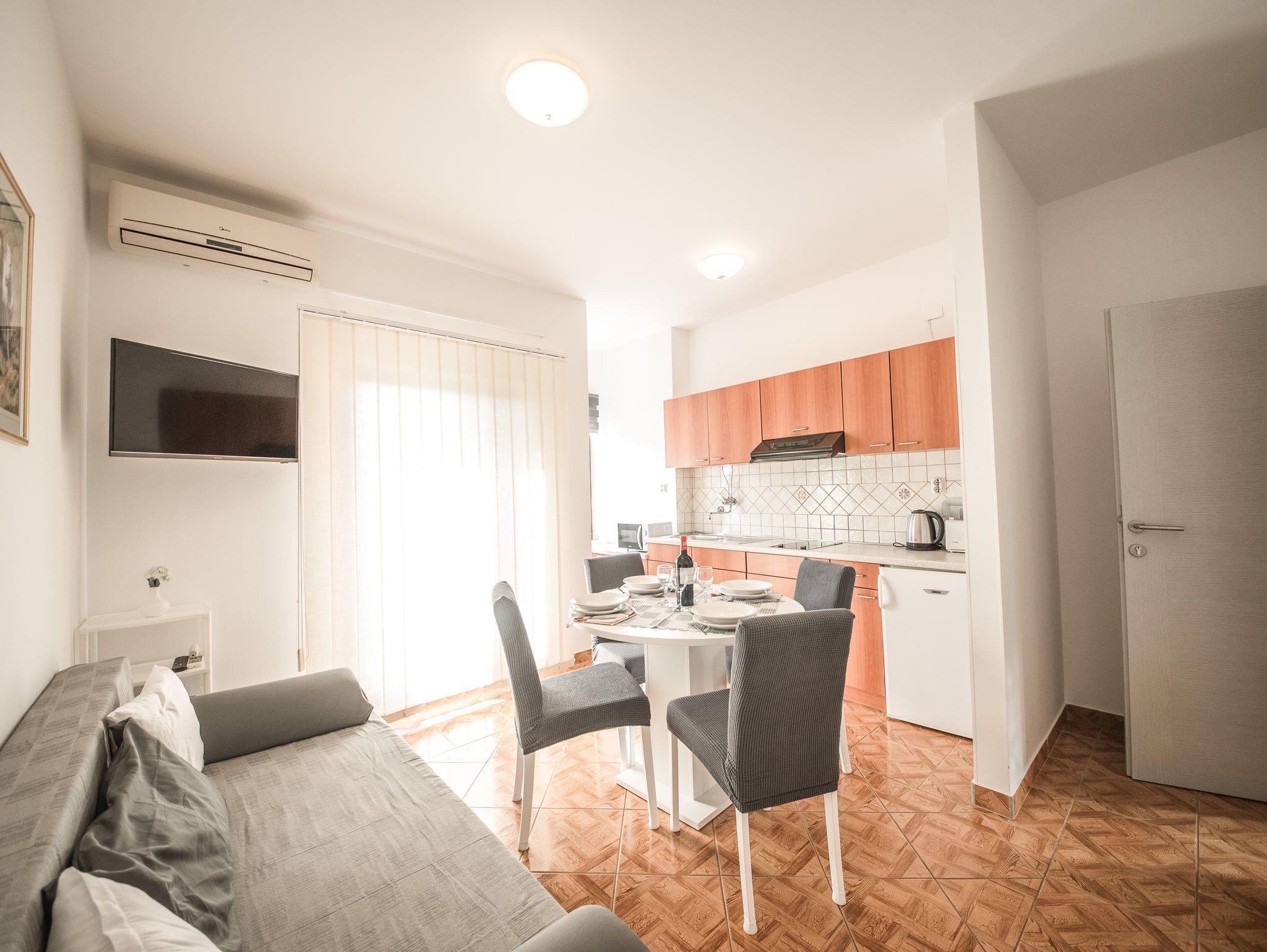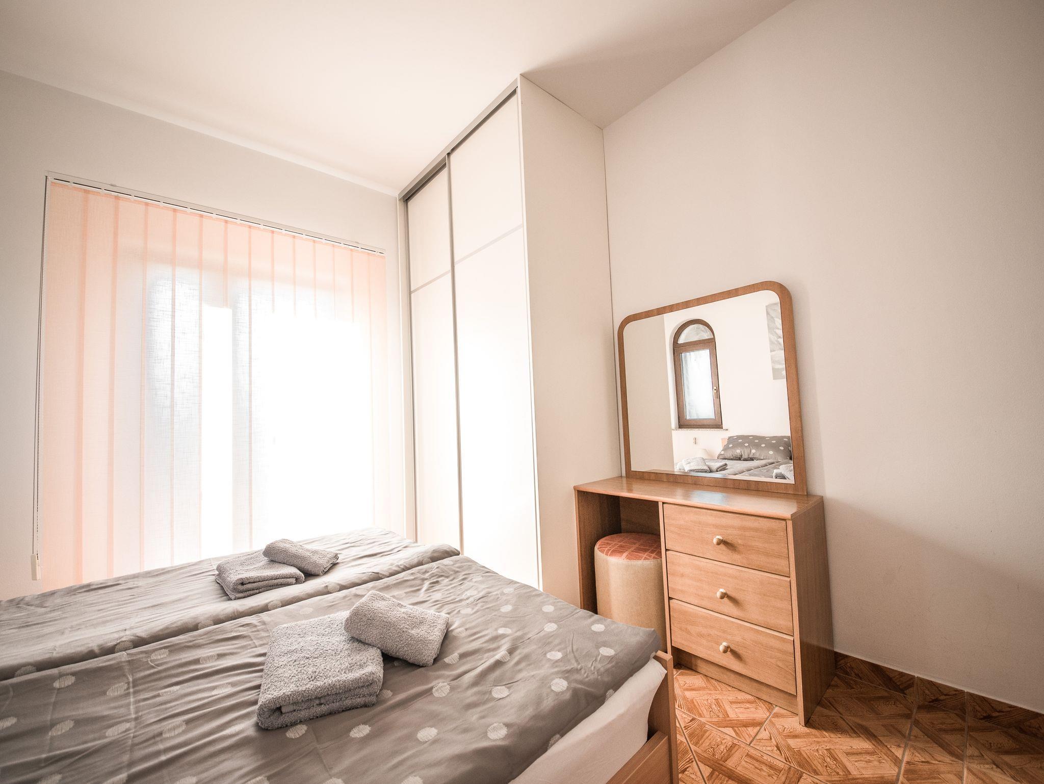 Ferienwohnung bietet Platz für 4 Gäste. Die Betten sind in Schlafzimmern, die es 1 gibt, und in Esszimmer, innerhalb einer Gesamtfläche von 30m2, angeordnet. Die Gäste haben einen eigenen Balkon zur Verfügung, auf der sie in warmen Sommernächten genießen können. Das Apartment bietet Meerblick. Es ist erlaubt, Speisen auf dem Gemeinschafts-Grill vorzubereiten. IM PREIS INBEGRIFFEN: Kurtaxe, Endreinigung, Klimatisierung, Parkplatz, Internet, Kinderbett, Bügeleisen, Bügelbrett, Föhn. VERBINDLICHE ZUSÄTZLICHE KOSTEN: Aufzahlung für Kurzaufenthalte (prozentualer Zuschlag pro Nächtigungsanzahl: 30% - 1, 20% - 2, 10% - 3). UNVERBINDLICHE ZUSÄTZLICHE KOSTEN: Wäschewaschen (5,00 € Waschen), Bootsanlegeplatz (10,00 € pro Nacht). Die Verfügbarkeit zusätzlicher Dienstleistungen in Ihrem reservierten Termin und die Preise derselben (falls nicht aufgeführt) müssen im Voraus überprüft werden. Zusätzliche Dienstleistungen die in der Zahlungsaufforderung nicht aufgeführt sind werden direkt beim Vermieter bezahlt, angenommen der Gast nutzt auch diese. Ermäßigung auf den Grundpreis: Gratistag 14=13 (bei einem Aufenthalt von 14 Tagen oder mehr erhalten Sie einen Gratistag für den Aufenthalt bis 31.12.26).
