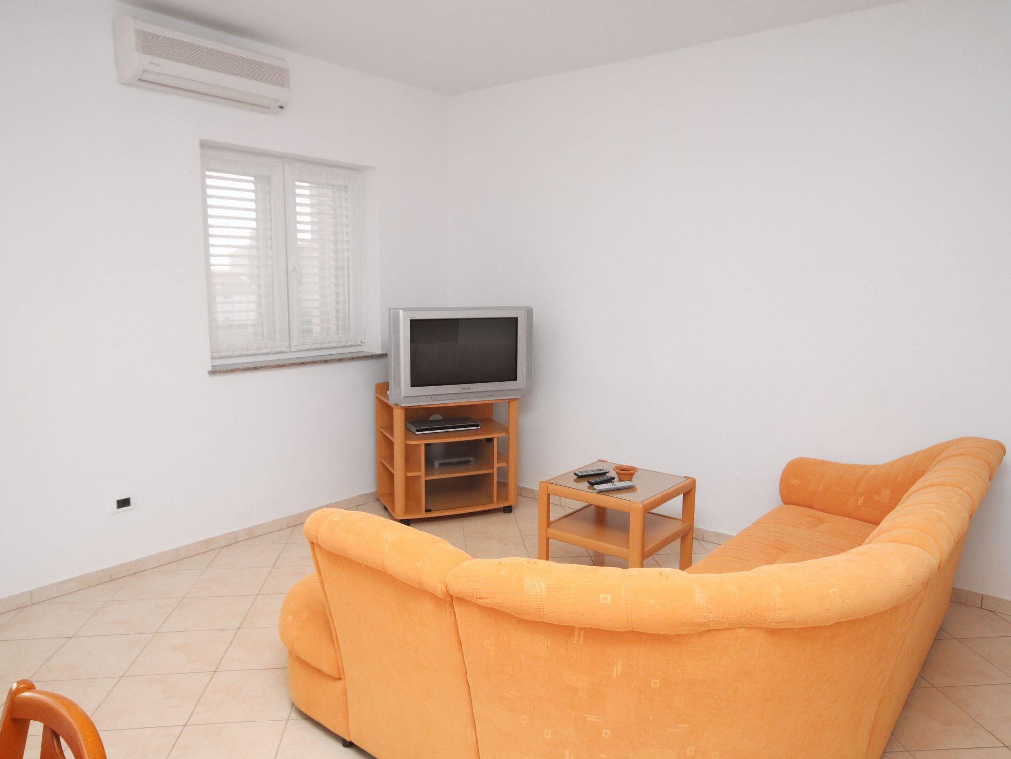 Ferienwohnung bietet Platz für 5 Gäste. Die Betten sind in Schlafzimmern, die es 2 gibt, und in Wohnzimmer, innerhalb einer Gesamtfläche von 45m2, angeordnet. Die Gäste haben eine eigene Terrasse zur Verfügung, auf der sie in warmen Sommernächten genießen können. Das Apartment bietet Meerblick. Es ist erlaubt, Speisen auf dem Gemeinschafts-Grill vorzubereiten. IM PREIS INBEGRIFFEN: Kurtaxe, Endreinigung, Parkplatz, Internet, Kinderbett, Bügeleisen, Bügelbrett, Föhn. VERBINDLICHE ZUSÄTZLICHE KOSTEN: Aufzahlung für Kurzaufenthalte (prozentualer Zuschlag pro Nächtigungsanzahl: 30% - 1, 20% - 2, 10% - 3). UNVERBINDLICHE ZUSÄTZLICHE KOSTEN: Klimatisierung (5,00 € pro Nacht), Wäschewaschen (5,00 € Waschen), Boot (150,00 € pro Nacht). Die Verfügbarkeit zusätzlicher Dienstleistungen in Ihrem reservierten Termin und die Preise derselben (falls nicht aufgeführt) müssen im Voraus überprüft werden. Zusätzliche Dienstleistungen die in der Zahlungsaufforderung nicht aufgeführt sind werden direkt beim Vermieter bezahlt, angenommen der Gast nutzt auch diese.