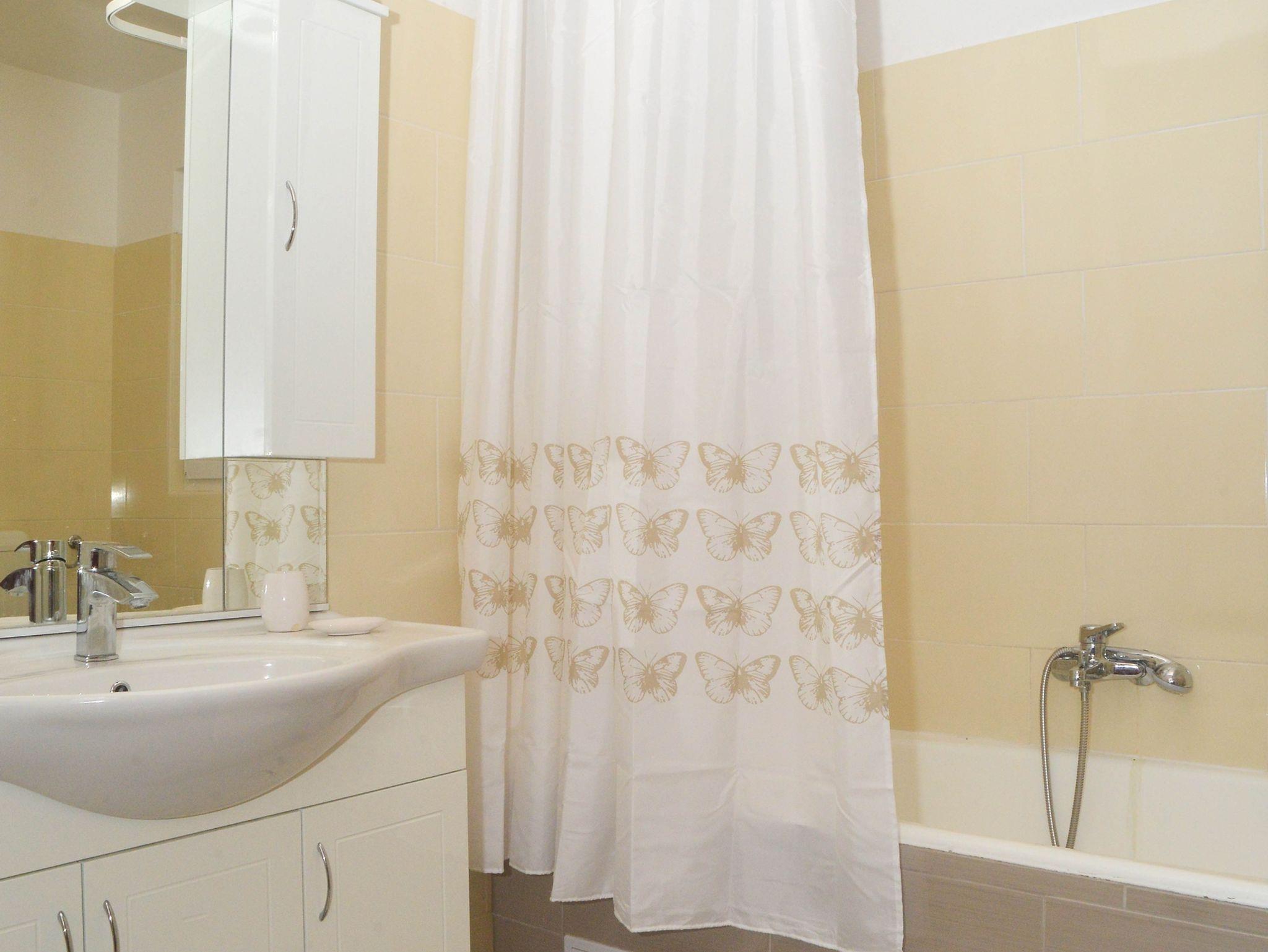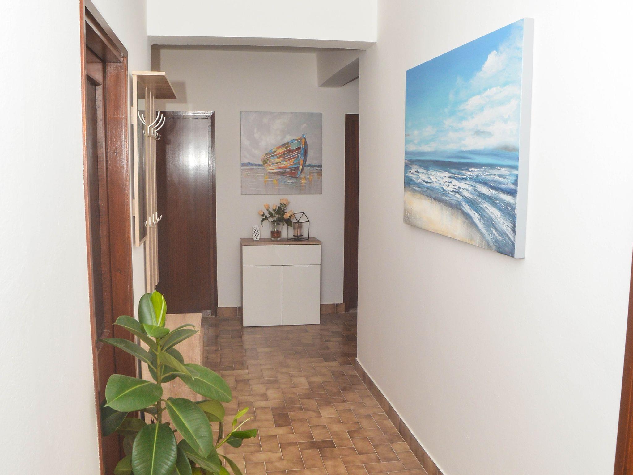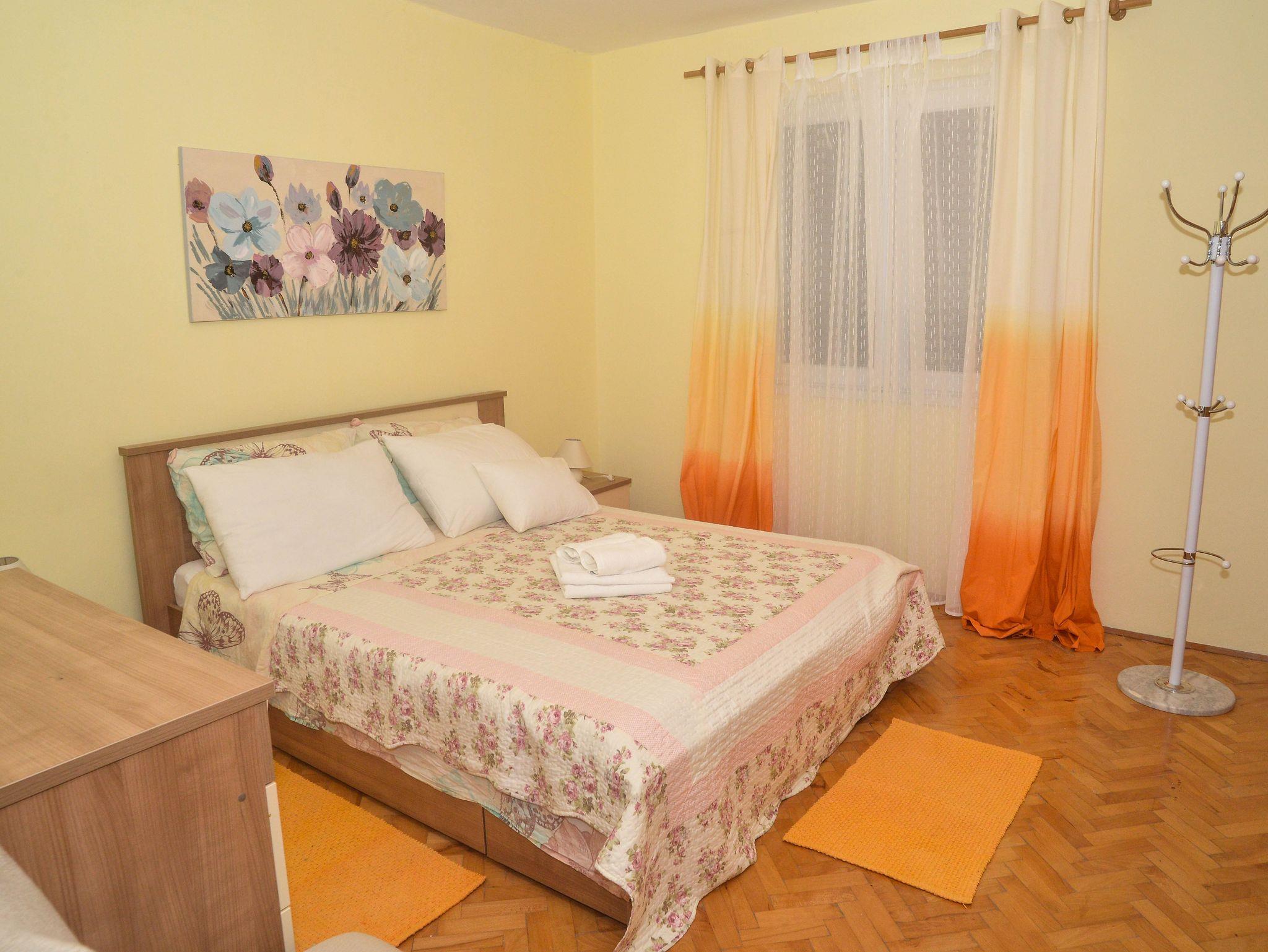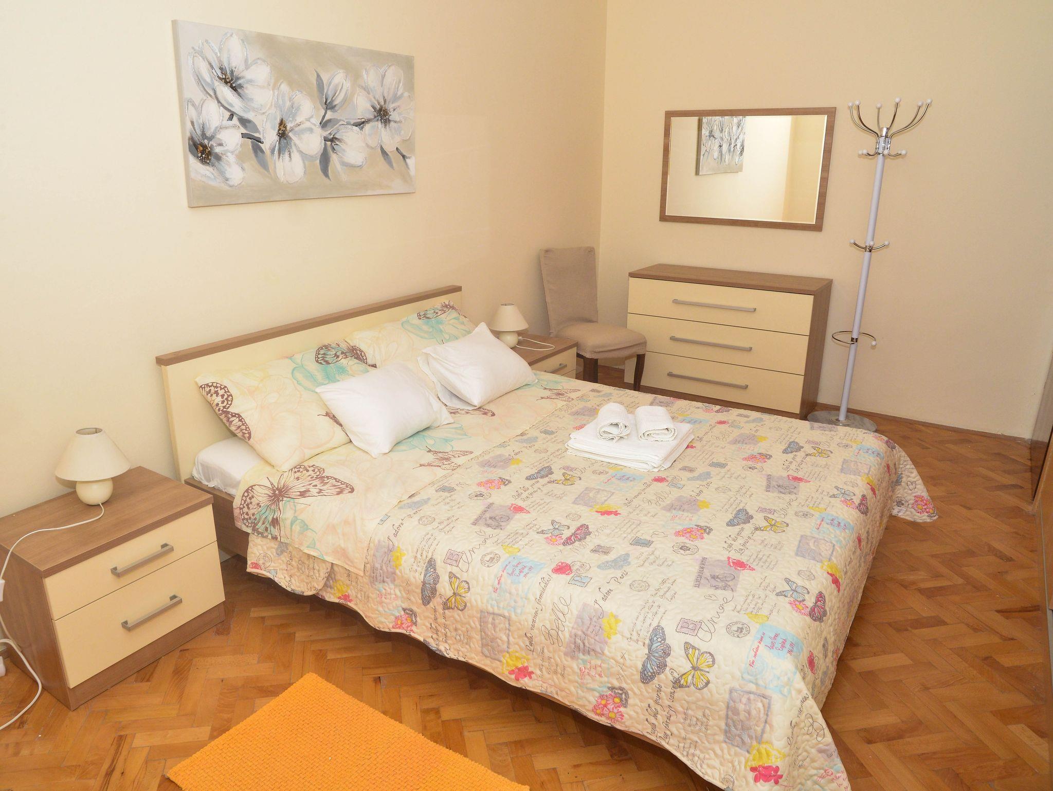 Ferienwohnung bietet Platz für 8 Gäste. Die Betten sind in Schlafzimmern, die es 3 gibt, und in Wohnzimmer, innerhalb einer Gesamtfläche von 102m2, angeordnet. Die Gäste haben eine eigene Terrasse zur Verfügung, auf der sie in warmen Sommernächten genießen können. Für vollen Genuss und Entspannung gibt es einen privaten Grill für Gäste dieser Unterkunft. Während ihres Aufenthalts können Gäste das gemeinsam zur Nutzung stehende Schwimmbad benutzen. IM PREIS INBEGRIFFEN: Kurtaxe, Endreinigung, Klimatisierung, Pool, Parkplatz, Internet, Kinderbett, Bügeleisen, Bügelbrett, Föhn, Sonnenschirm. VERBINDLICHE ZUSÄTZLICHE KOSTEN: Aufzahlung für Kurzaufenthalte (prozentualer Zuschlag pro Nächtigungsanzahl: 30% - 1, 20% - 2, 10% - 3). Die Verfügbarkeit zusätzlicher Dienstleistungen in Ihrem reservierten Termin und die Preise derselben (falls nicht aufgeführt) müssen im Voraus überprüft werden. Zusätzliche Dienstleistungen die in der Zahlungsaufforderung nicht aufgeführt sind werden direkt beim Vermieter bezahlt, angenommen der Gast nutzt auch diese. Ermäßigung auf den Grundpreis: Gratistag 14=13 (bei einem Aufenthalt von 14 Tagen oder mehr erhalten Sie einen Gratistag für den Aufenthalt bis 31.12.26).