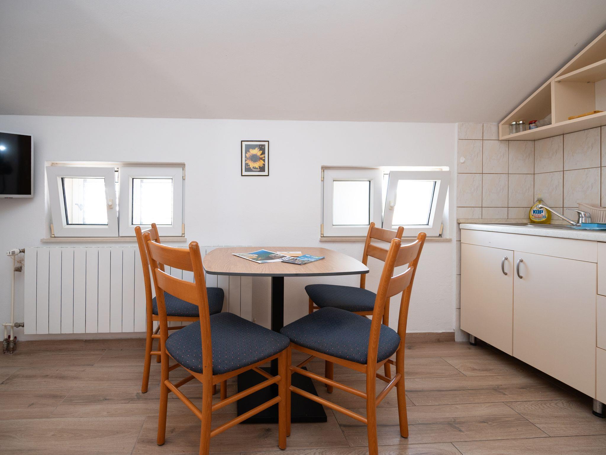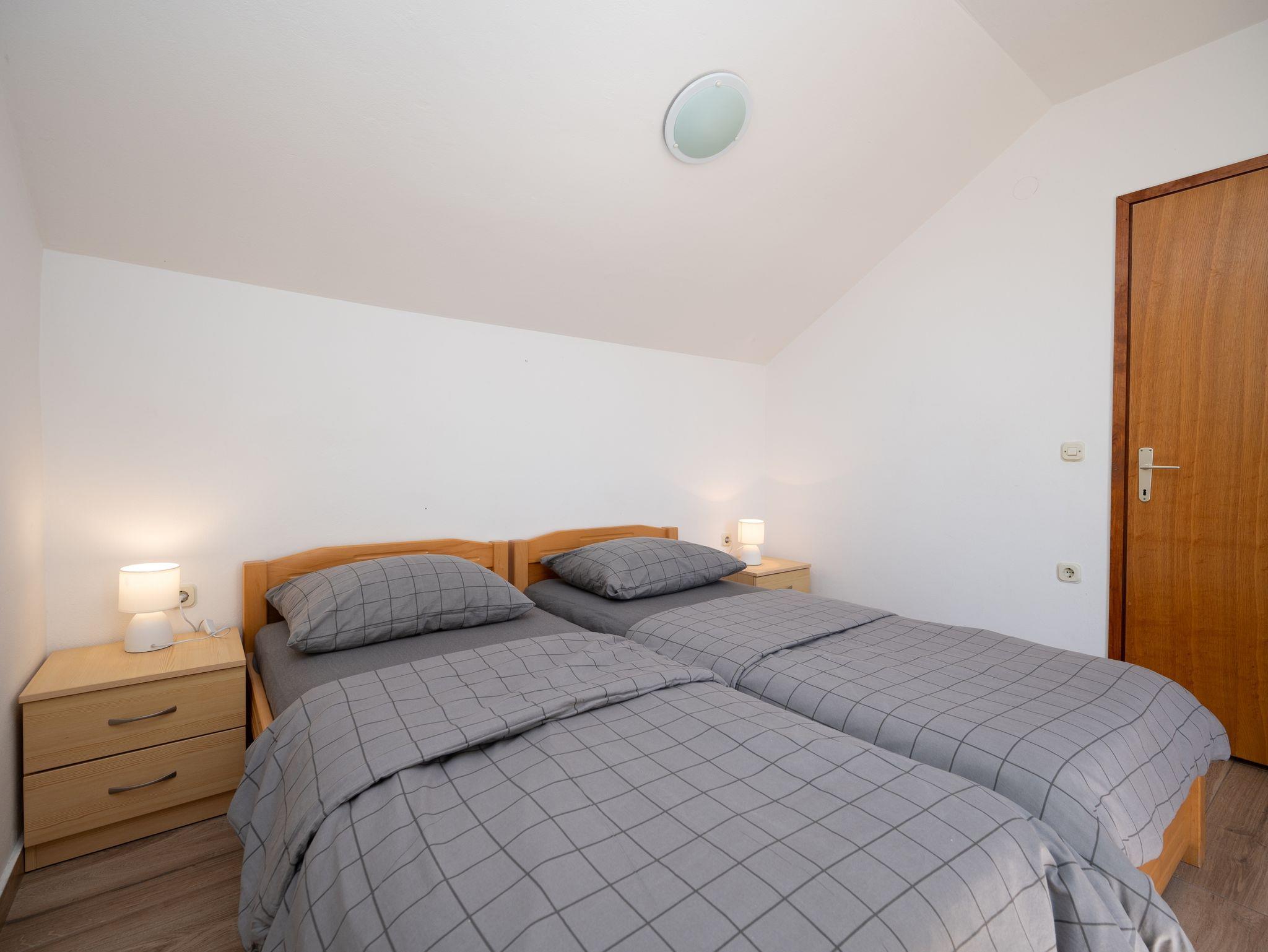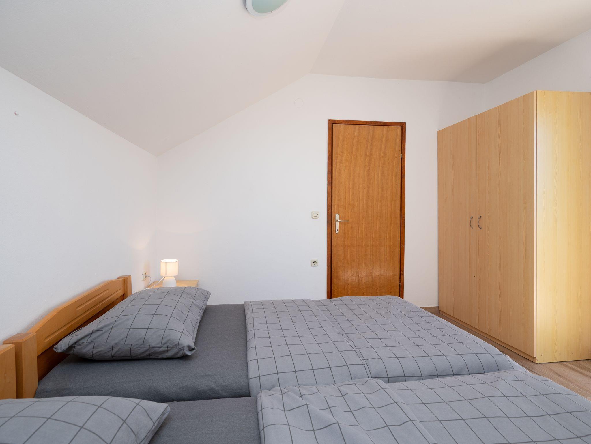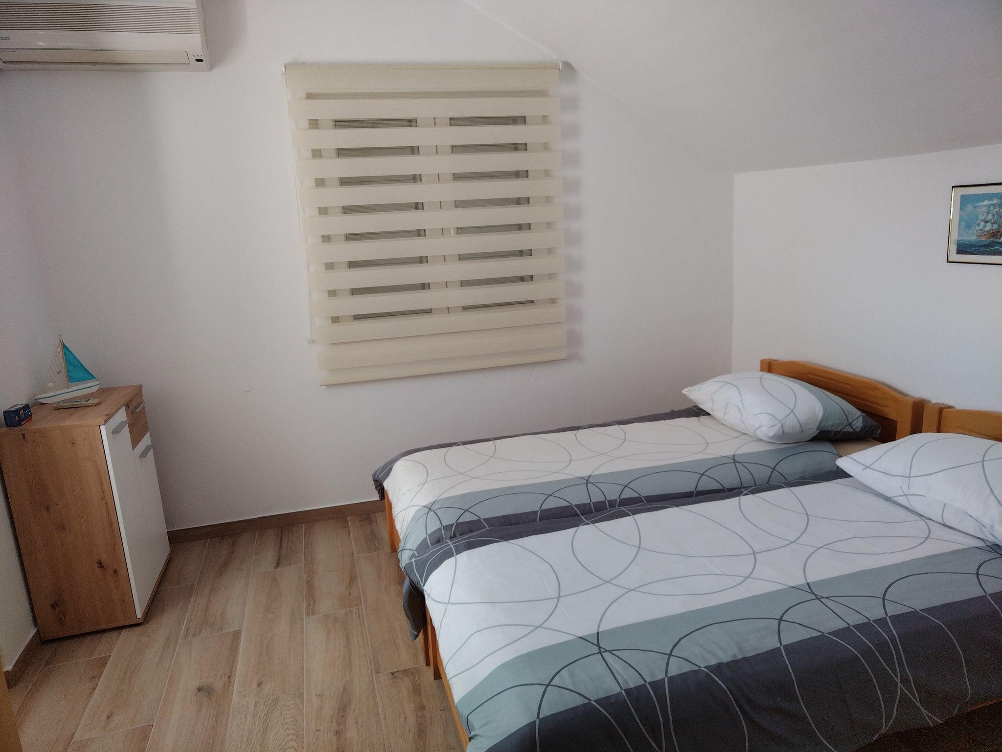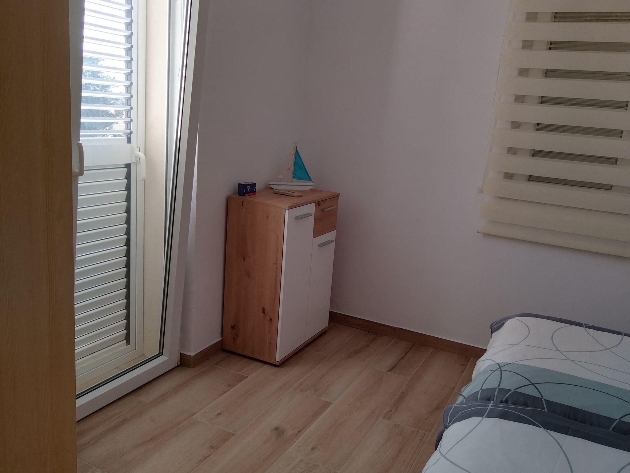 Ferienwohnung bietet Platz für 4 Gäste. Die Betten sind in Schlafzimmern, die es 1 gibt, und in Wohnzimmer, innerhalb einer Gesamtfläche von 28m2, angeordnet. Die Gäste haben eine eigene Terrasse zur Verfügung, auf der sie in warmen Sommernächten genießen können. Das Apartment bietet Meerblick. Es ist erlaubt, Speisen auf dem Gemeinschafts-Grill vorzubereiten. In der Unterkunftseinheit besteht die Möglichkeit des Mitbringens von Haustieren gegen Aufpreis. IM PREIS INBEGRIFFEN: Kurtaxe, Endreinigung, Klimatisierung, Zentralheizung, Parkplatz, Internet, Zusatzbett, Bügeleisen, Bügelbrett, Föhn. VERBINDLICHE ZUSÄTZLICHE KOSTEN: Aufzahlung für Kurzaufenthalte (prozentualer Zuschlag pro Nächtigungsanzahl: 30% - 1, 20% - 2, 10% - 3). UNVERBINDLICHE ZUSÄTZLICHE KOSTEN: Frühstück (12,00 €, 50% Nachlass für Kinder zwischen 4 und 12 Jahren, Kinder bis 4 Jahre sind frei.), Halbpension (25,00 €, 50% Nachlass für Kinder zwischen 4 und 12 Jahren, Kinder bis 4 Jahre sind frei.), Vollpension (40,00 €, 50% Nachlass für Kinder zwischen 4 und 12 Jahren, Kinder bis 4 Jahre sind frei.), Haustiere (5,00 € pro Nacht). Die Verfügbarkeit zusätzlicher Dienstleistungen in Ihrem reservierten Termin und die Preise derselben (falls nicht aufgeführt) müssen im Voraus überprüft werden. Zusätzliche Dienstleistungen die in der Zahlungsaufforderung nicht aufgeführt sind werden direkt beim Vermieter bezahlt, angenommen der Gast nutzt auch diese.