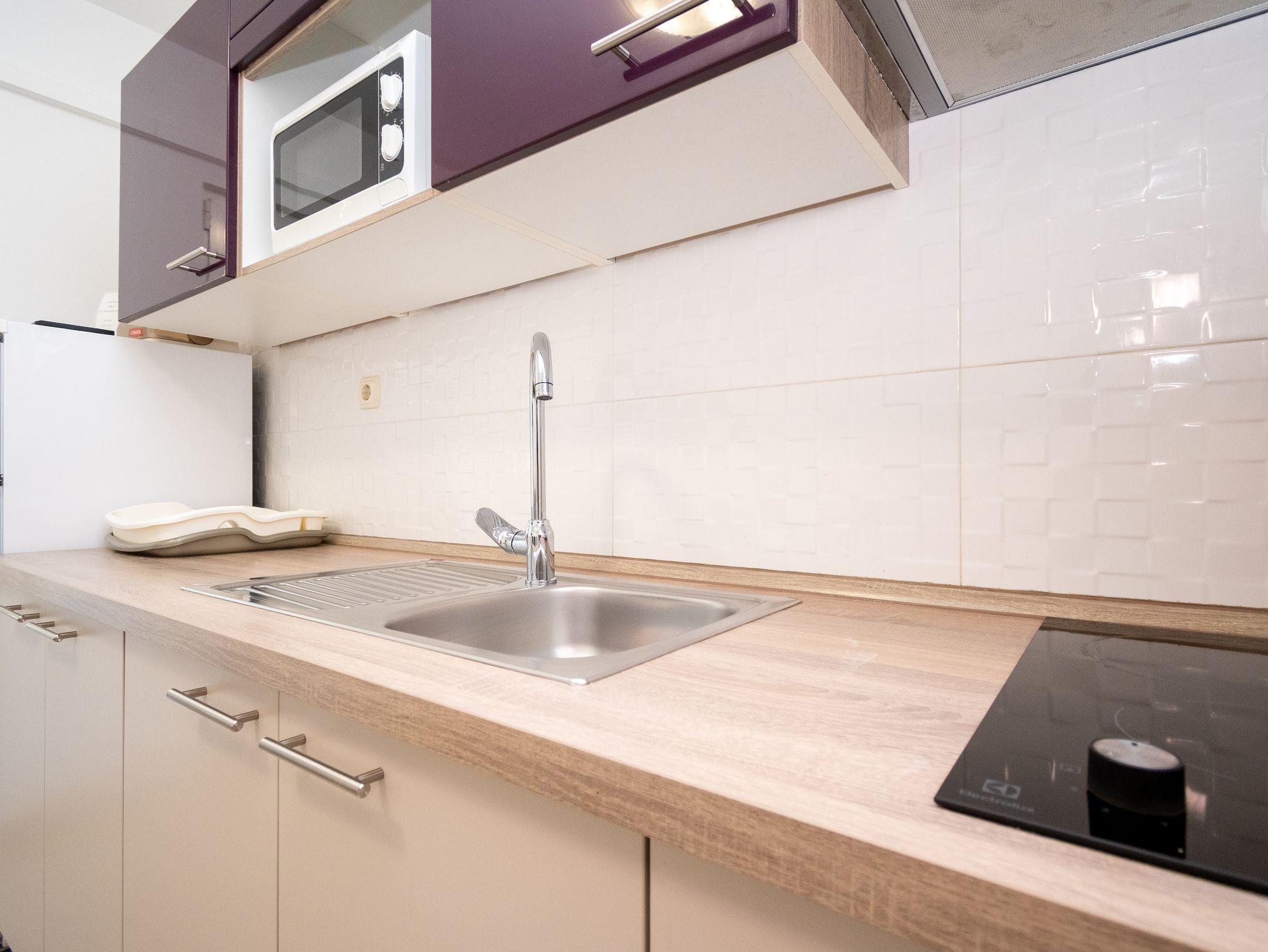 Ferienwohnung bietet Platz für 3 Gäste. Die Betten sind in Schlafzimmern, die es 1 gibt, innerhalb einer Gesamtfläche von 31m2, angeordnet. Die Gäste haben eine eigene Terrasse zur Verfügung, auf der sie in warmen Sommernächten genießen können. Es ist erlaubt, Speisen auf dem Gemeinschafts-Grill vorzubereiten. IM PREIS INBEGRIFFEN: Kurtaxe, Endreinigung, Klimatisierung, Parkplatz, Internet, Kinderbett, Bügeleisen, Bügelbrett, Föhn, tragbarer Grill. VERBINDLICHE ZUSÄTZLICHE KOSTEN: Aufzahlung für Kurzaufenthalte (prozentualer Zuschlag pro Nächtigungsanzahl: 30% - 1, 20% - 2, 10% - 3). Die Verfügbarkeit zusätzlicher Dienstleistungen in Ihrem reservierten Termin und die Preise derselben (falls nicht aufgeführt) müssen im Voraus überprüft werden. Zusätzliche Dienstleistungen die in der Zahlungsaufforderung nicht aufgeführt sind werden direkt beim Vermieter bezahlt, angenommen der Gast nutzt auch diese.