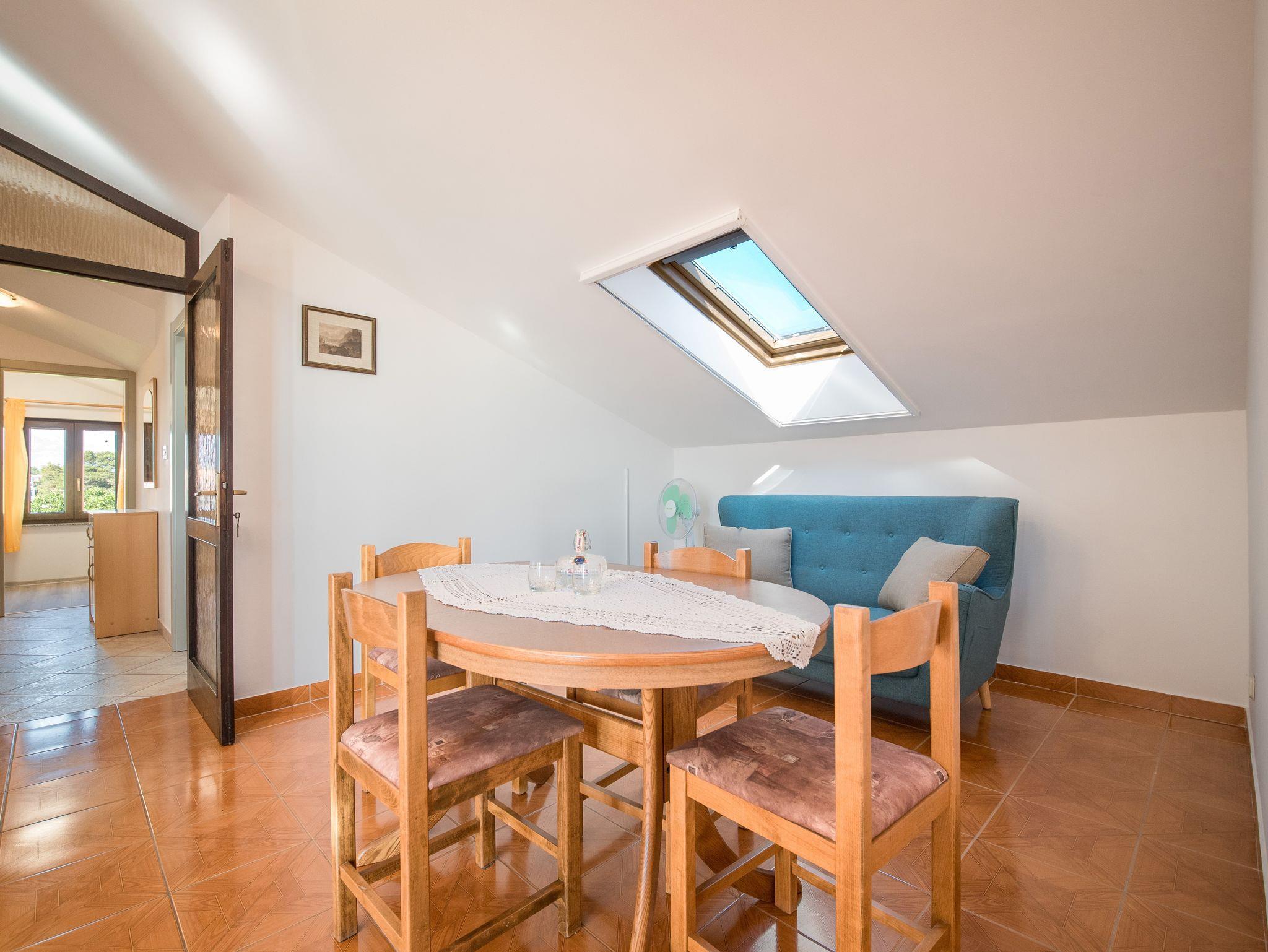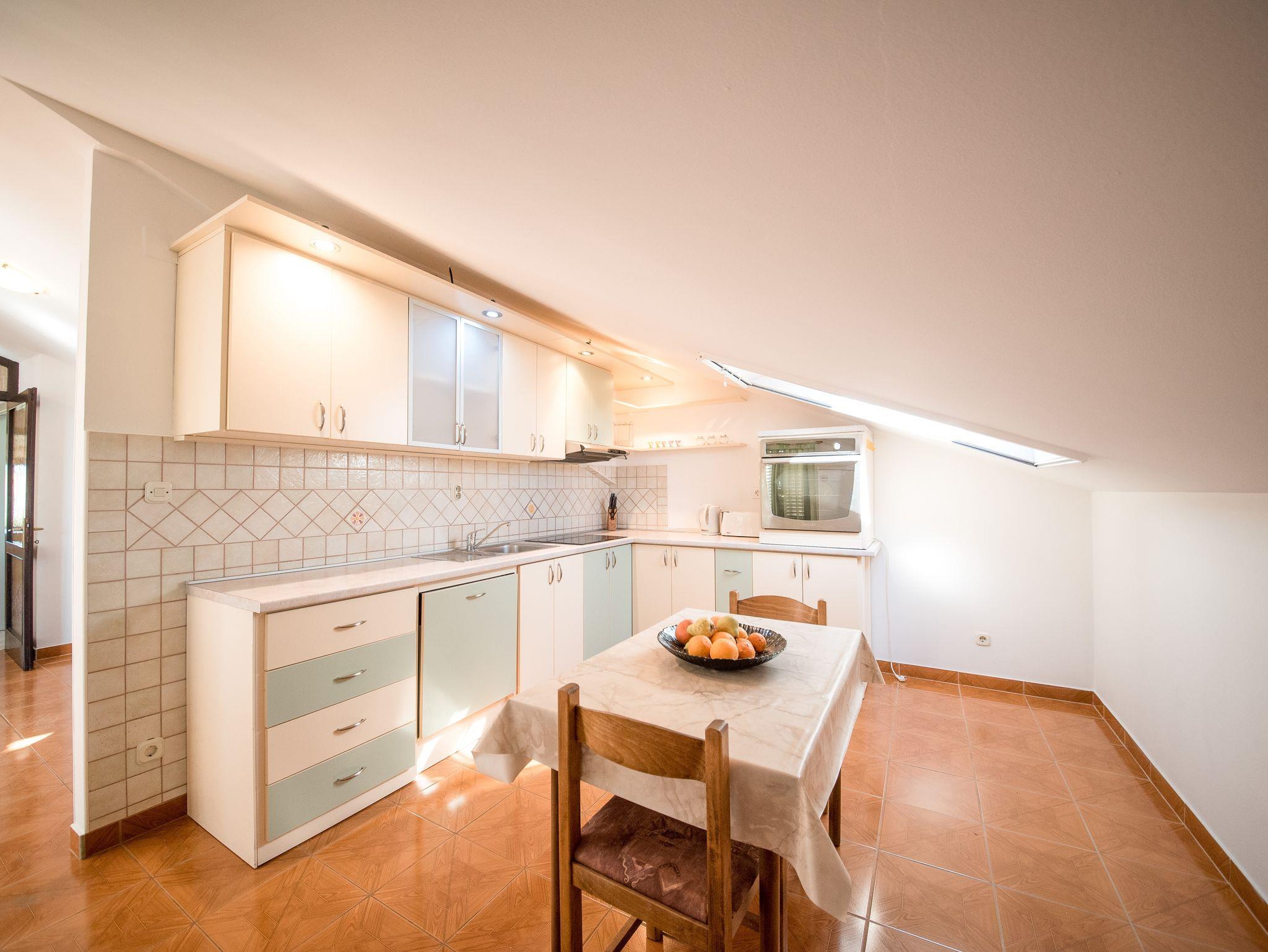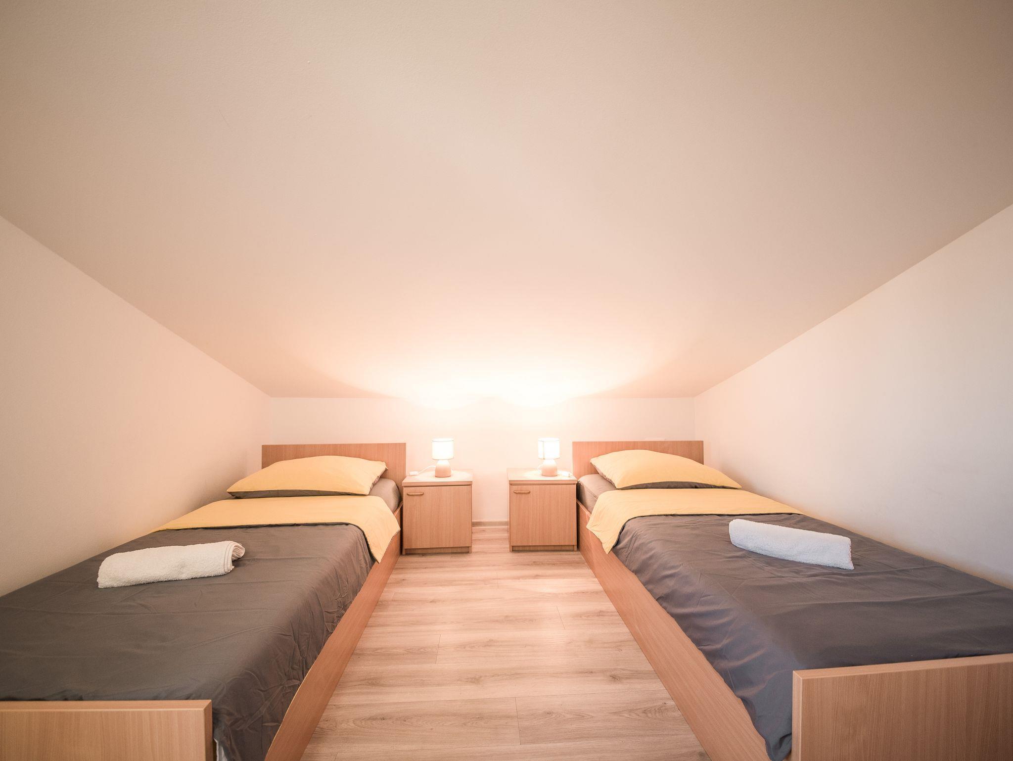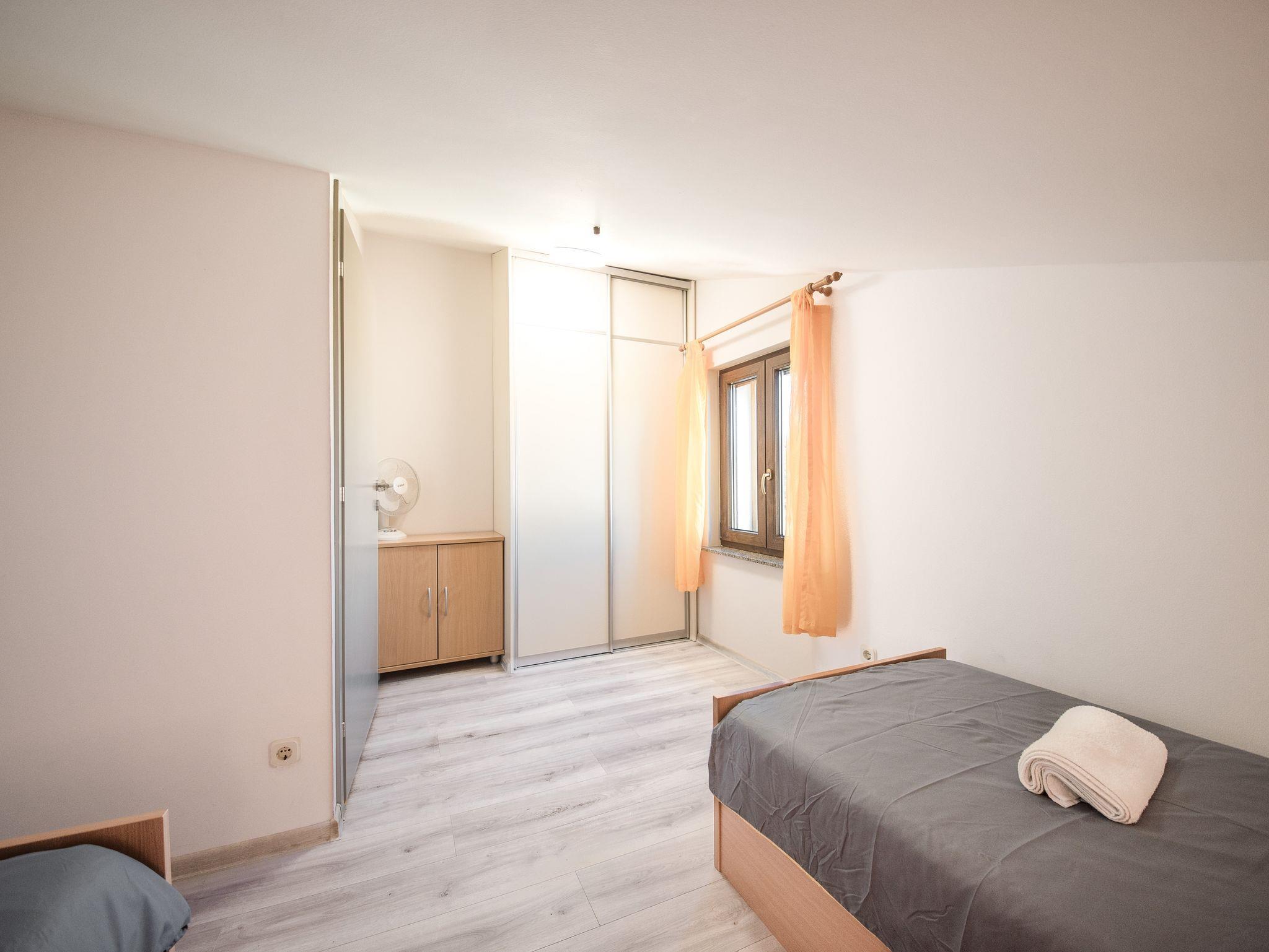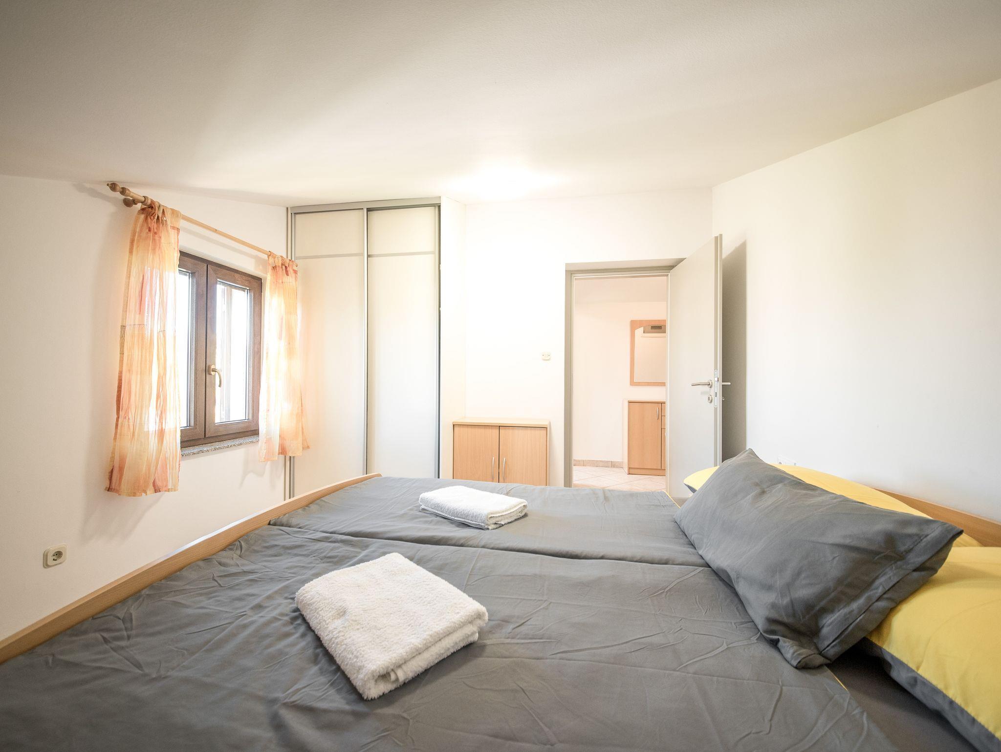 Ferienwohnung bietet Platz für 5 Gäste. Die Betten sind in Schlafzimmern, die es 2 gibt, und in Wohnzimmer, innerhalb einer Gesamtfläche von 83m2, angeordnet. Die Gäste haben eine eigene Terrasse zur Verfügung, auf der sie in warmen Sommernächten genießen können. Das Apartment bietet Meerblick. Es ist erlaubt, Speisen auf dem Gemeinschafts-Grill vorzubereiten. IM PREIS INBEGRIFFEN: Kurtaxe, Endreinigung, Klimatisierung, Parkplatz, Internet, Kinderbett, Bügeleisen, Bügelbrett, Föhn. VERBINDLICHE ZUSÄTZLICHE KOSTEN: Aufzahlung für Kurzaufenthalte (prozentualer Zuschlag pro Nächtigungsanzahl: 30% - 1, 20% - 2, 10% - 3). UNVERBINDLICHE ZUSÄTZLICHE KOSTEN: Wäschewaschen (5,00 € Waschen), Bootsanlegeplatz (10,00 € pro Nacht). Die Verfügbarkeit zusätzlicher Dienstleistungen in Ihrem reservierten Termin und die Preise derselben (falls nicht aufgeführt) müssen im Voraus überprüft werden. Zusätzliche Dienstleistungen die in der Zahlungsaufforderung nicht aufgeführt sind werden direkt beim Vermieter bezahlt, angenommen der Gast nutzt auch diese. Ermäßigung auf den Grundpreis: Gratistag 14=13 (bei einem Aufenthalt von 14 Tagen oder mehr erhalten Sie einen Gratistag für den Aufenthalt bis 31.12.26).