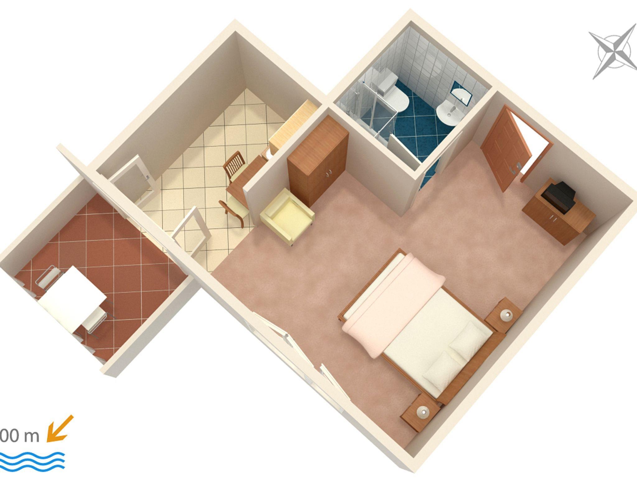 Studio bietet Platz für 2 Gäste. Die Betten sind in Schlafzimmern, die es 1 gibt, innerhalb einer Gesamtfläche von 25m2, angeordnet. Die Gäste haben einen eigenen Balkon zur Verfügung, auf der sie in warmen Sommernächten genießen können. Das Studio-Apartment bietet Meerblick. Es ist erlaubt, Speisen auf dem Gemeinschafts-Grill vorzubereiten. IM PREIS INBEGRIFFEN: Kurtaxe, Endreinigung, Klimatisierung, Parkplatz, Internet, tragbarer Grill, 1 Bett für Kinder (im Preis enthalten). VERBINDLICHE ZUSÄTZLICHE KOSTEN: Aufzahlung für Kurzaufenthalte (prozentualer Zuschlag pro Nächtigungsanzahl: 30% - 1, 20% - 2, 10% - 3). Die Verfügbarkeit zusätzlicher Dienstleistungen in Ihrem reservierten Termin und die Preise derselben (falls nicht aufgeführt) müssen im Voraus überprüft werden. Zusätzliche Dienstleistungen die in der Zahlungsaufforderung nicht aufgeführt sind werden direkt beim Vermieter bezahlt, angenommen der Gast nutzt auch diese.