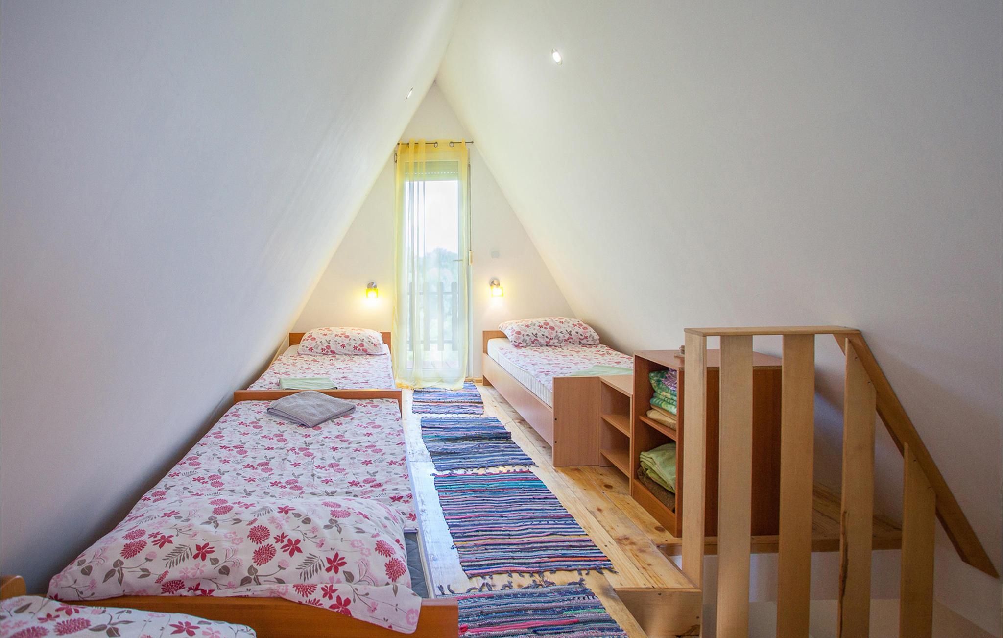 Dette enkelt indrettede lille feriehus har en fantastisk udsigt til en af Donauens sidefloder. Omgivelserne er grønne, naturlige og ikke mindst rolige. Stejle trapper forbinder stueetagen med første sal som liggerlige under taget. Væggene skråner således lige til gulvet. Huset har mange autentiske træk, og derfor er planløsningen også relativt trang. Foran huset er der terrasse have og badebassin. Og her finder I også legeredskabertil børn og en grill. Der hører tre cykler til huset som I med fordel kan benmytte til at udforske den nærmeste egn. Benyt f.eks. de tre cykelstier Dunav, Srijem og Eurovelo. Besøg også byen Vukovar eller kast snøren i Donau.