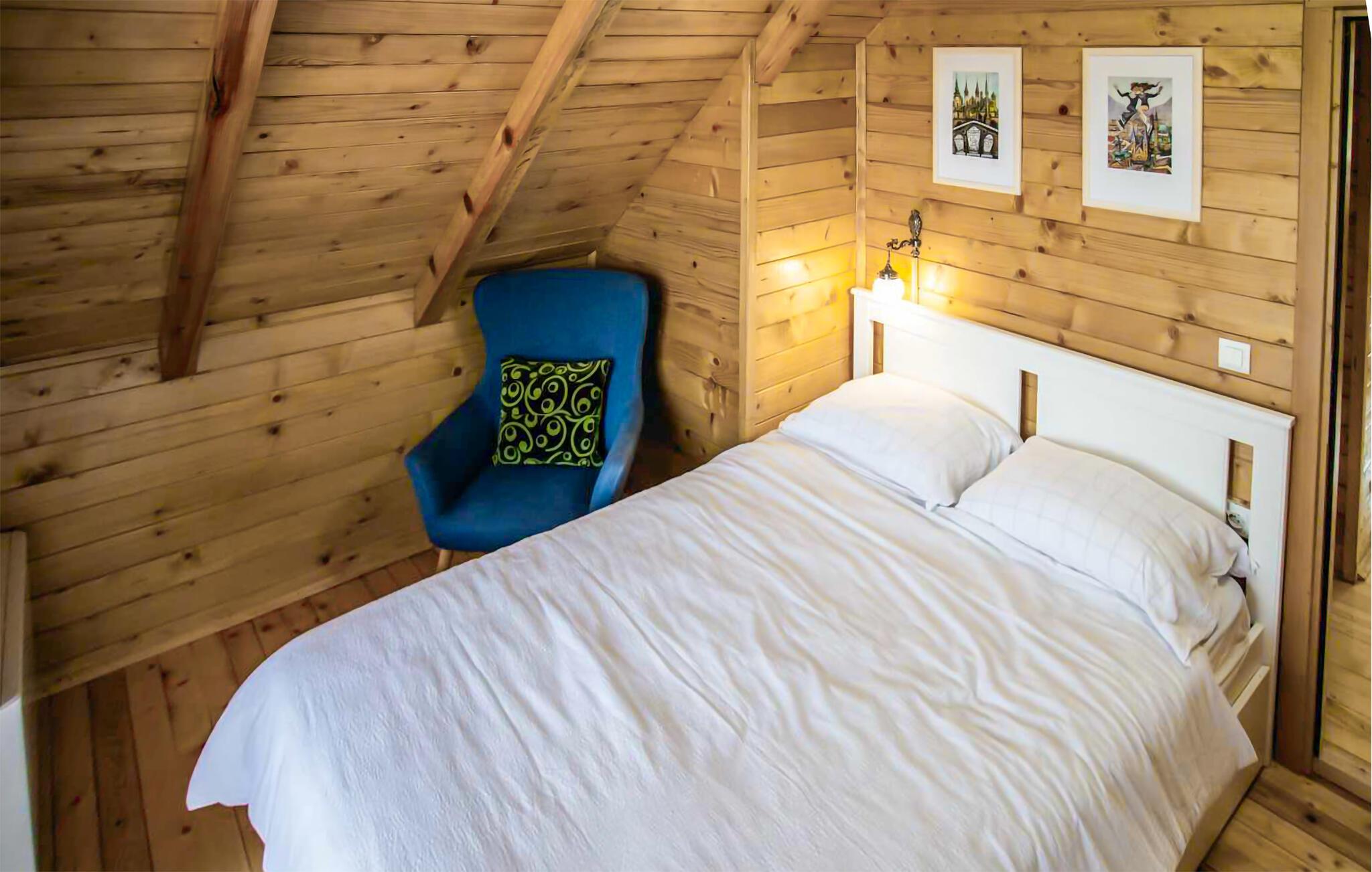 Jeres hyggelige træhus i Vukovar giver jer mulighed for både en aktiv og afslappende ferie. Start dagen med et forfriskende dyk i poolen eller slap af i boblebadet. Nyd den fredelige atmosfære og den smukke udsigt over Donau, som ligger tæt på huset. Gør det behageligt for jer i den varme og indbydende stue og tilbered en lækker middag i køkkenet.