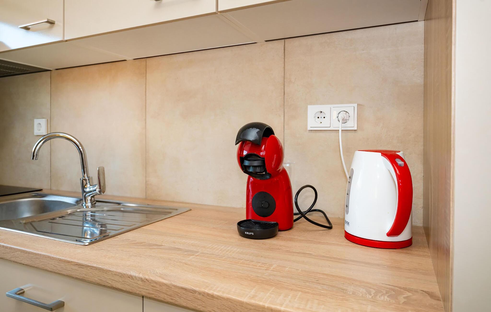 Gå ud på balkonen og Begynd dagene med en kop kaffe udendørs. Gør det behageligt ved altanbordet, og lad blikket vandre over hustagene på jeres feriedestination til det glitrende hav i horisonten. Det velholdte boligområde med stille gader skaber en behagelig atmosfære og lægger op til en hyggestund.