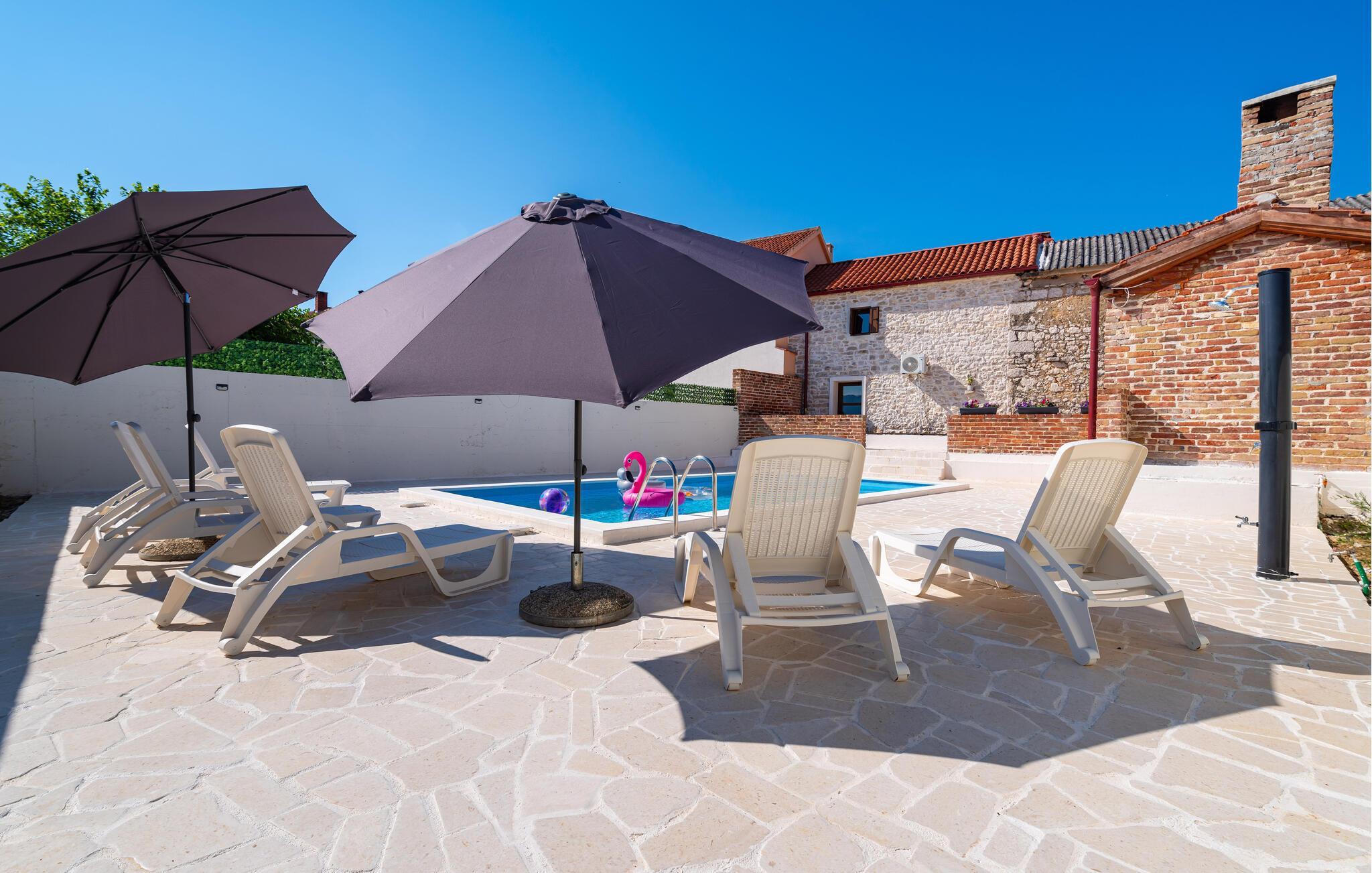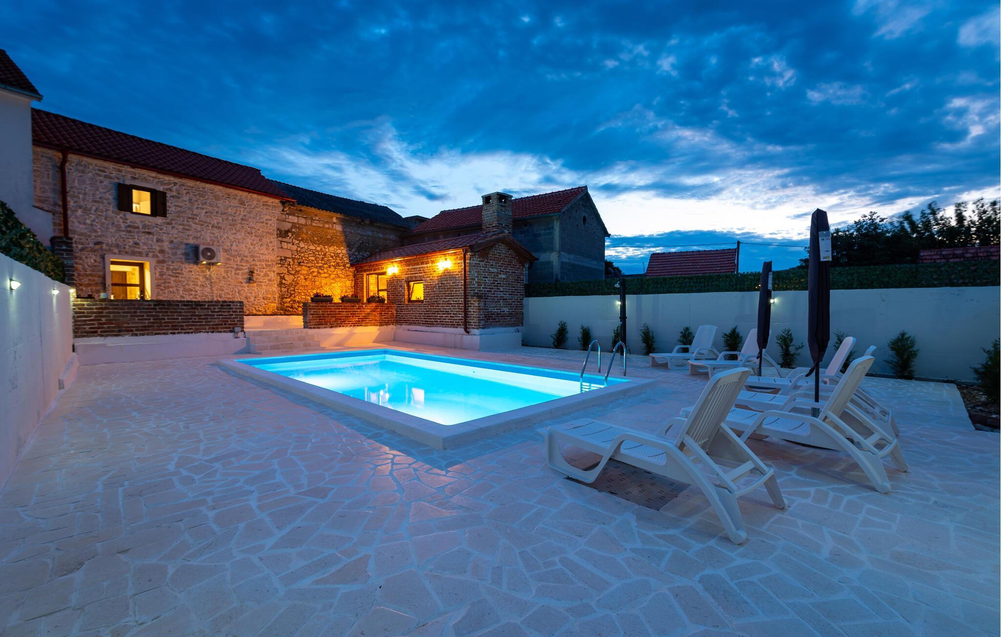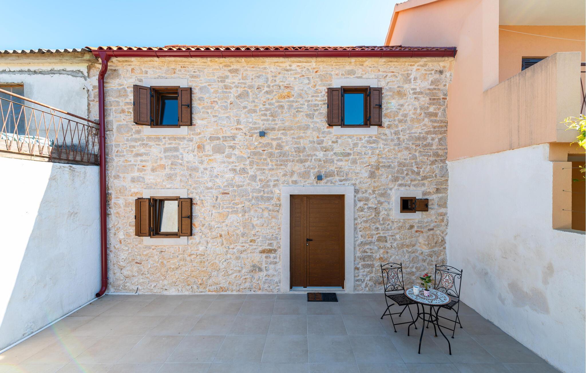 Velkommen til dette moderne stenhus med pool ved Novigradhavet.