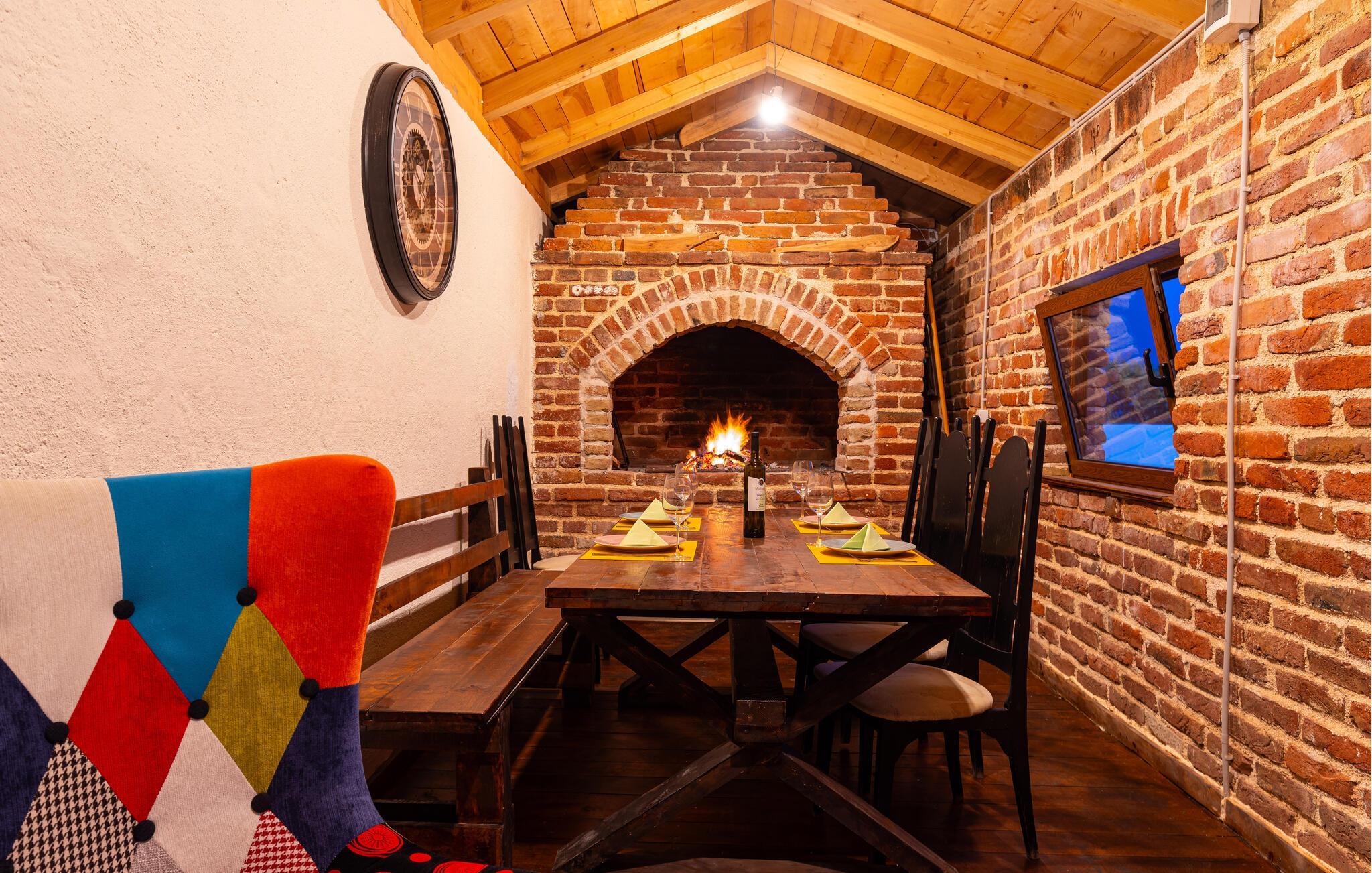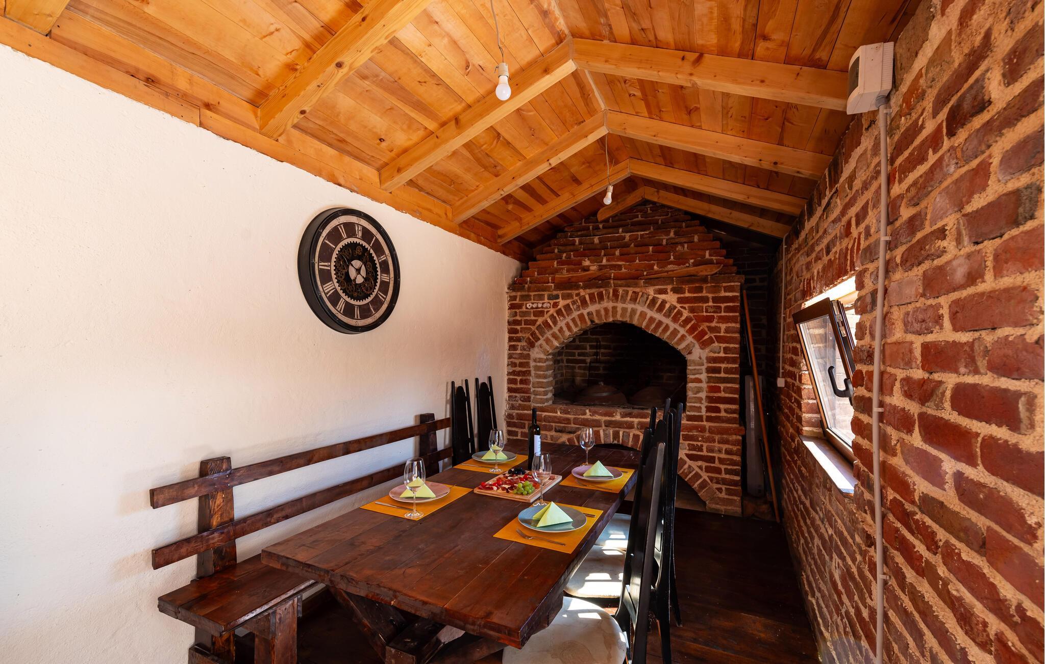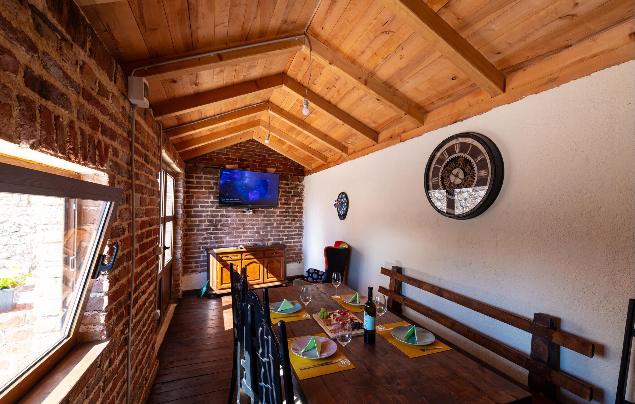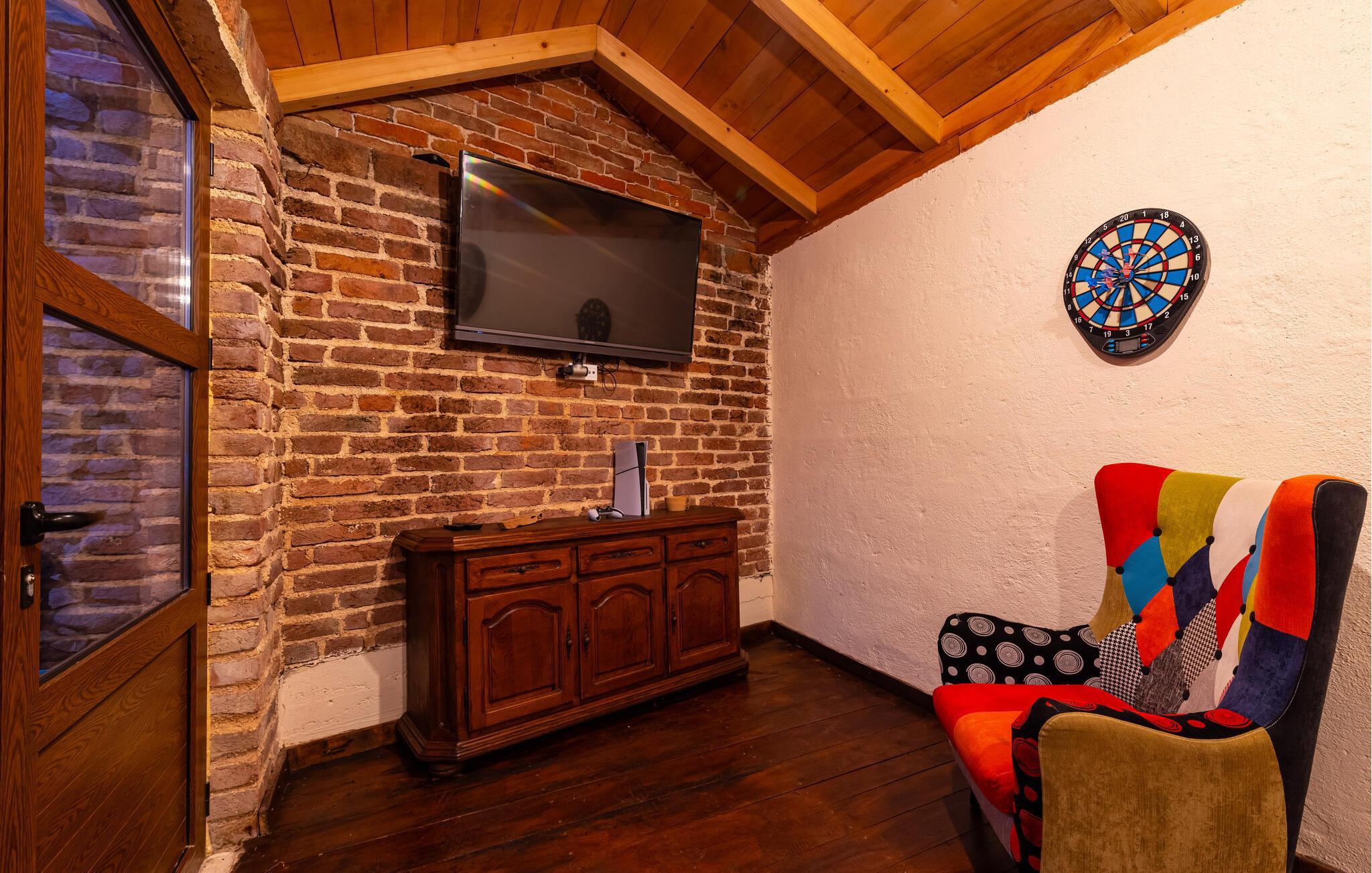 Fra øverste etage får i en spektakulær udsigt over bjergene, og fra stueetagen kan I gå ud i den murede have med privat pool. Her finder I også et lille, hyggeligt hus, hvor I kan spille kort og brætspil ved den åbne pejs.