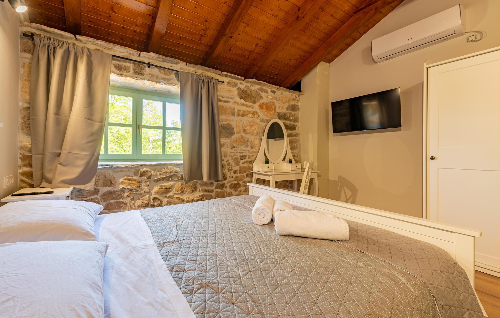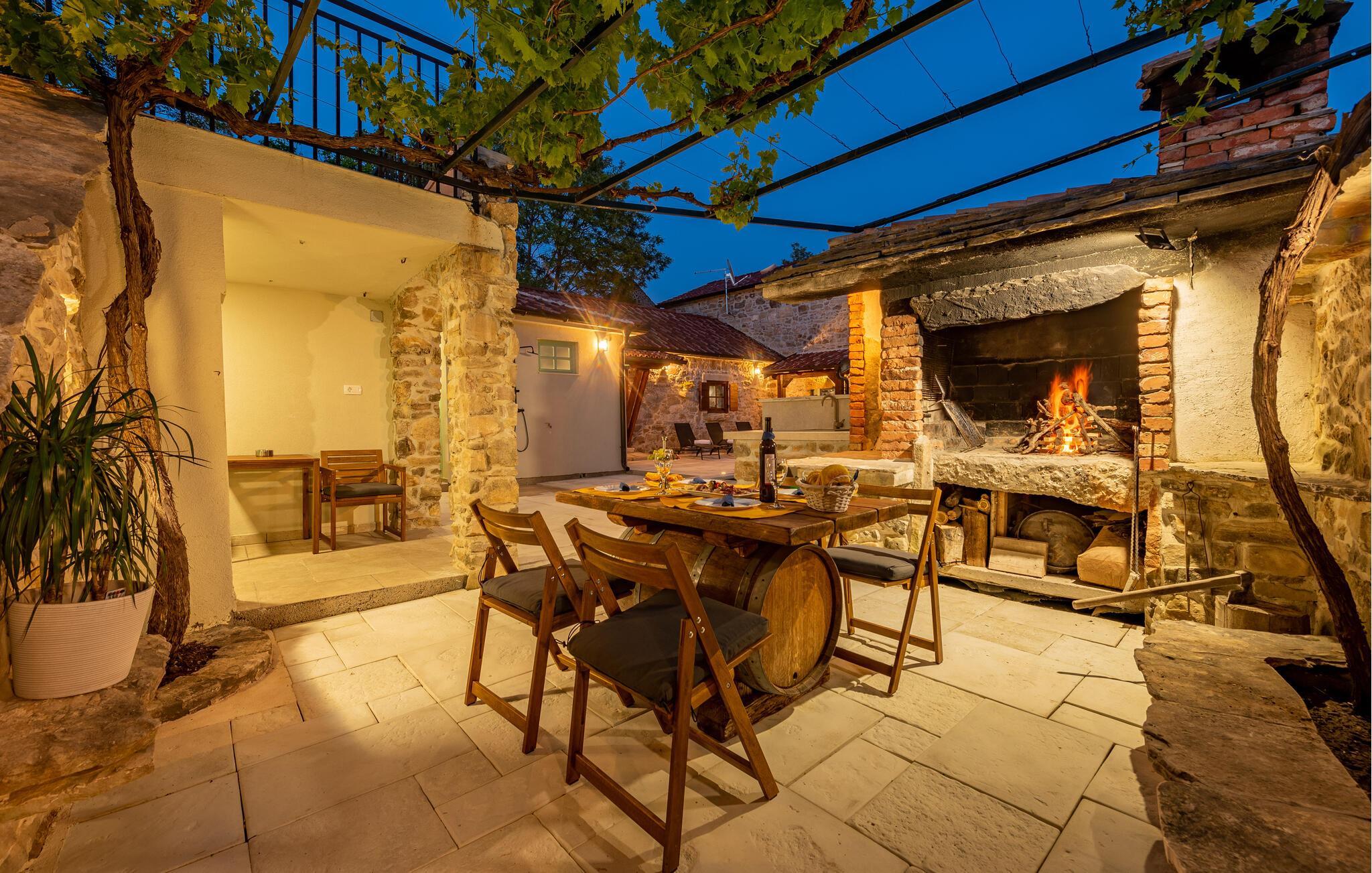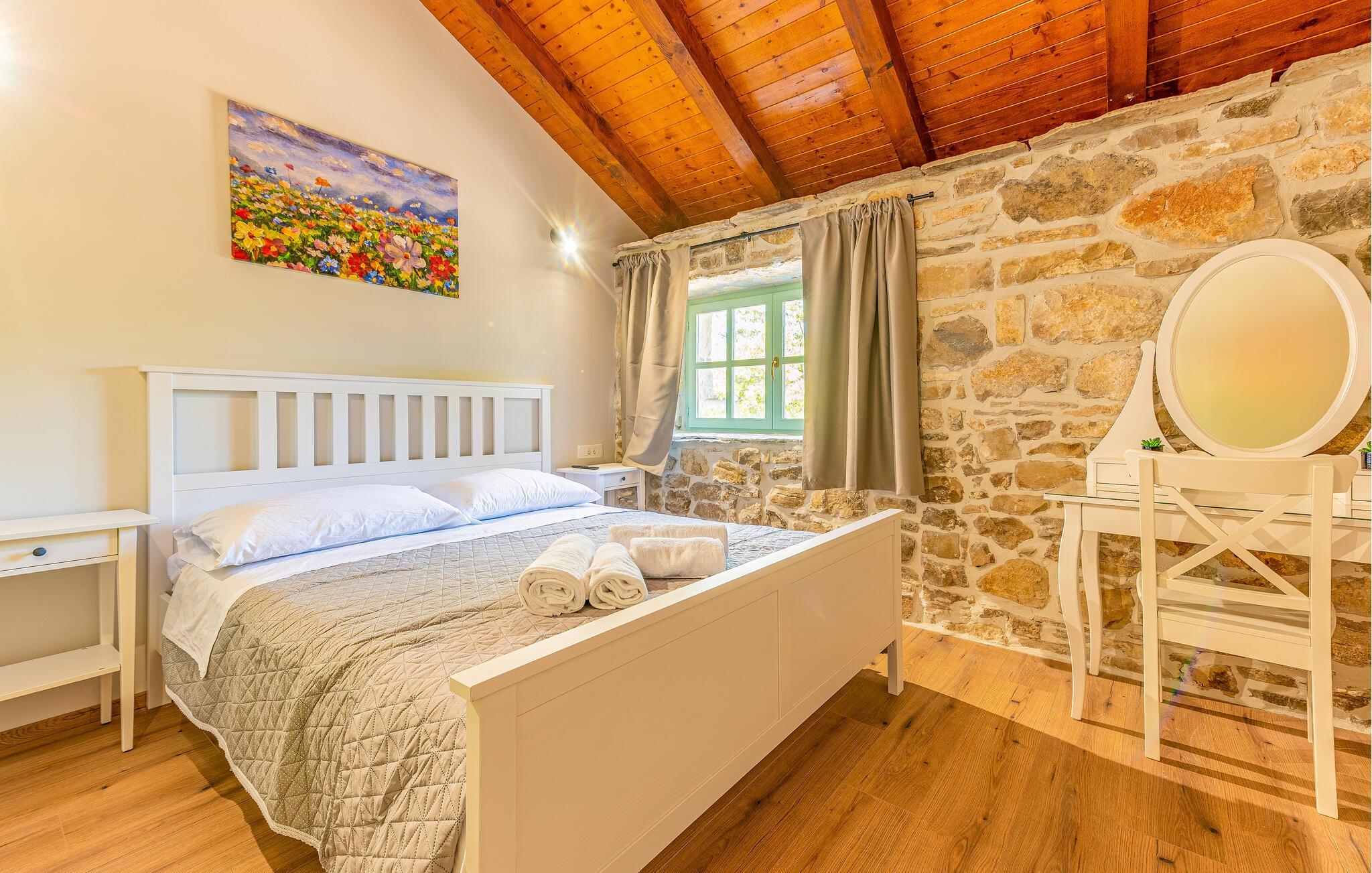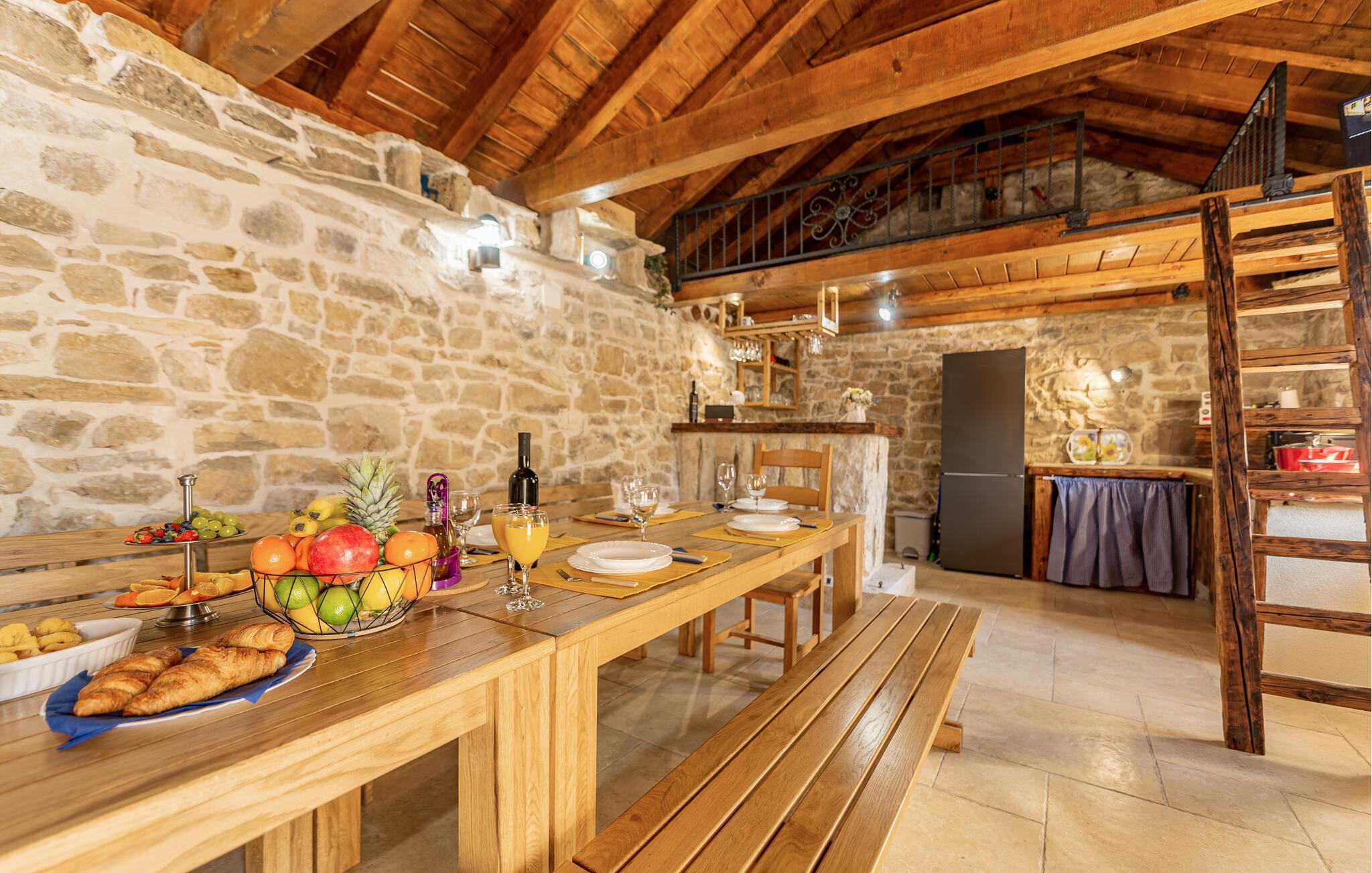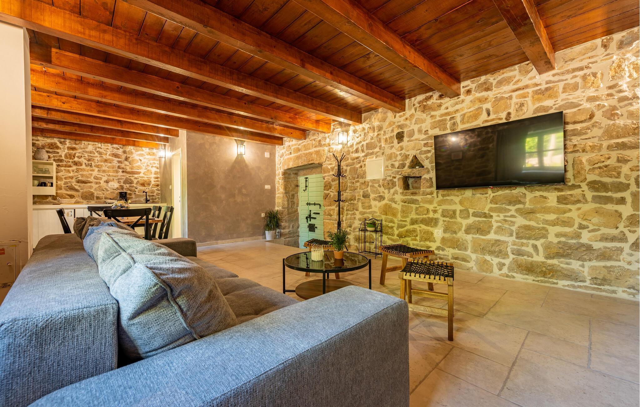 Indretningen er virkelig flot og kombinerer de rustikke stenvægge og trælofter med god, moderne komfort og et veludstyret køkken, der er med til at gøre jeres ferie helt og aldeles ubekymret fra det øjeblik, I stiller kufferterne.