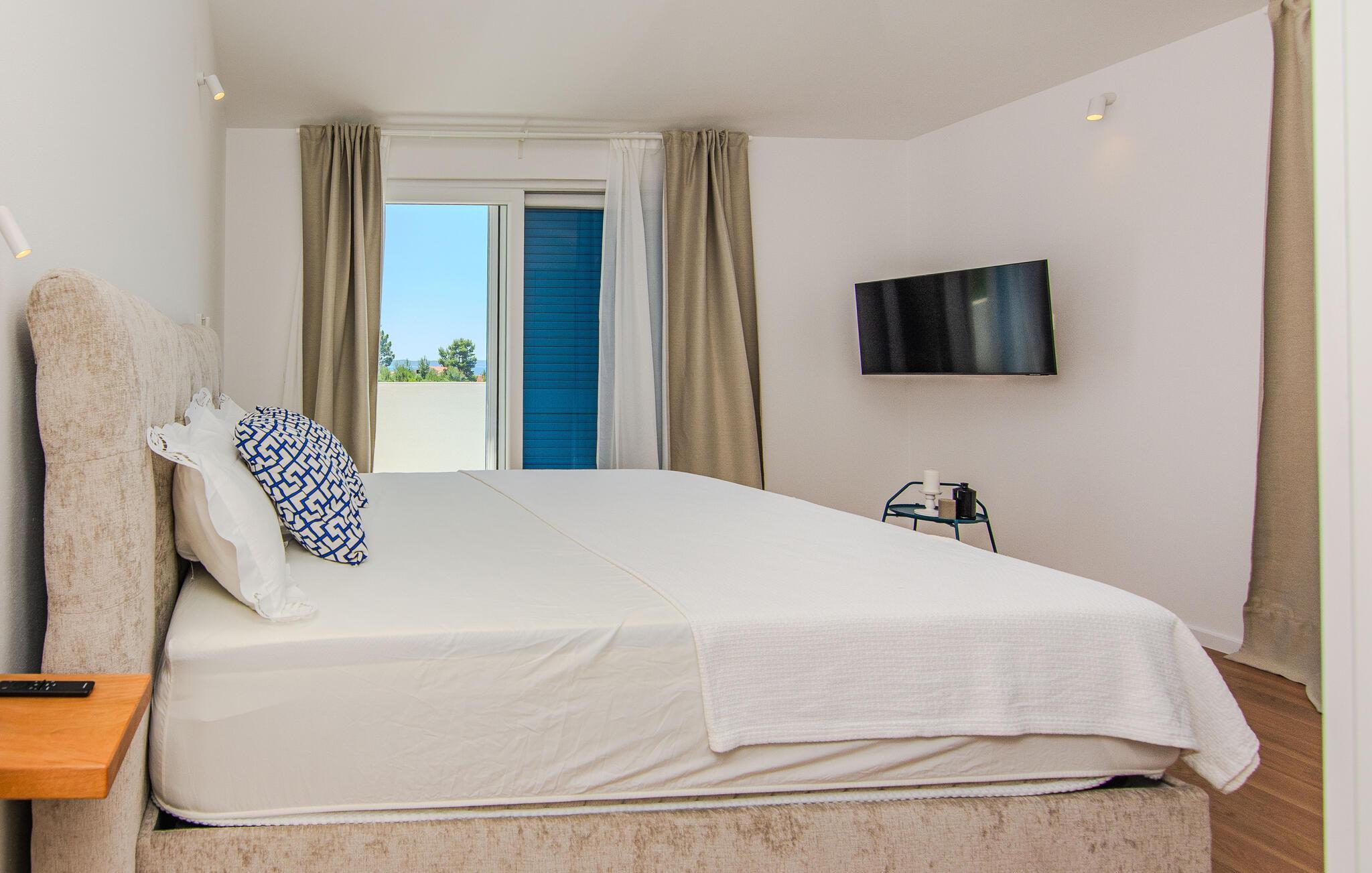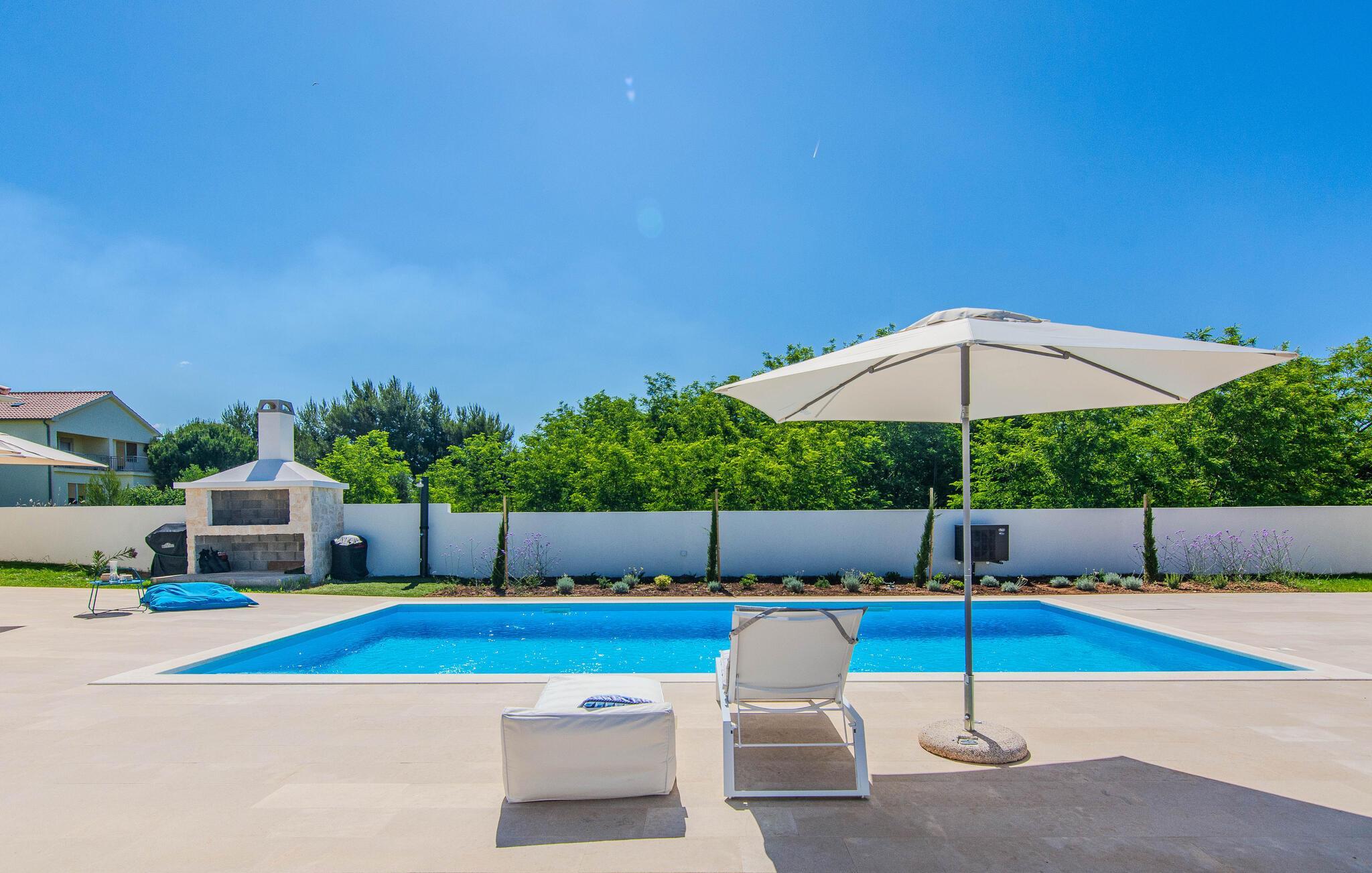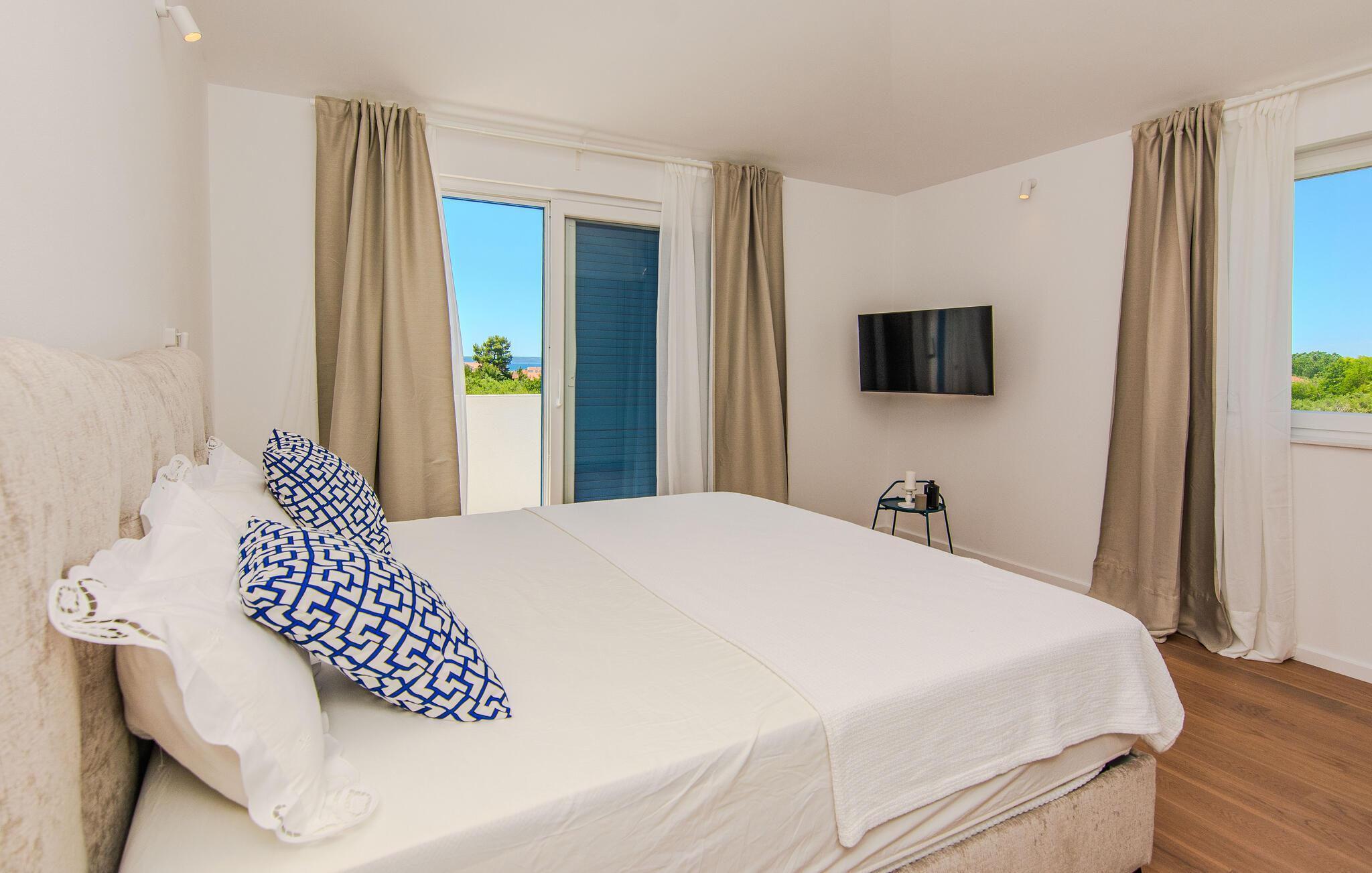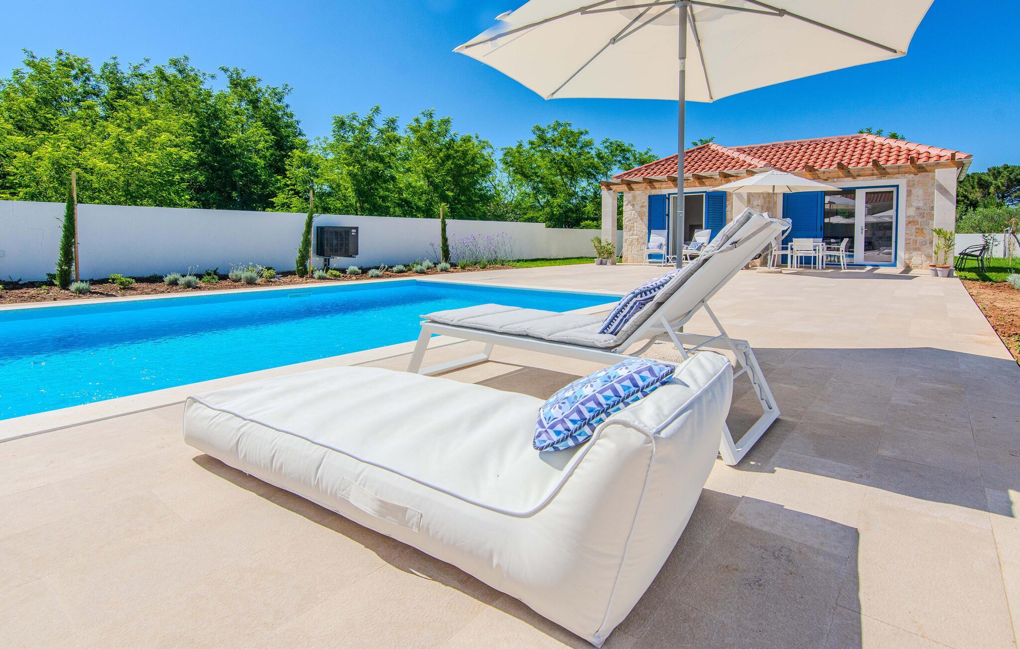 Hop ind i den rummelige pool og slap af på de komfortable liggestole eller nyd morgenmaden i det overdækkede udendørsområde med udsigt over middelhavslandskabet. Den smagfuldt designede stenfacade og de karakteristiske skodder giver huset en charmerende, dalmatisk karakter. Trampolinen i haven sørger for sjov hoppesjov for de små feriegæster.