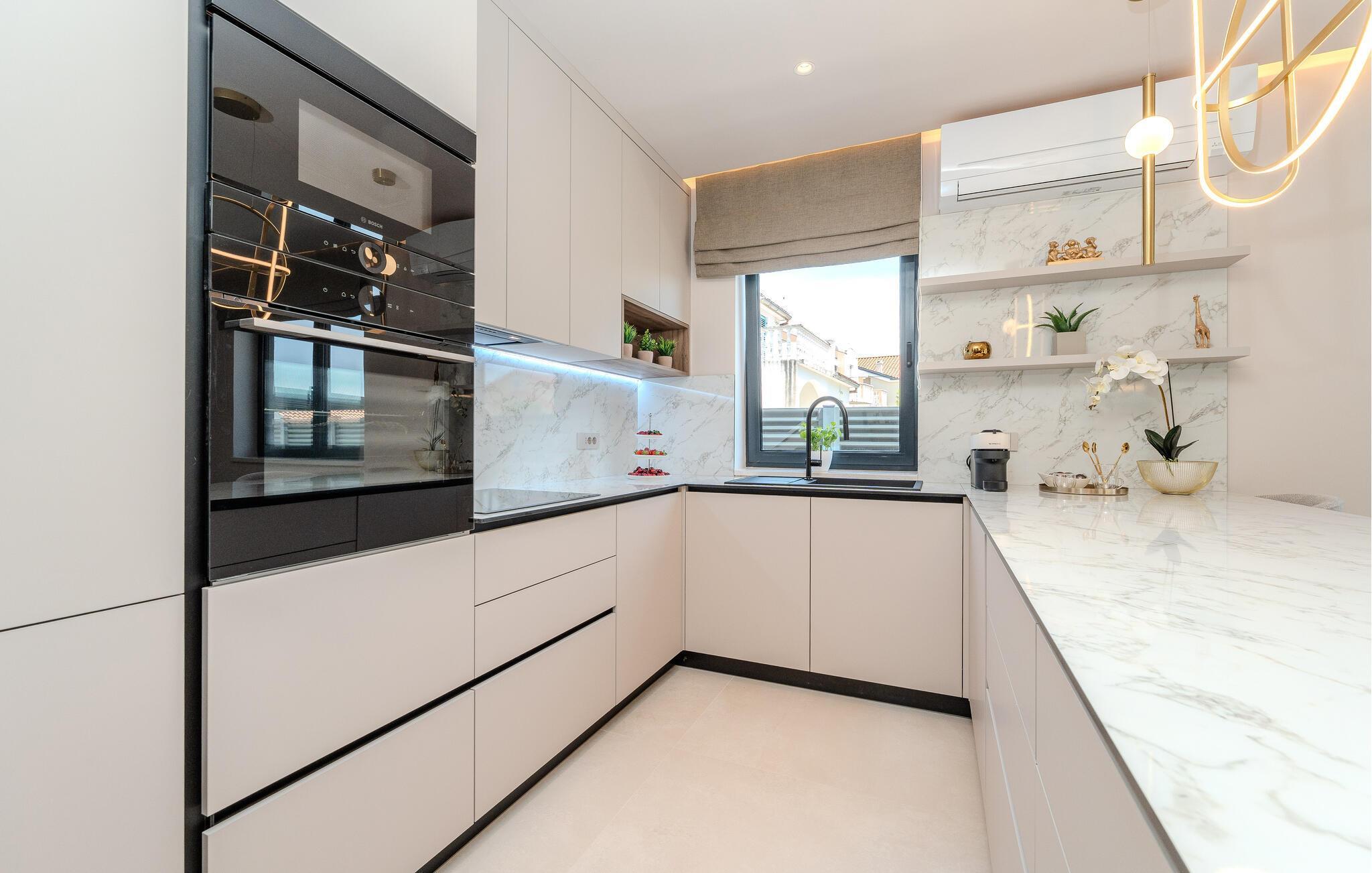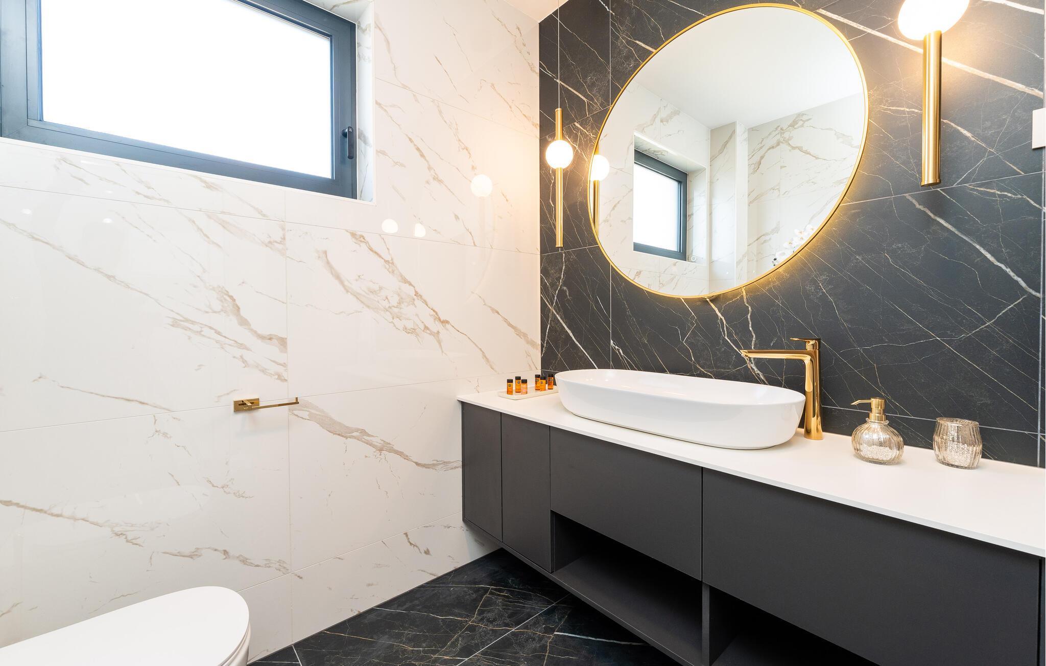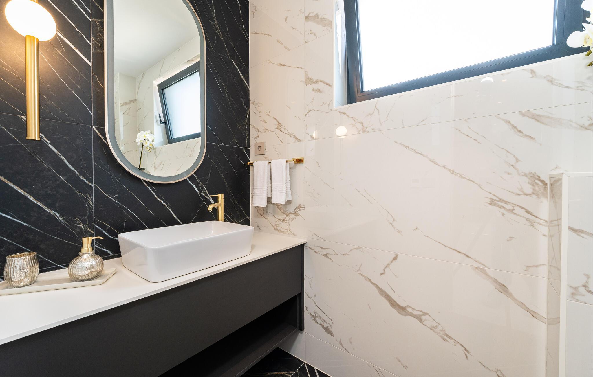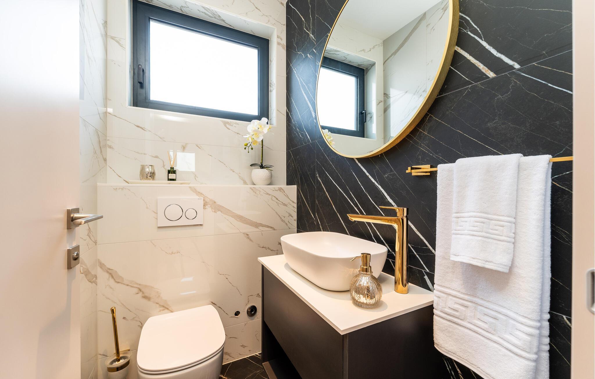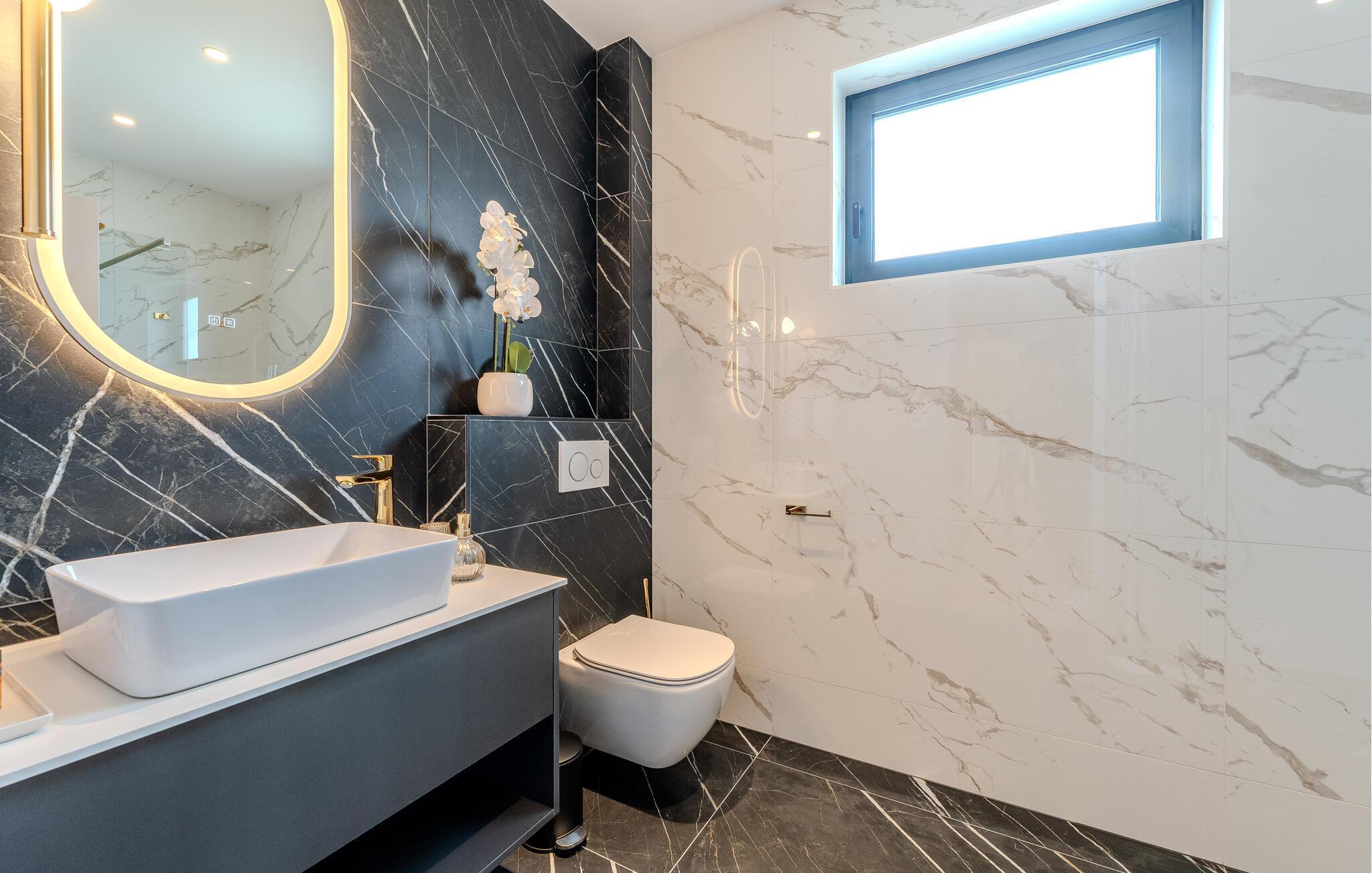Denne moderne luksusvilla forkæler jer med et lyst, stilfuldt og eksklusivt interiør samt adskillige komfortable ekstrafunktioner. Server et glas vin, mens I tilbereder kulinariske lækkerier i det åbne køkken, og fejr jeres tid sammen med stemningsfulde måltider i den elegante, åbne opholdsstue. Sæt jer i den komfortable designersofa, og stream jeres yndlingsserier.