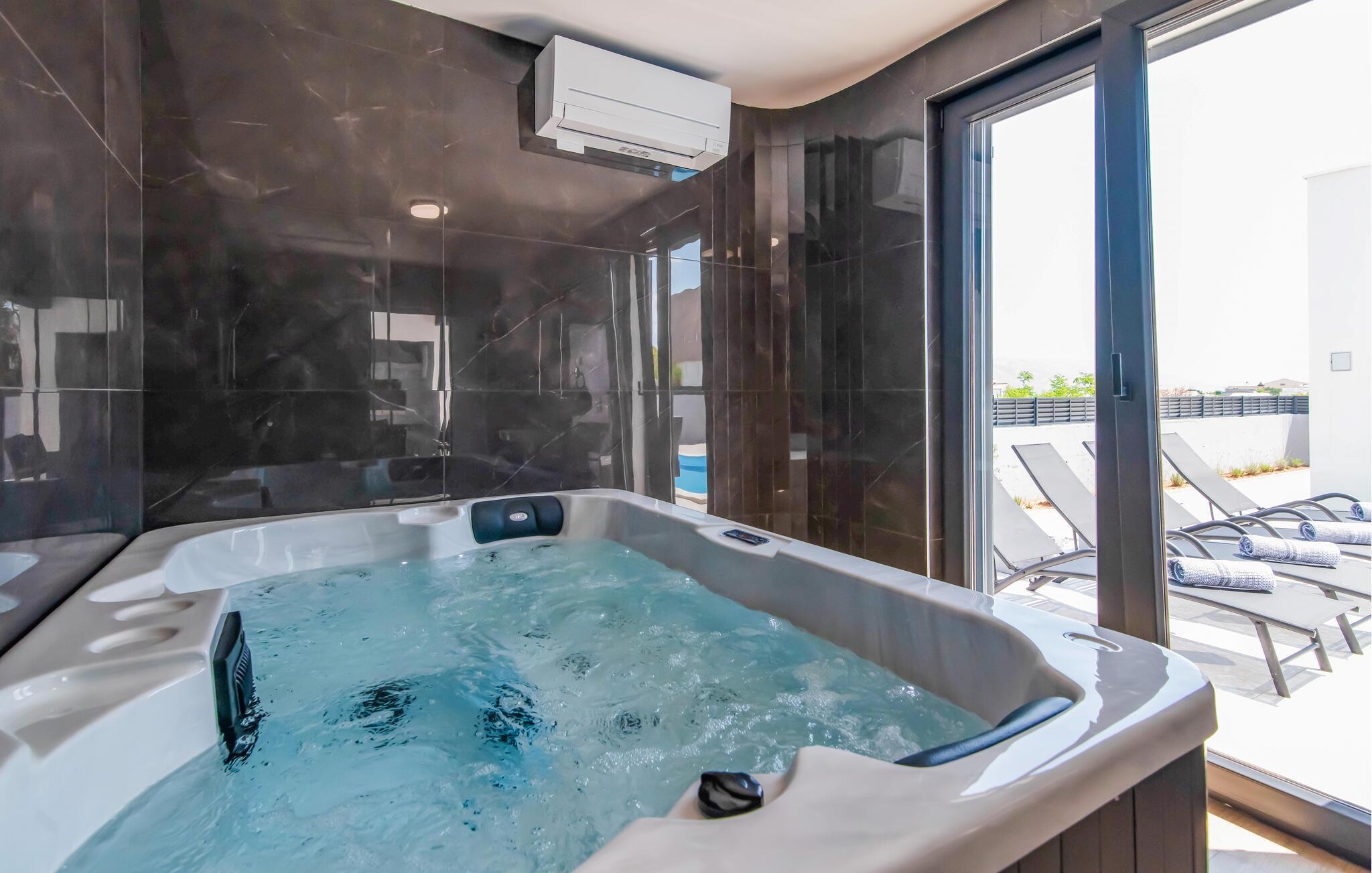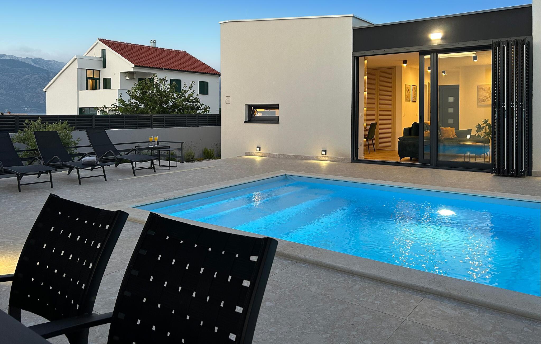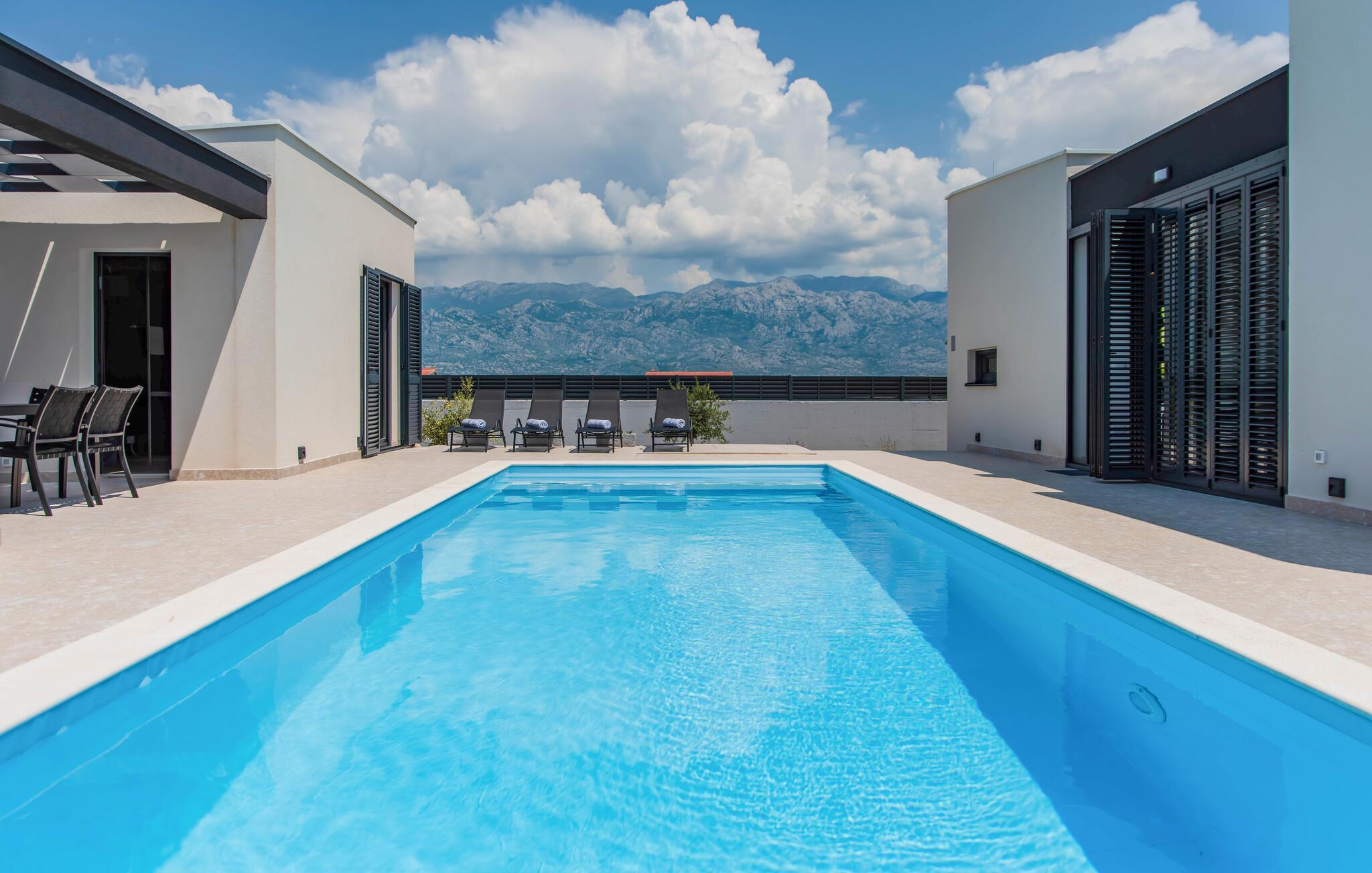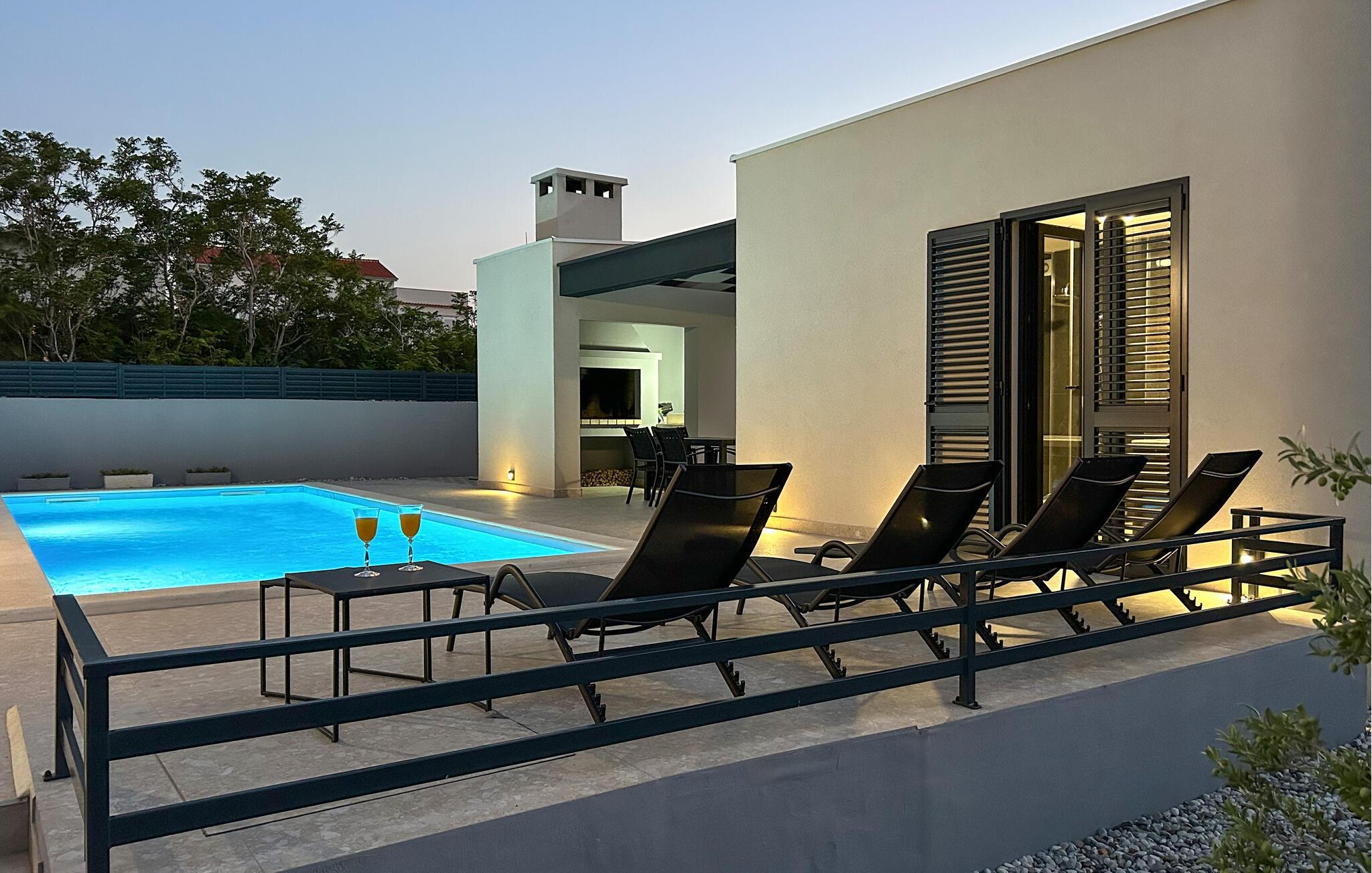 Nyd en luksuriøs ferie i dette moderne feriehus i Ražanac, der imponerer med sin moderne arkitektur og den fantastiske udsigt over Velebit-bjergene, som hver dag giver jer en magisk kulisse. Start dagen med en forfriskende dukkert i poolen og nyd roen og privatlivet, som dette eksklusive sted tilbyder.