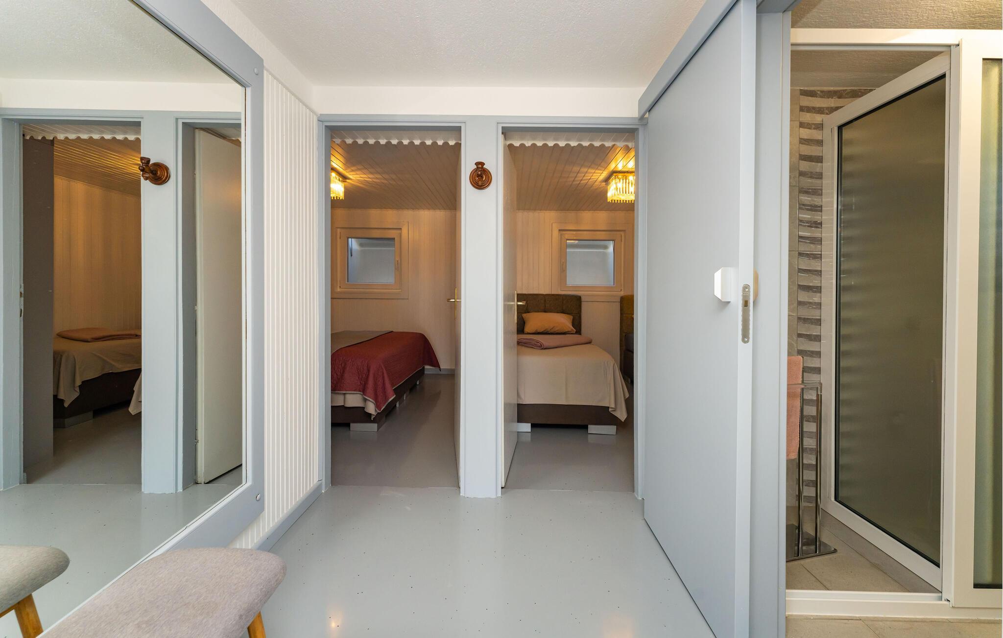 Velkommen til denne attraktive lejlighed, der ligger i en bygning med flere ferieboliger lige uden for Rtina. Lejligheden er nydeligt indrettet med gode møbler og alle de faciliteter, I som par eller lille familie behøver for at kunne slappe af og lade skuldrene sænke efter en herlig dag på farten. Tilbered en lækker aftensmad i det funktionelle køkken og nyd dem ved spisebordet eller på altanen, mens I lægger planer for dagen, der kommer, med en skøn udsigt over havet.