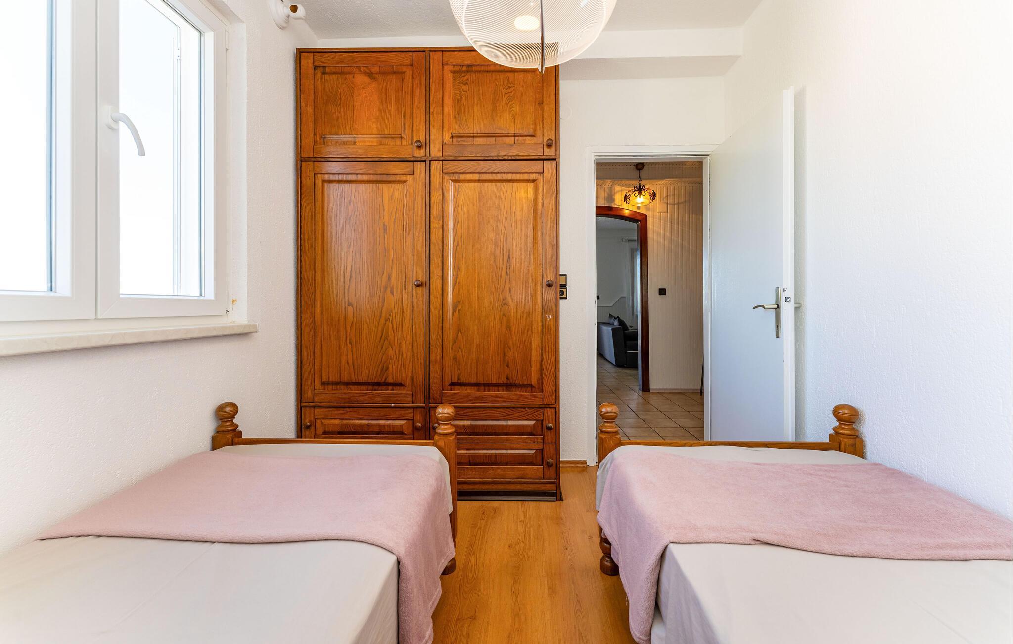 Velkommen til denne attraktive lejlighed, der ligger i en bygning med flere ferieboliger lige uden for Rtina. Lejligheden er nydeligt indrettet med gode møbler og alle de faciliteter, I som par eller lille familie behøver for at kunne slappe af og lade skuldrene sænke efter en herlig dag på farten. Tilbered en lækker aftensmad i det funktionelle køkken og nyd dem ved spisebordet eller på altanen, mens I lægger planer for dagen, der kommer, med en skøn udsigt over havet.