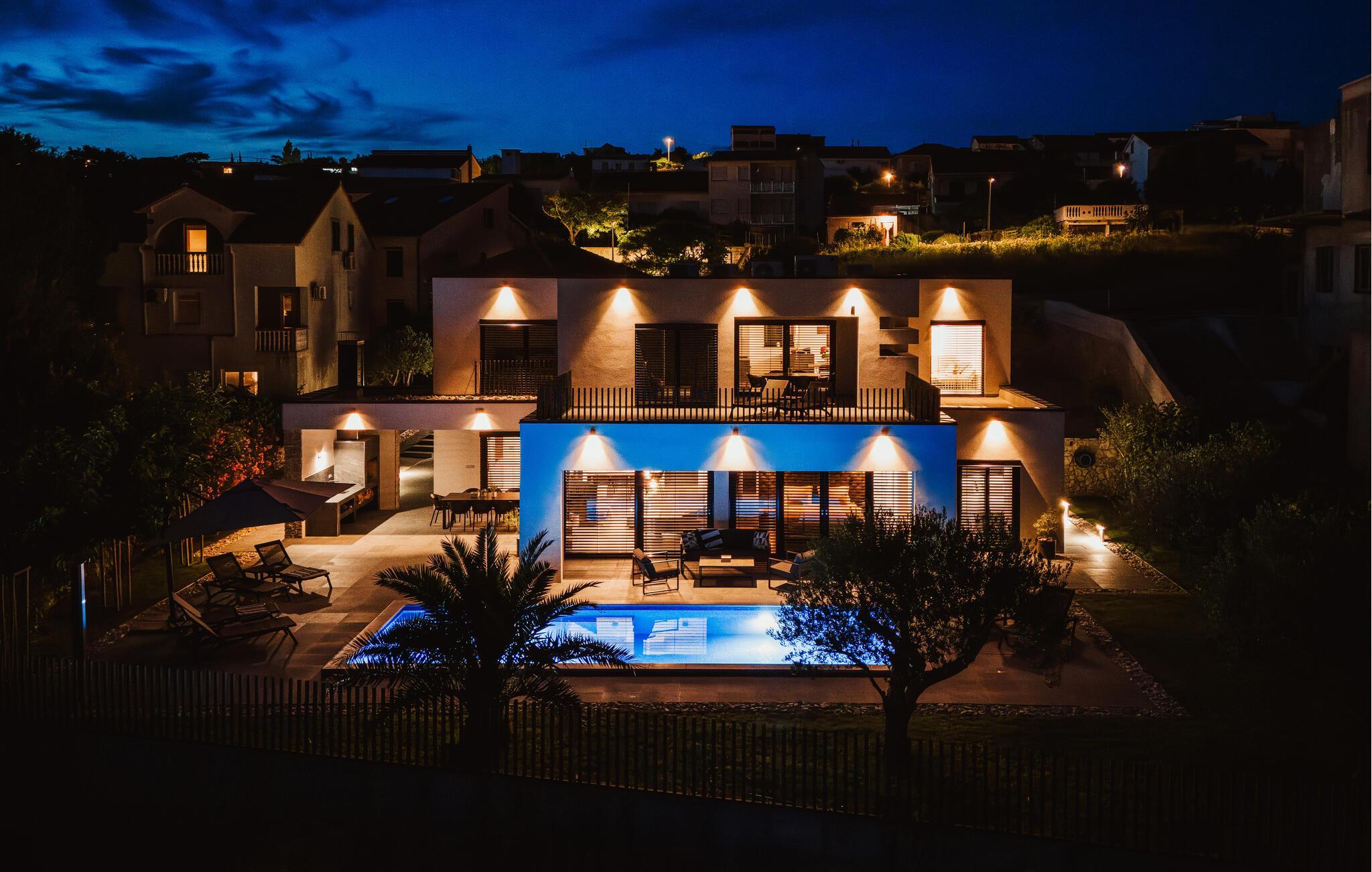 Tilbring jeres næste ferie i Kroatien i dette moderne feriehus i Rtina, en idyllisk kystby mellem Zadar og øen Pag. Feriehusets stilfulde indretning lægger op til at føle sig godt tilpas. Den åbne stue og spisestue med store panoramavinduer byder på en vidunderlig udsigt. Tilbered lækre måltider i det moderne, udstyrede køkken og tilbring afslappende aftener i den rummelige opholdsstue.