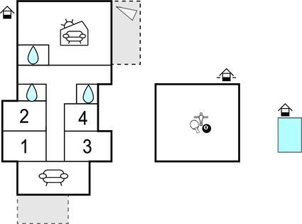 Badeværelse 5m2 (nr. 1) - WC. Varmt og koldt vand. Bruser