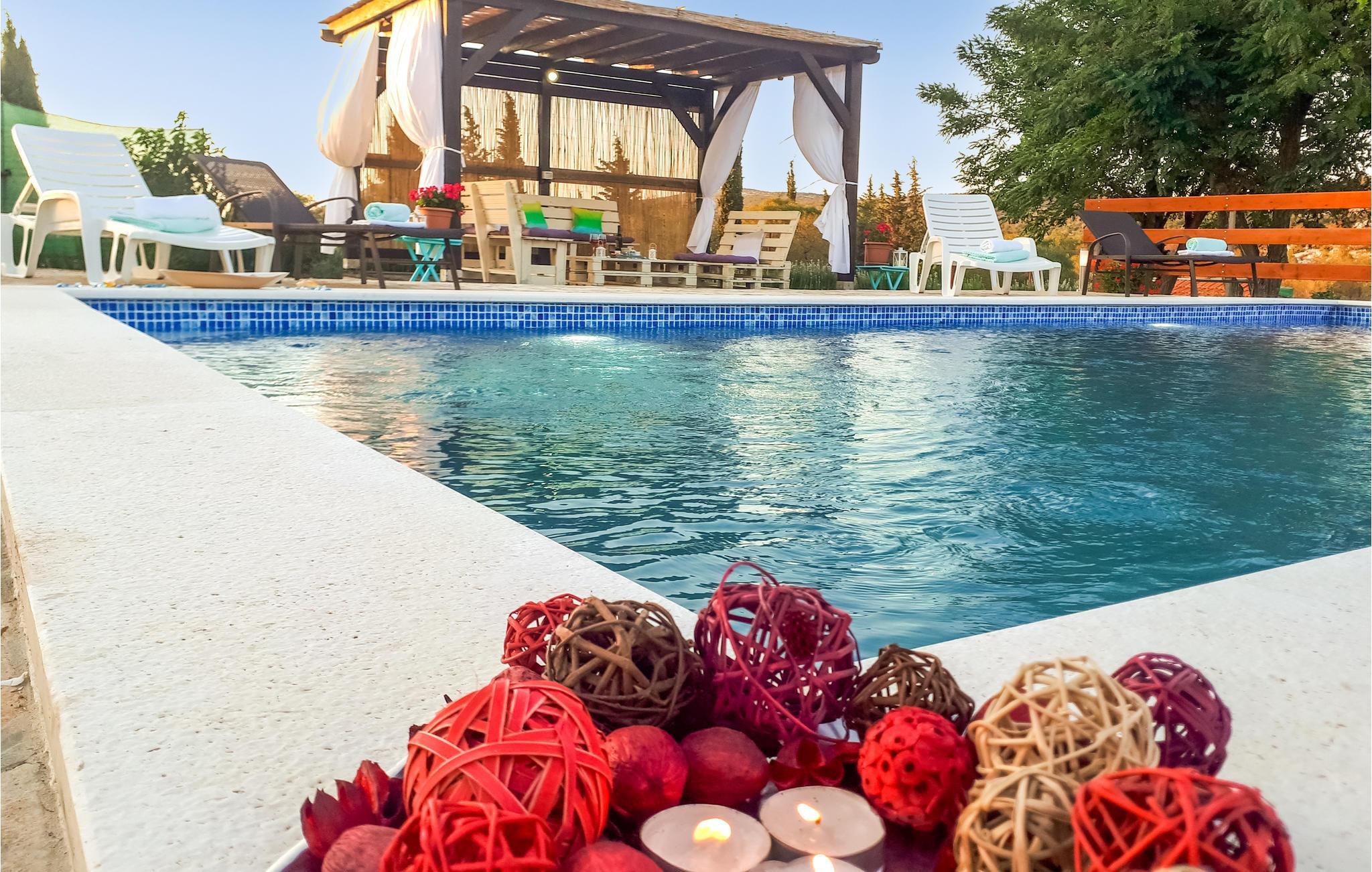 Dette store, familievenlige feriehus i Banjevci har en rolig beliggenhed nær Vrana-søen og Adriaterhavskysten. Velkommen til dette skønne hus, som forsøder jeres hverdagsferie på de forskellige etager med en rustik indretning samt moderne og komfortabelt udstyr. Brug fællesarealerne til at lave mad, lege og slappe af sammen og prøv lokale retter på den store grill. Underholdning og sjov lover adskillige legeredskaber, og haven med swimmingpool er også et godt sted at køle af i solen i vandet. Hver dag kan I bestemme, hvordan I vil tilbringe jeres ferie. På den ene side kan I opdage naturen, dyre- og planteverdenen på cykelture og vandreture rundt om Vranasøen og nyde udsigten over havet. På den anden side inviterer adskillige strande jer til at bade i Adriaterhavet. I bør også besøge byen Biograd na Moru, som vil tilbyde jer et godt underholdningsprogram til jeres feriedage og også hurtigt kan tage jer med båd til øen Pasman. Forkæl jer selv med en velfortjent pause i dette attraktive feriehus i Dalmatien!