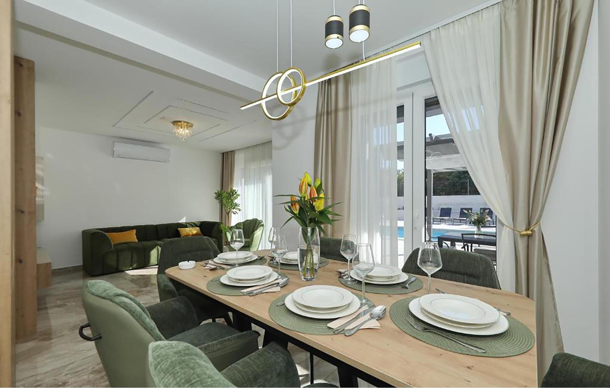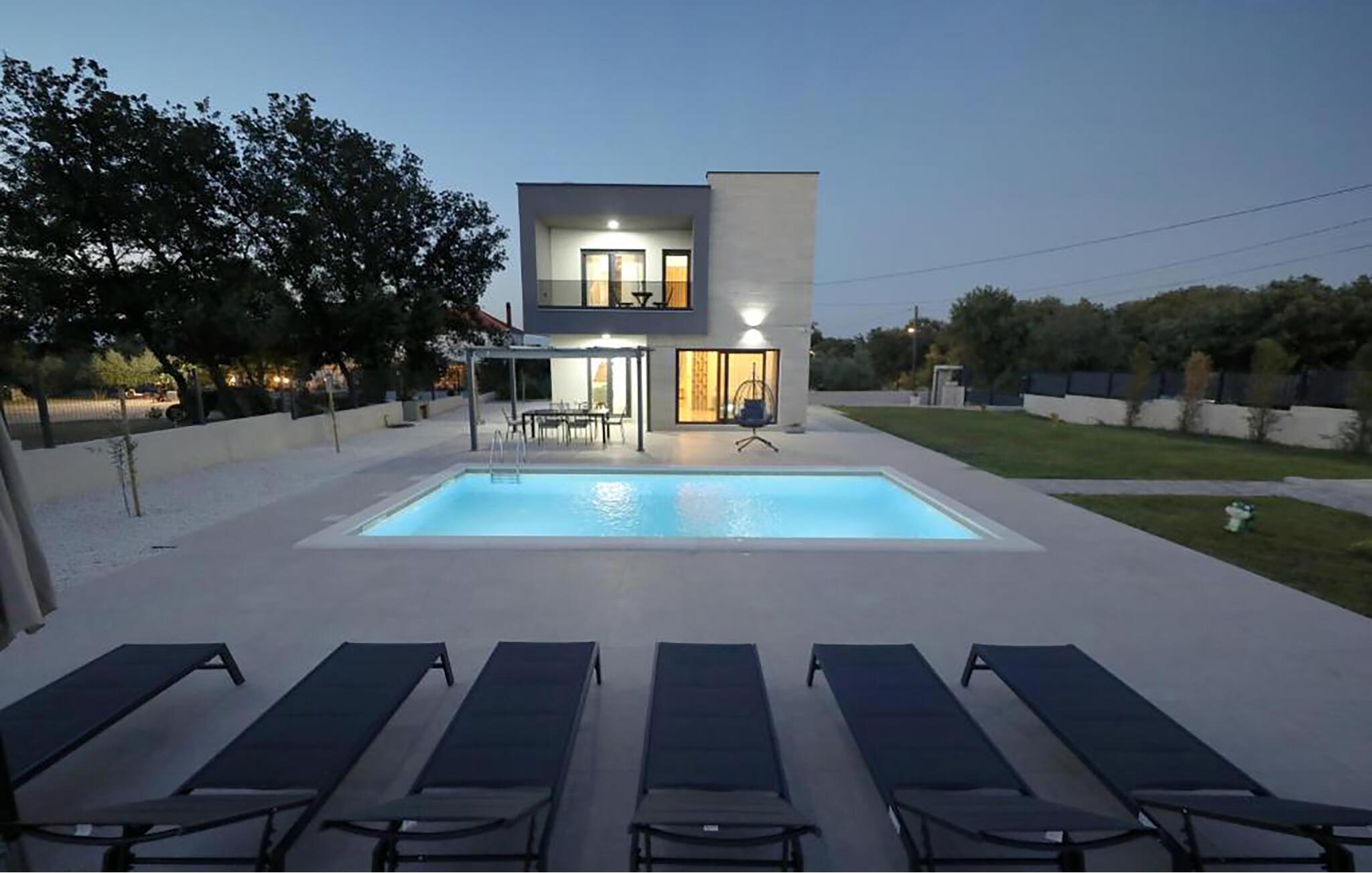 Oplev en uforglemmelig ferie i dette komfortable feriehus med pool og tæt på havet. Dette stilfuldt møblerede hus garanterer jer en pause fra hverdagen på højeste niveau. Smagfuld indretning i afdæmpede farver, en komfortabel sofagruppe og et moderne udstyret køkken inviterer jer til at genoplade batterierne. Hyg jer sammen med en kop kaffe, lav et lækkert måltid, eller tilbring en afslappende aften på sofaen med at streame jeres yndlingsserie. Uanset om det er morgen eller aften, inviterer poolen altid til en forfriskende dukkert eller en sjov omgang vandpolo. Bagefter kan I slappe af med en kølig drink på en af liggestolene eller gynge i hængekurvsstolen lige ved poolen. Om aftenen inviterer terrassen jer til at afslutte aftenen i fred med en grill. Svøm i det klare hav på regionens strande og nyd afslappende timer ved Adriaterhavskysten. Tag en tur til den historiske by Zadar, som vil glæde jer med sin gamle bydel, romerske bygninger og det berømte Havorgel. Udforsk de omkringliggende vinmarker og olivenlunde på gåture eller cykelture. I kan også tage bådture til øerne langs kysten eller de imponerende nationalparker i området.