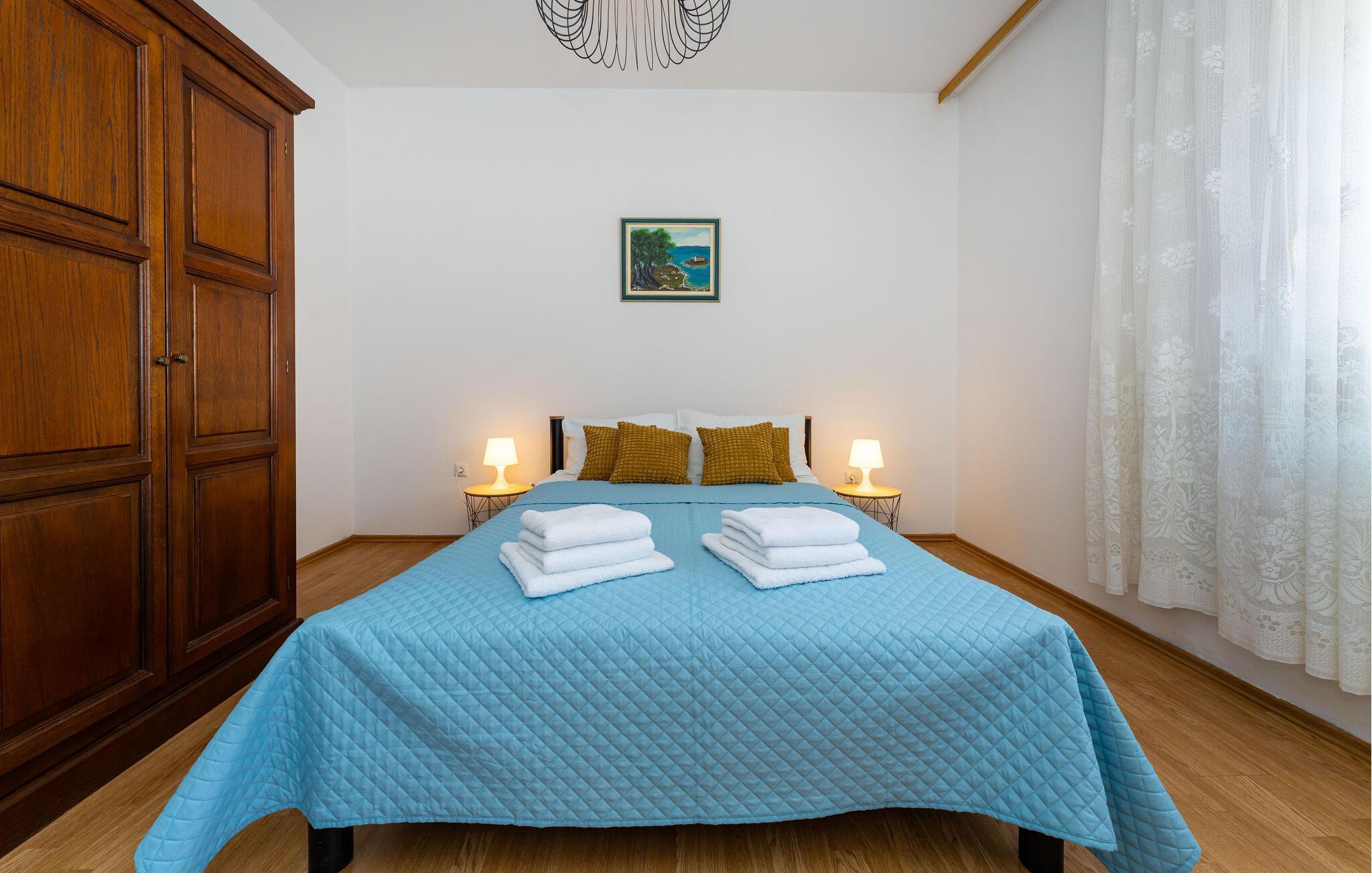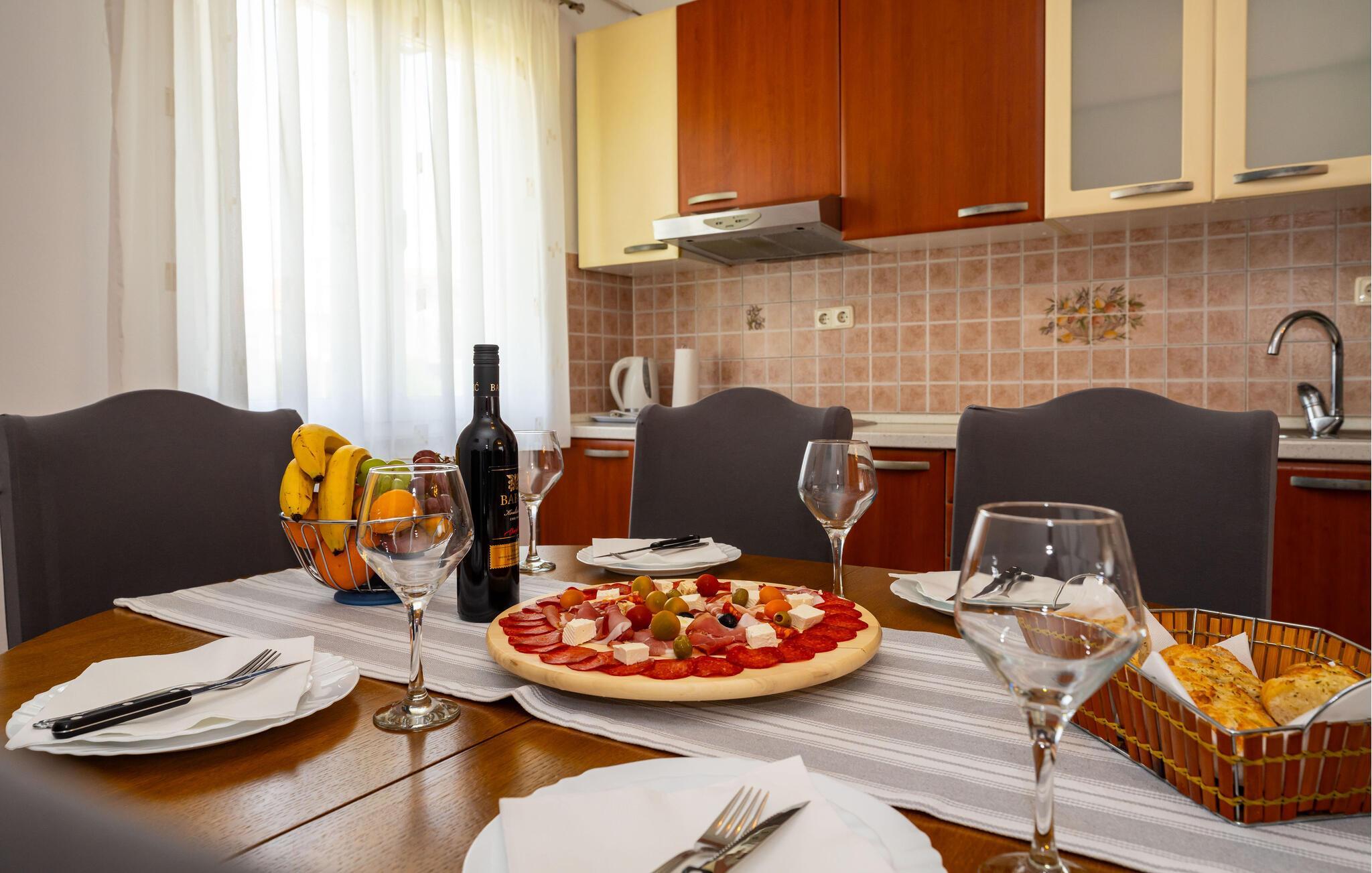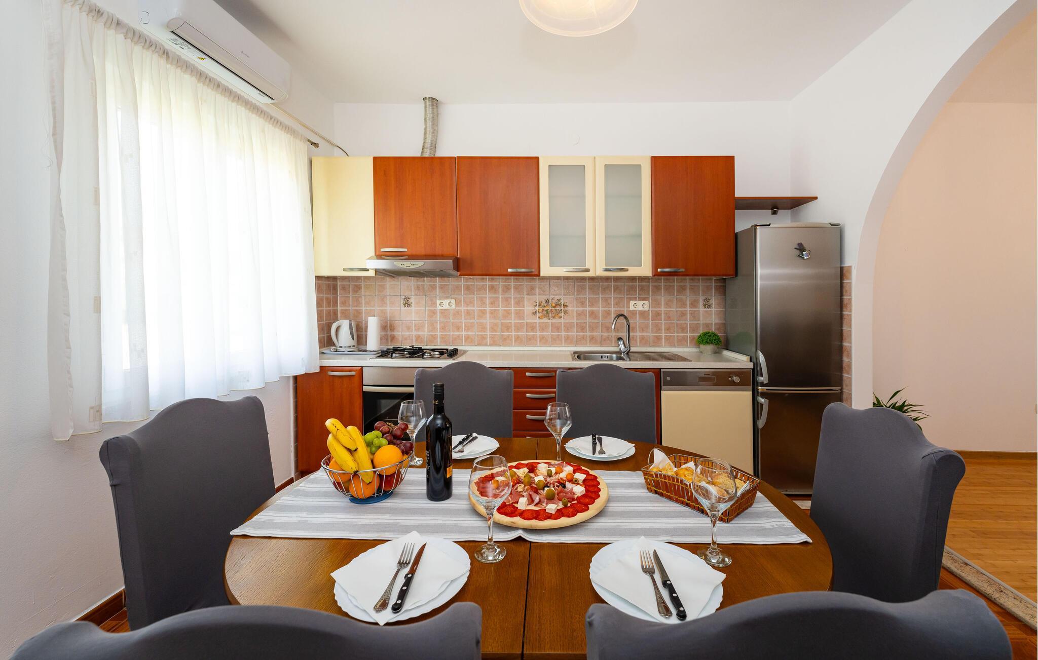 Nyd jeres ferie i denne smukke lejlighed med en klassisk indretning og en hyggelig atmosfære. Slap af i det store opholdsområde, og lav mad sammen i det veludstyrede køkken.