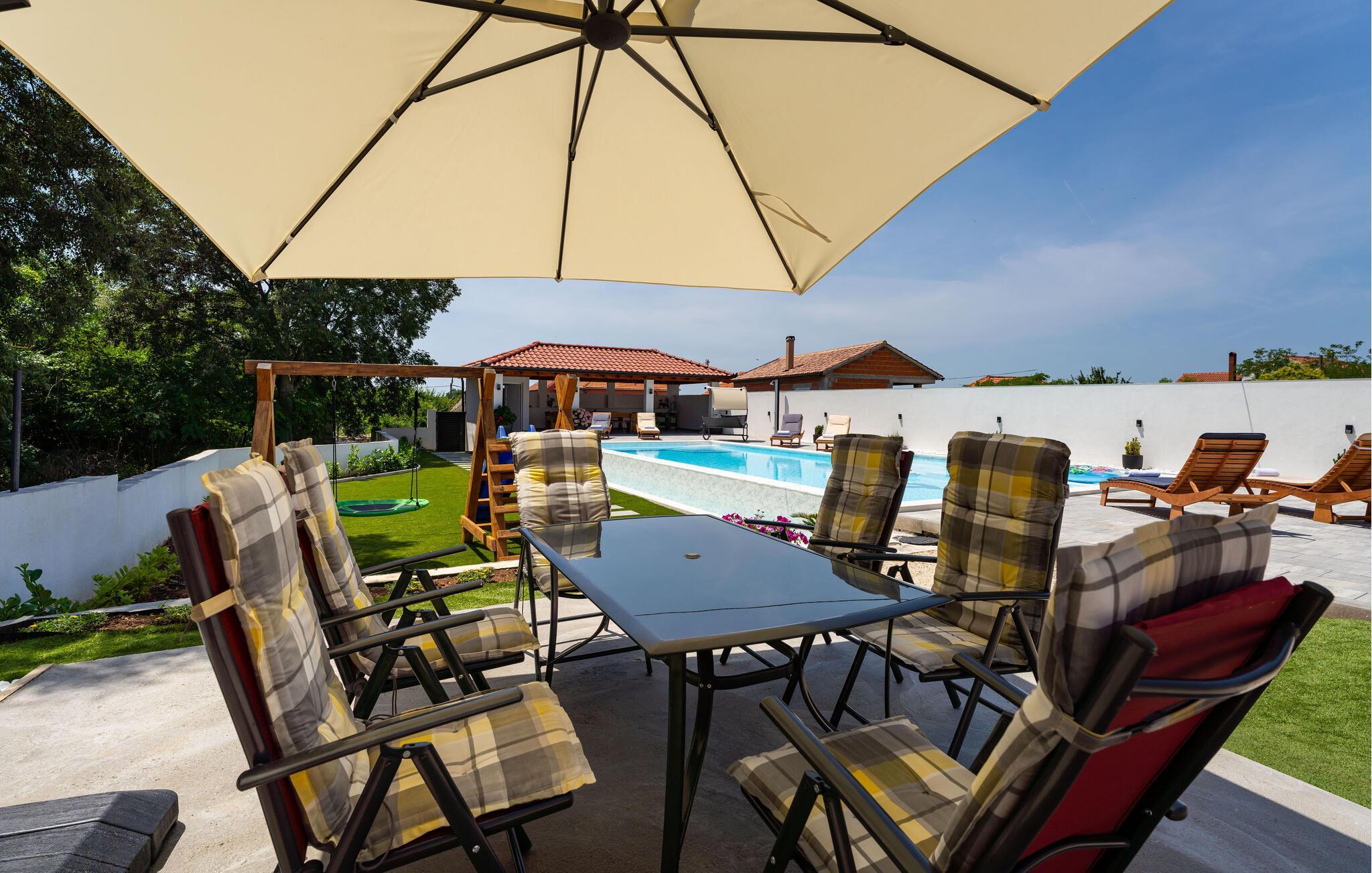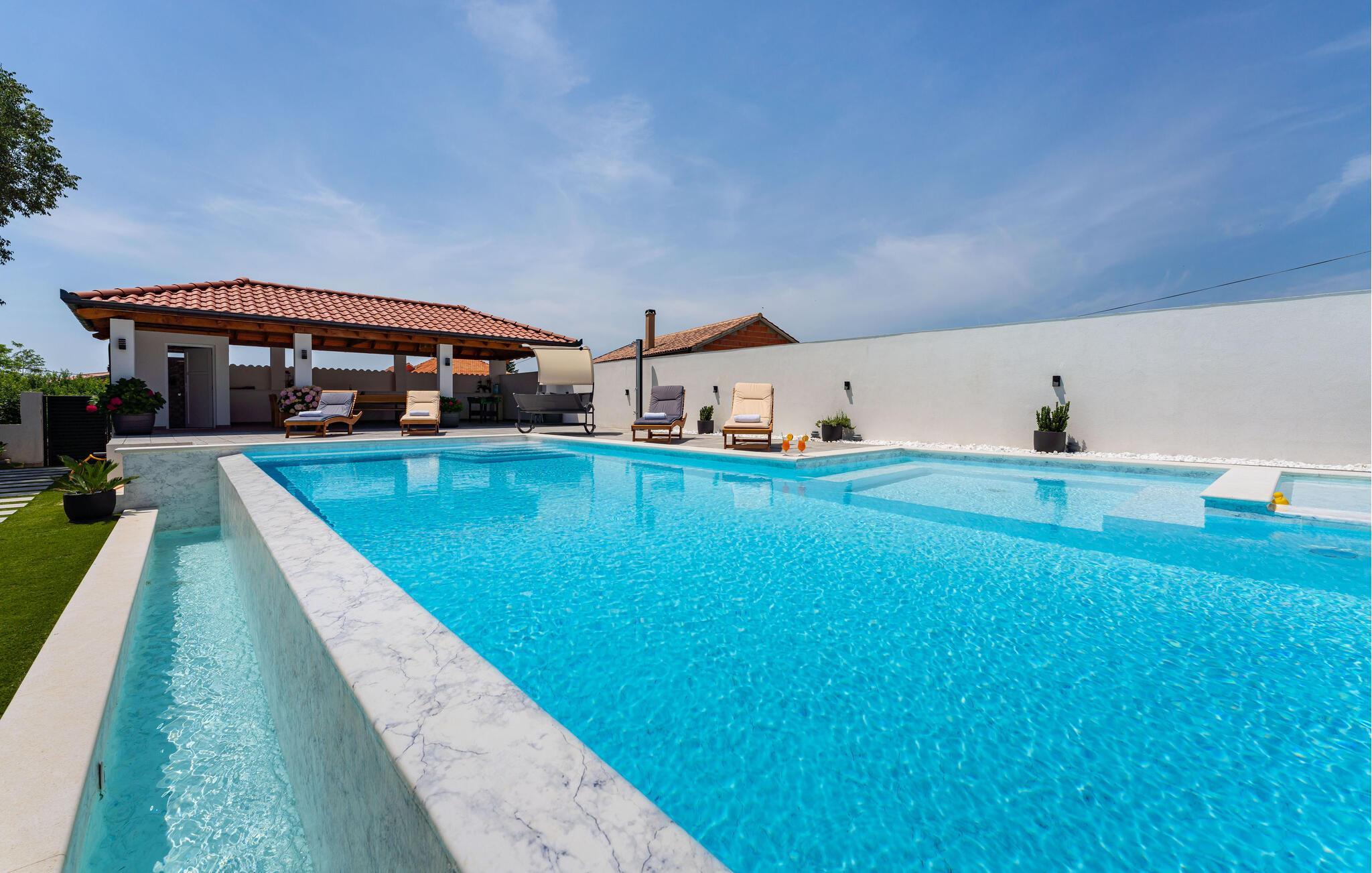 Udforsk Zadar og den hyggelige by Galovac, en region fyldt med aktiviteter og udflugtsmuligheder. Udforsk det maleriske landskab på vandreture eller cykelture gennem grønne enge og idylliske landsbyer. Besøg historiske seværdigheder som kirken Sv. Martin og det arkæologiske museum i Zadar. Naturentusiaster kan tage på udflugter til naturparken Vrana Sø eller til kysten ved Nin. Nyd lokale specialiteter på hyggelige restauranter, og oplev de lokales gæstfrihed.