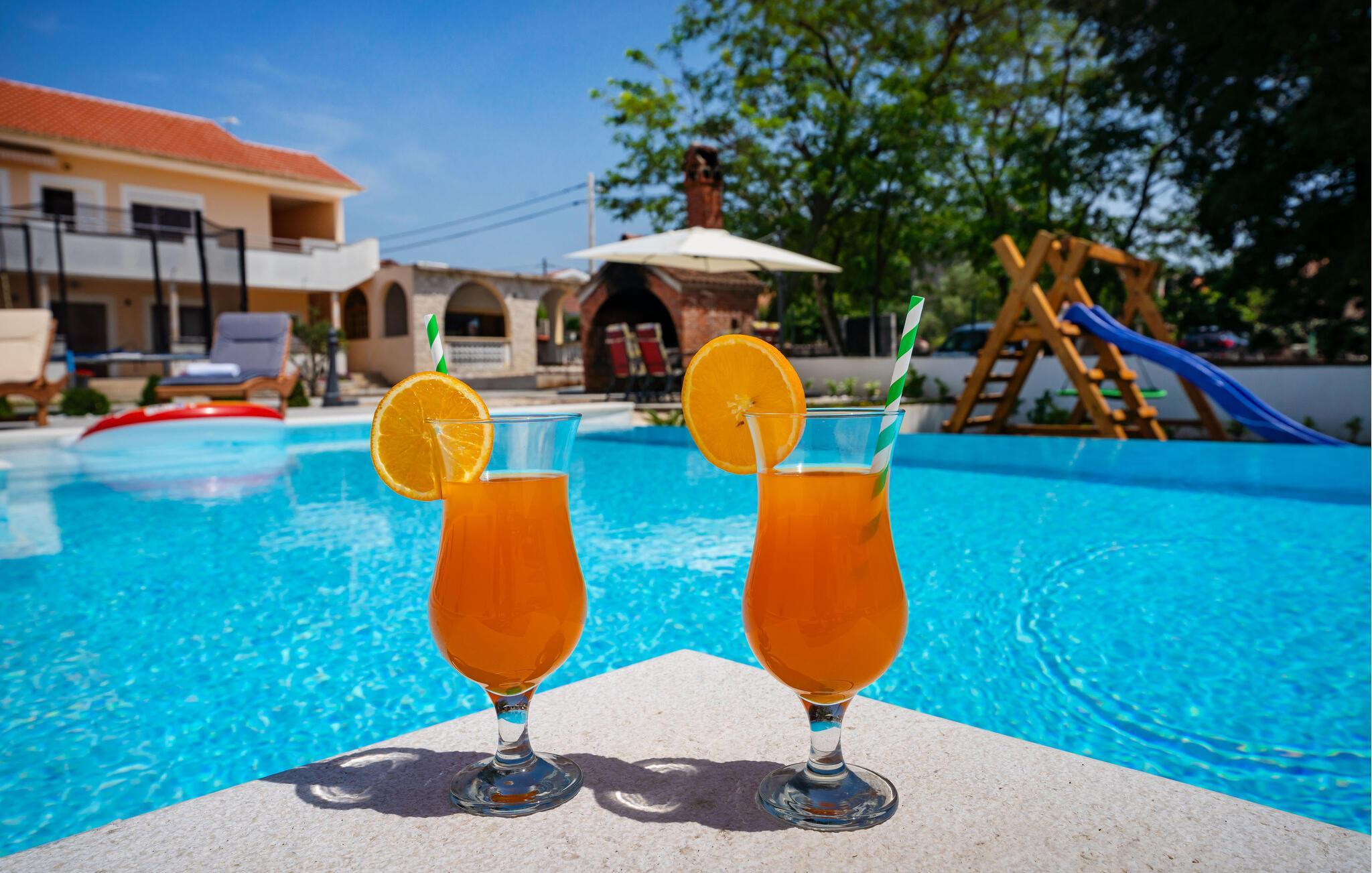 Glæd jer til denne skønne ferielejlighed med fælles pool og en dejlig familievenlig have med mange faciliteter.