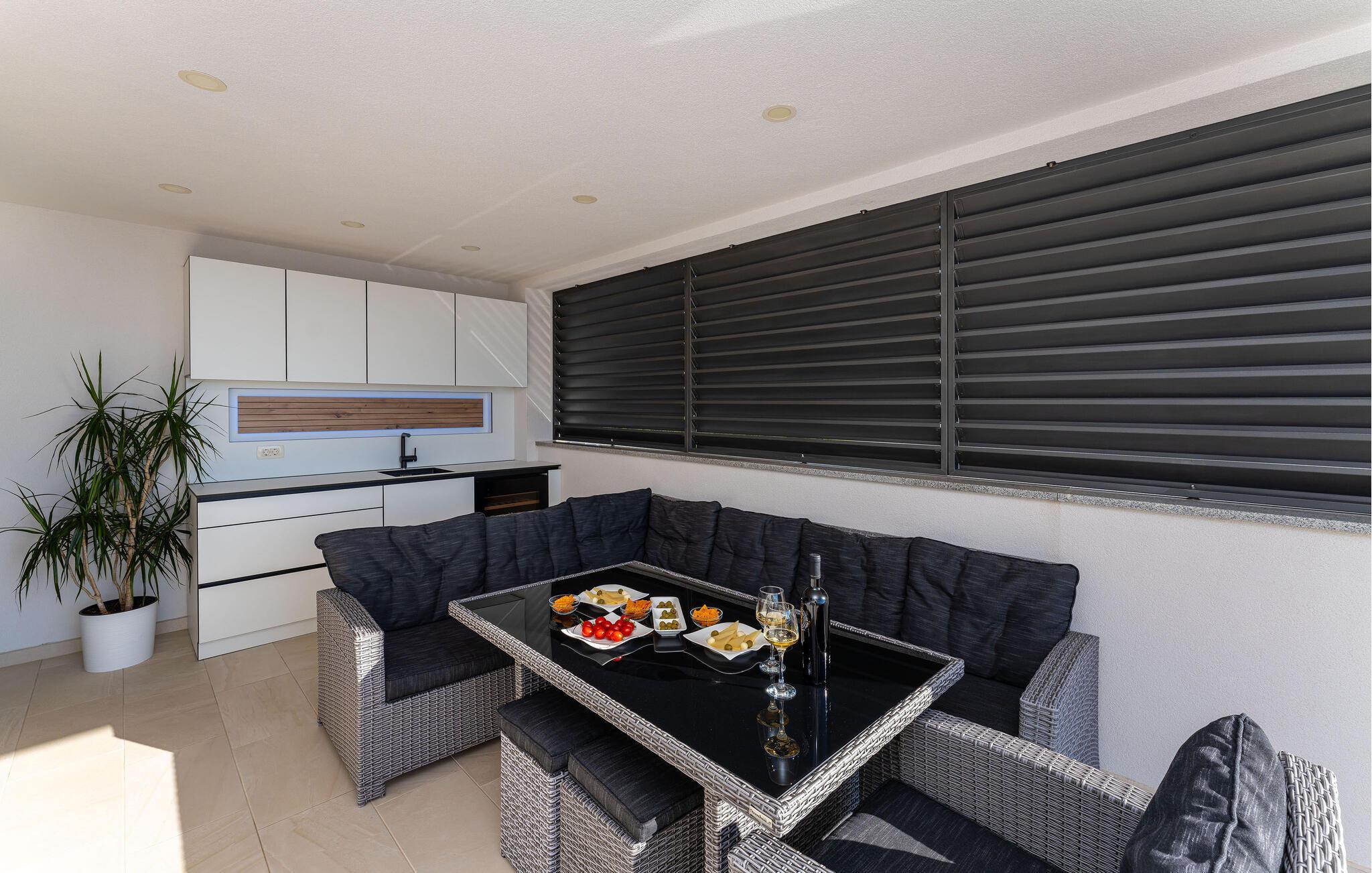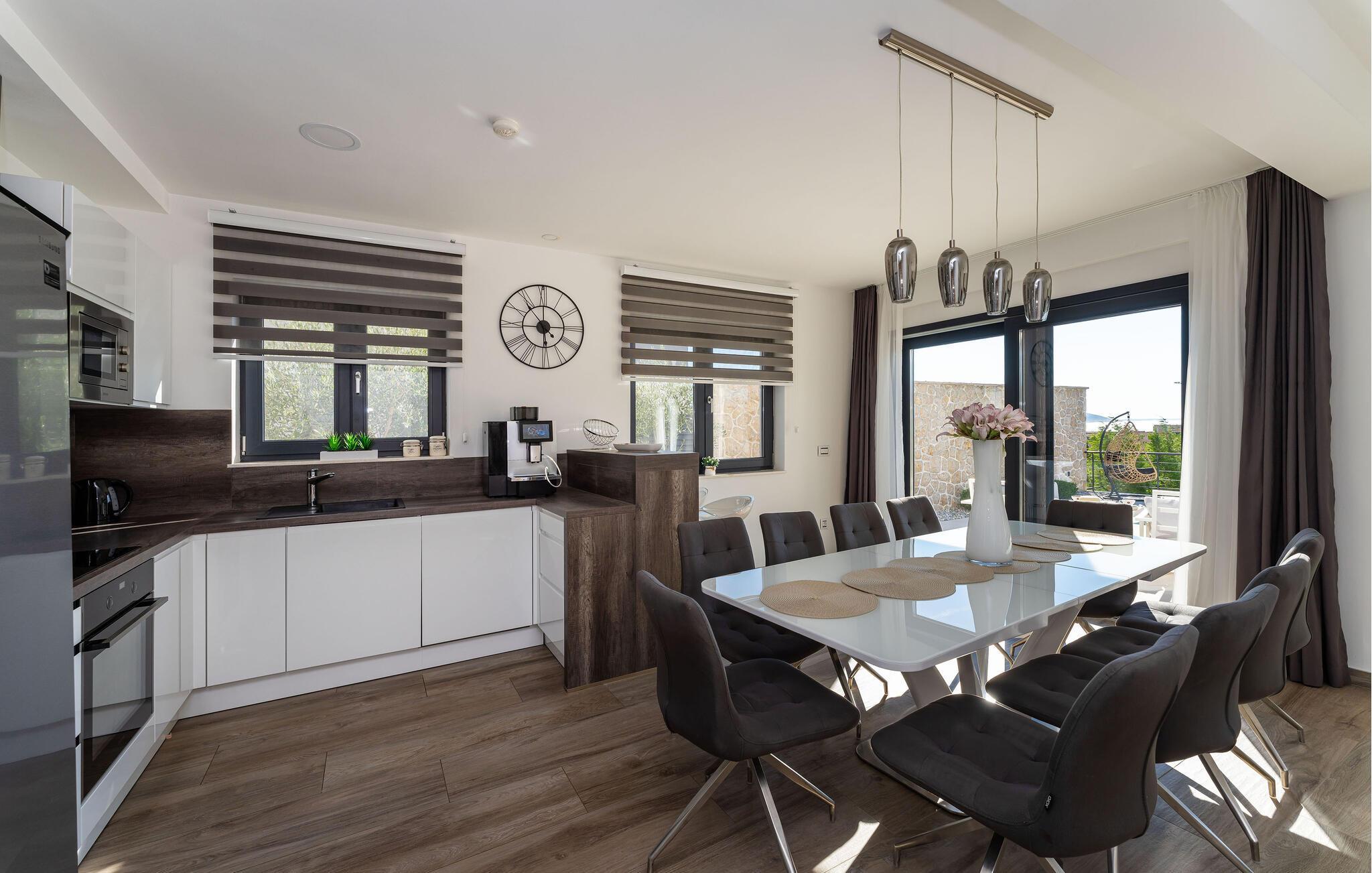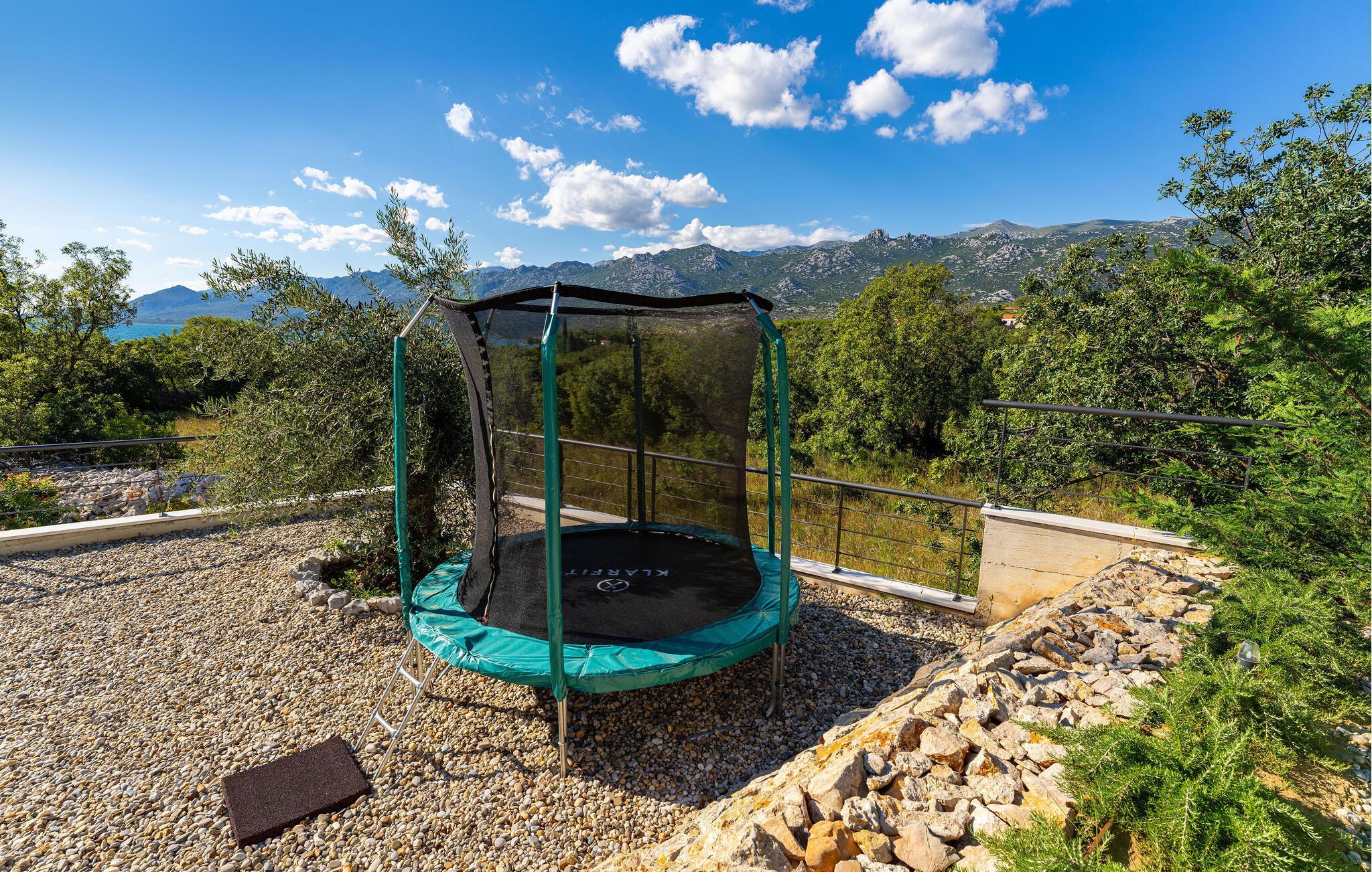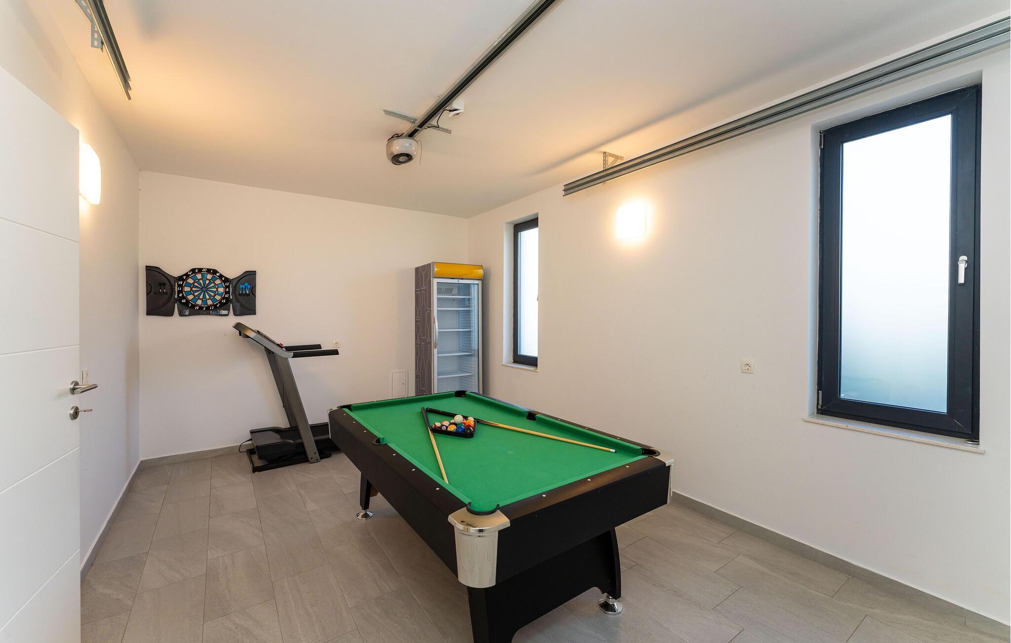 Oplev en uforglemmelig ferie i denne fantastiske villa med en betagende havudsigt. Den luksuriøse Villa Carpe Diem i Rovanjska, beliggende mellem de majestætiske Velebit-bjerge og Adriaterhavet, er det perfekte tilflugtssted for afslappende dage. Nyd en elegant, åben atmosfære fra den solbeskinnede stue i stueetagen, som harmonisk forbinder sig med det moderne køkken og spisestue. Ovenpå venter soveværelser med havudsigt på jer, der lægger op til at slappe af. Villaen tilbyder adskillige siddeområder, en tagterrasse med lounge og en rummelig have med pool og liggestole. Slap af og snup en frisk dukkert i vandet. En kulgrill og et udendørs spisebord er tilgængelige til hyggelige aftener. børnene vil nyde legepladsen, mens I kan være aktiv med billard, dart eller på løbebåndet. Rovanjska er en idyllisk beliggenhed med nærhed til adskillige naturlige skønheder. Udforsk sandstranden kun få minutters gang væk eller oplev eventyr i Paklenica Nationalpark med dens klatre- og vandrestier. Velebit Naturpark og Kornatiøerne byder på uforglemmelige udsigter og oplevelser. I den nærliggende historiske by Zadar venter kulturelle højdepunkter, middelhavsstemning og festivaler på jer, hvilket vil forbedre jeres ophold.