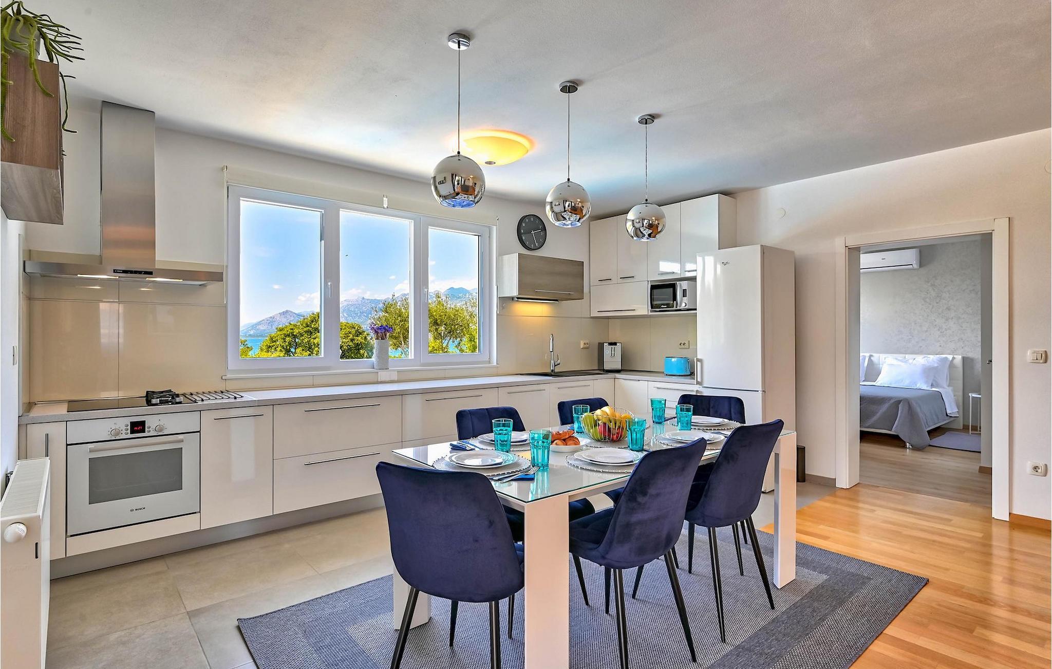 Du har valgt Dalmatien som din sommerdestination, men foretrækker stadig rolige og intime rammer. Villa Immortelle er vores anbefaling, og du vil simpelthen have det som dit andet hjem. Dette moderne hus i stueetagen glæder med sin enkelhed, og samtidig vil intet ønske forblive uopfyldt. Med i alt 3 soveværelser kan den komfortabelt rumme op til 7 personer. De suppleres af en stue med spiseplads, og villaens ægte perle er køkkenet med udsigt over havet. Nå, hvem vil ikke gerne lave mad her?