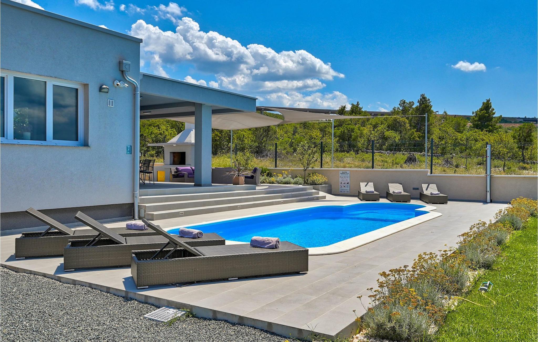 Jasenica er en af de mest forskelligartede regioner i Zadar County. Kombinationen af havet, Velebit-bjergene, middelhavsvegetationen og Zrmanja-floden med dens kløfter skaber et gunstigt klima med et stort antal solskinsdage. Frisk luft er især nyttig for mennesker, der har problemer med deres hjerte og vejrtrækning, og udover de sundhedsmæssige fordele er der også en håndfuld historiske, kulturelle og naturlige perler, der er værd at udforske. Bortset fra nærheden til havet (villaen ligger kun 200 meter fra den første strand) er du omgivet af nationalparker og naturreservater, og byen Zadar (35 km) kan ikke beskrives med ord - du skal blot besøge den, i sin unikhed og alder over 3.000 år.