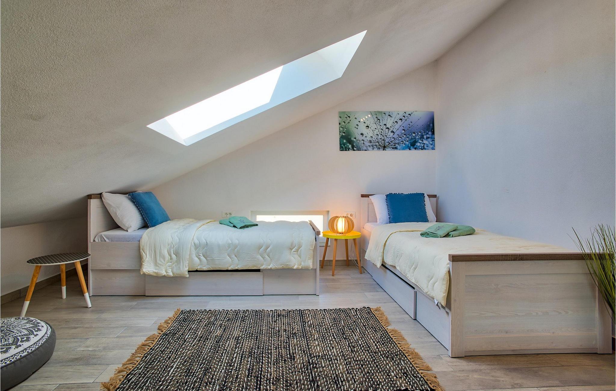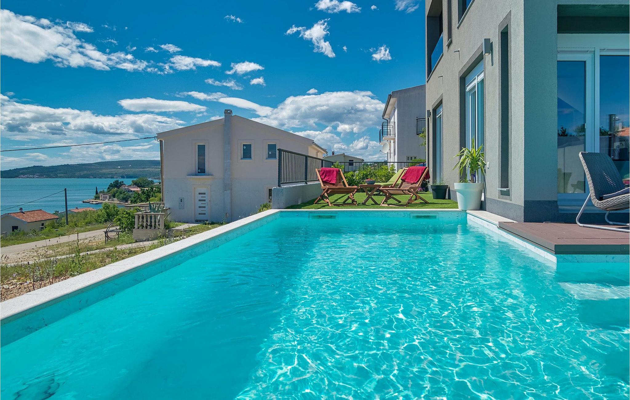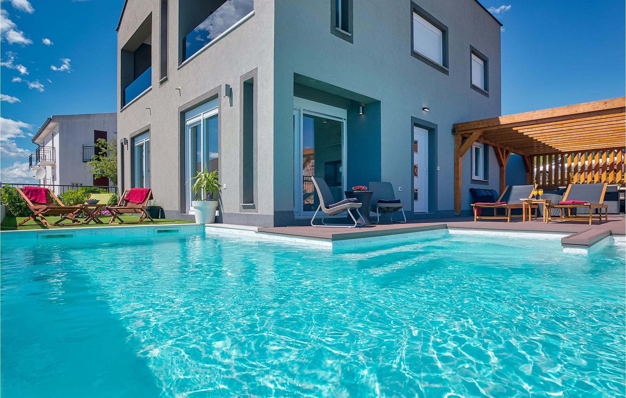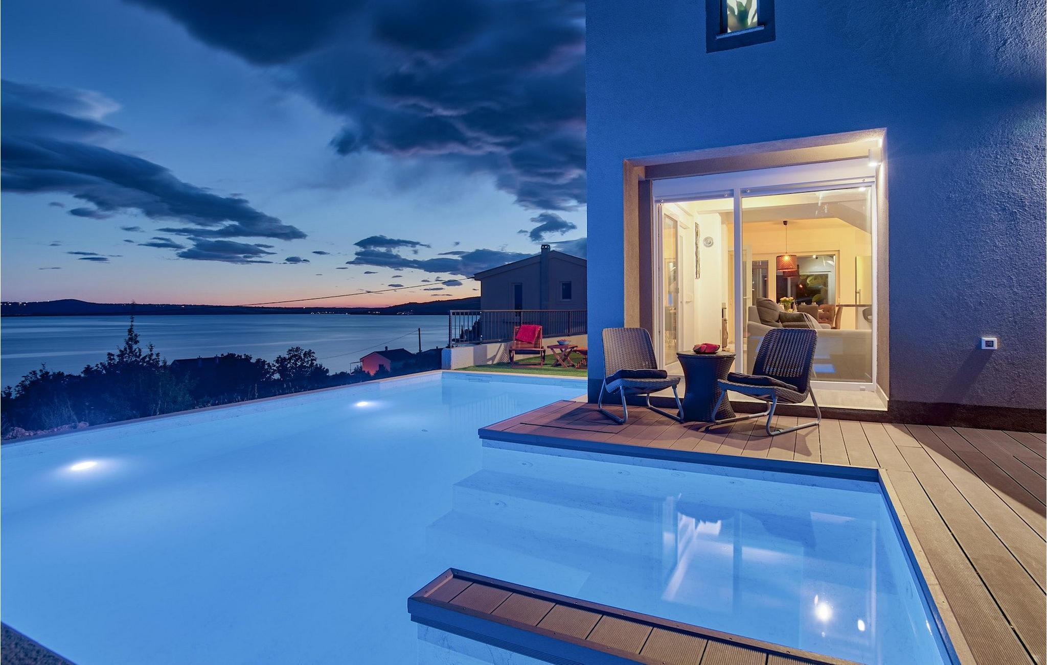 Indrettet med stil, tilbyder en fantastisk havudsigt, en privat pool, og beliggende kun 200 m væk fra den nærmeste strand, vil Villa Amy opfylde alle dine behov for en ultimativ ferie! Beliggende på et sted, der muliggør fritid og afslapning, men også et stort udvalg af aktiviteter såsom vandreture, rafting og bungeejump, vil denne ejendom ikke undlade at imponere dig. Det repræsenterer en ideel indkvartering for op til 10 gæster i 4 moderne soveværelser, der alle har et luksuriøst ensuite badeværelse. To soveværelser, der er placeret på øverste etage, er ideelt velegnet til familier, da de består af en dobbeltseng og trapper op til galleriet med to opdelte enkeltsenge. Disse to værelser har også balkoner, hvor du kan slappe af og nyde den vidunderlige udsigt over Novigrad-bugten med en kop kaffe om morgenen. Yderligere to soveværelser er placeret i den lyse stueetage, hvor det primære fællesrum er opdelt i køkkenet og opholds- og spiseafdelingen. De store glasflader muliggør masser af naturligt lys og fantastisk panoramaudsigt fra hvert hjørne af rummet. Køkkenet er fuldt udstyret og giver alt hvad du kunne få brug for under dit ophold. Den anden spiseplads ligger på den overdækkede terrasse, hvor du kan tilberede dine yndlingsmåltider på kulgrillen. Terrassen er et fantastisk sted at slappe af, da den byder på et loungeområde, hyggelige liggestole og selvfølgelig - den private pool. Simpelthen det perfekte sted at nyde alle fordelene ved denne villa fuldt ud. Villaen er beliggende i et fredeligt område, omkring 2 km fra den nærmeste by, Maslenica. Dette sted er takket være den specifikke geografiske placering ret usædvanlig sammenlignet med de fleste steder på Adriaterhavskysten; du kan få adgang til havet ved at tage en kort gåtur omkring 200 m fra villaen, ved at tage mod nord på kysten ved foden af Velebit-bjerget eller sydpå til Zadar-omgivelserne. Zrmanja-flodens kløft, hvor du også kan prøve rafting, ligger kun få kilometer fra villaen. Regionens mest populære bungeejump-sted ligger på Maslenica-broen. Bjergenes nærhed byder på mange muligheder for vandrere. Hvis du vil udforske det omkringliggende, anbefaler vi at besøge den historiske by Nin og regionens hovedstad, Zadar, begge ca. 40 km væk. Zadar-regionen har 3 naturparker - Telašcica, det nordlige Velebit og Vransko-søen samt 5 nationalparker - Paklenica, Plitvice, Kornati, Krka og Velebit, der rangerer Zadar og dens omgivelser på toppen af det kroatiske turisttilbud.