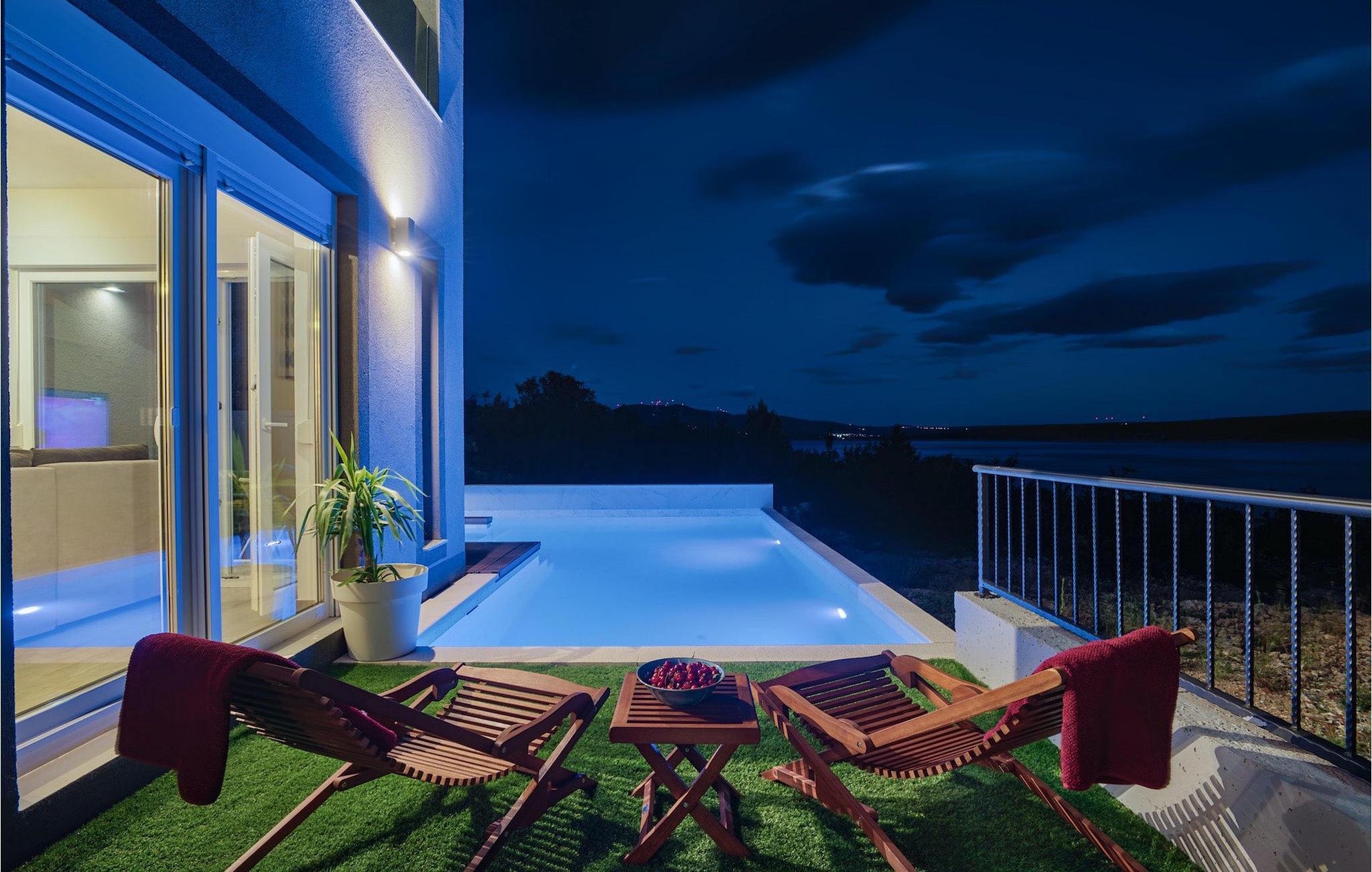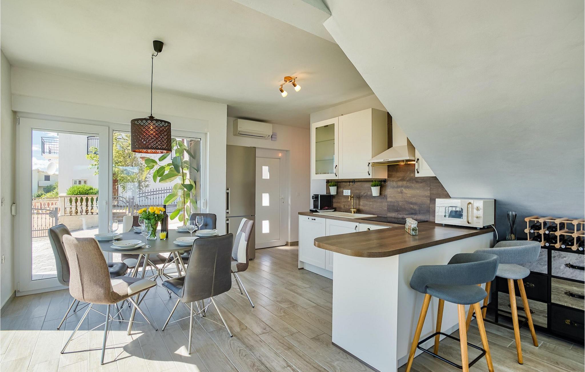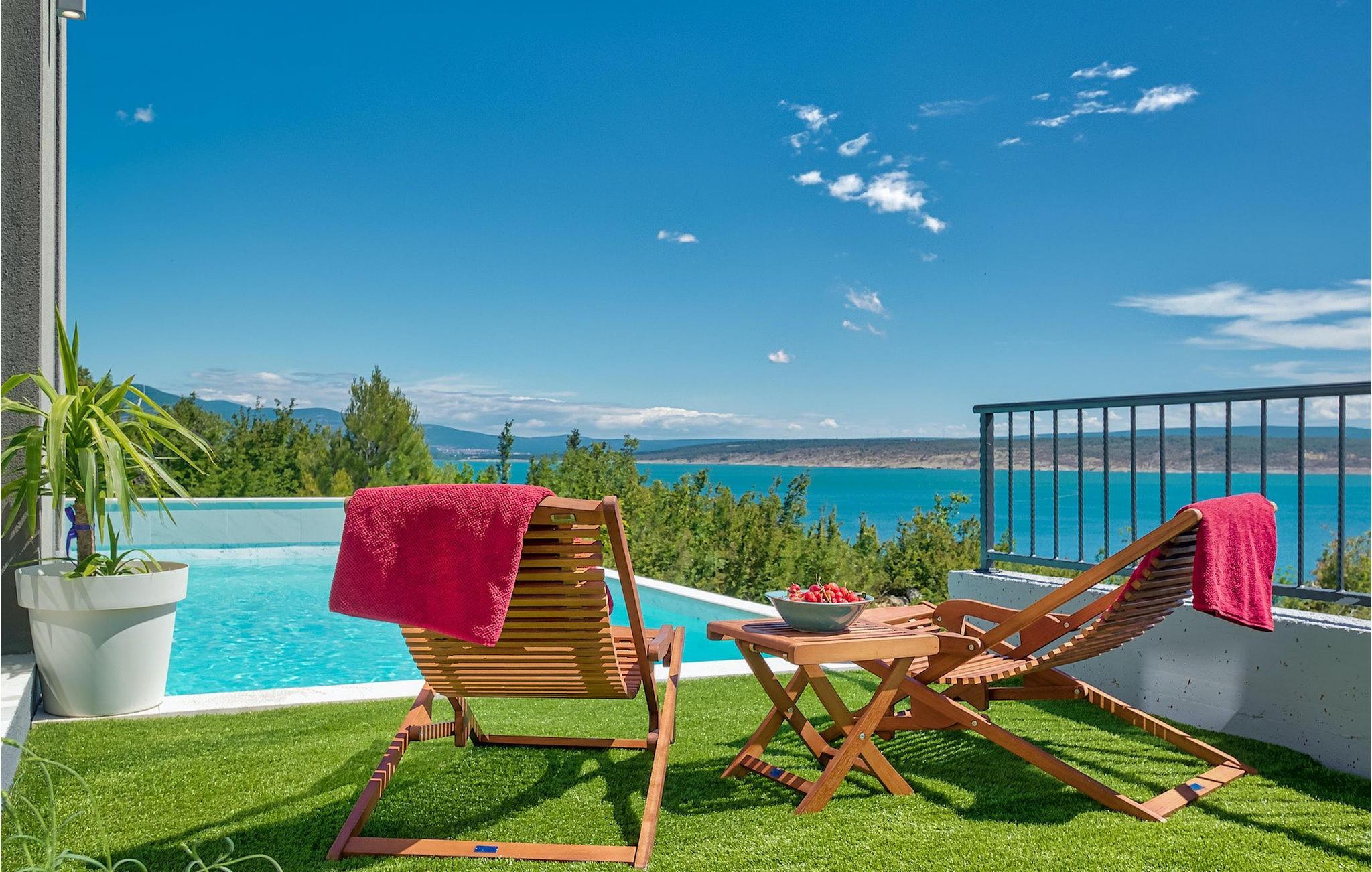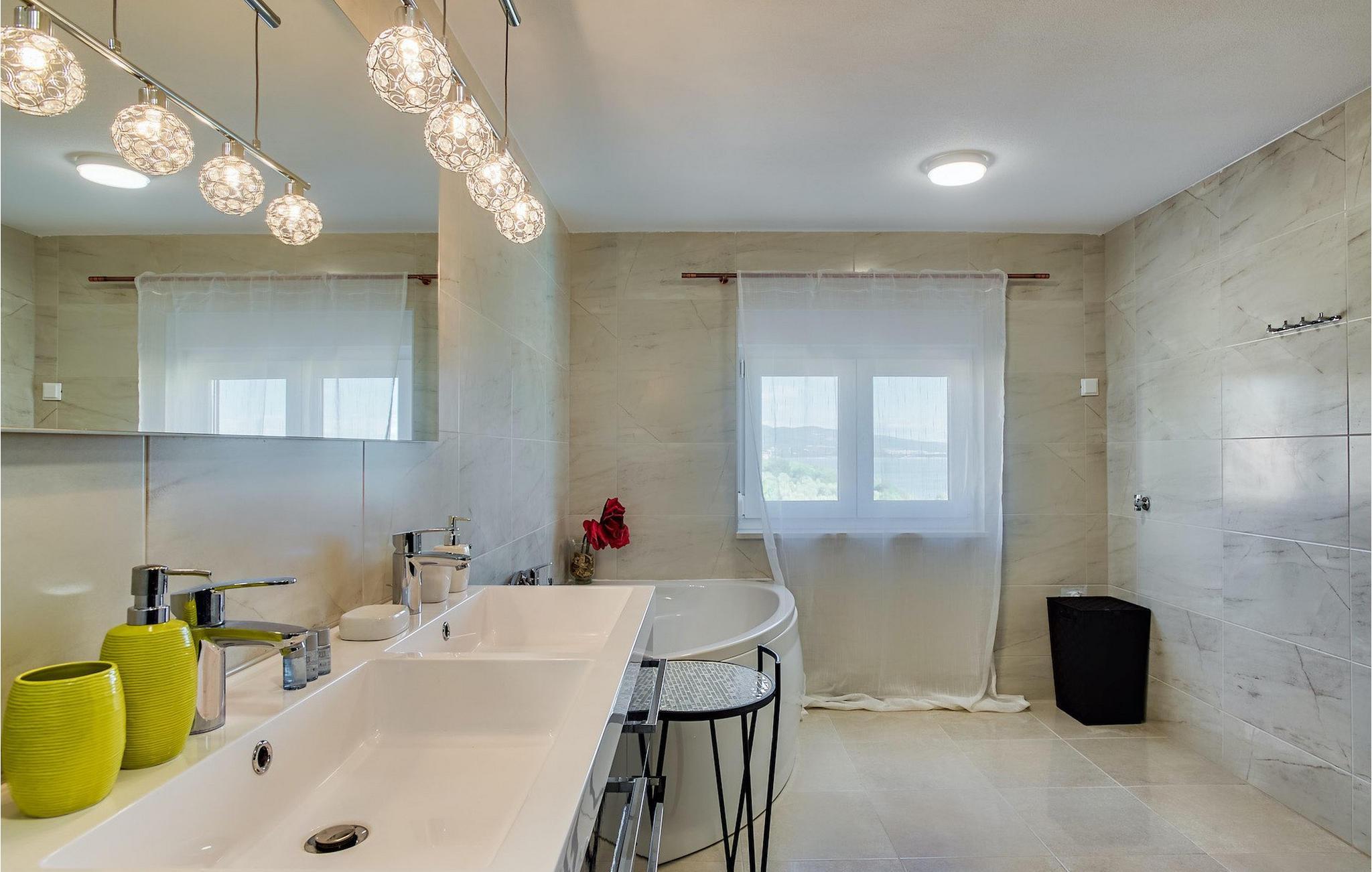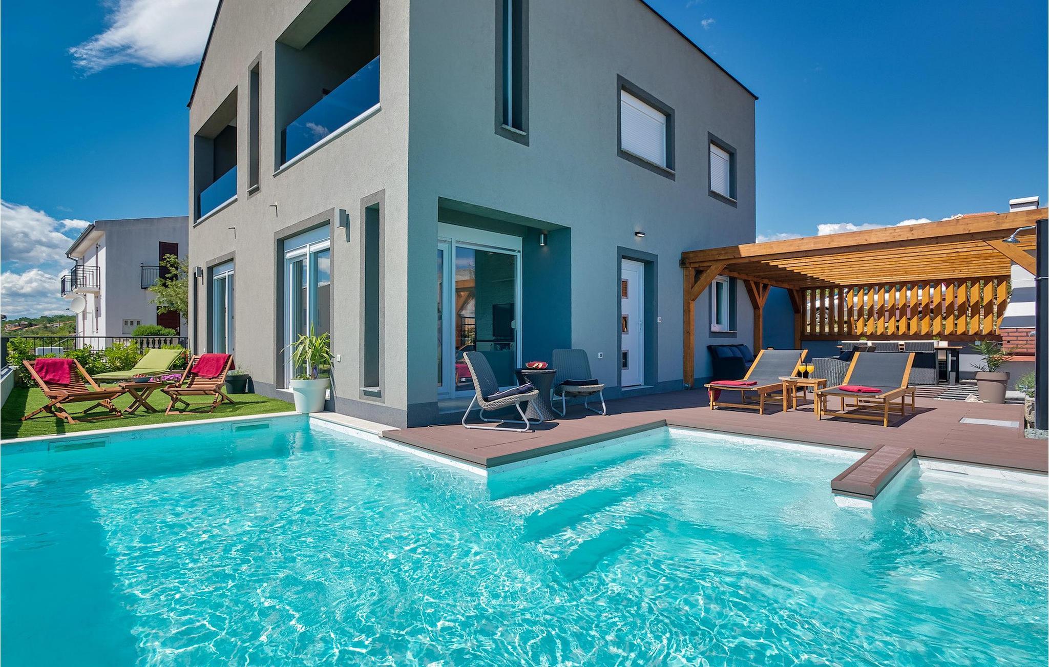 Indrettet med stil, tilbyder en fantastisk havudsigt, en privat pool, og beliggende kun 200 m væk fra den nærmeste strand, vil Villa Amy opfylde alle dine behov for en ultimativ ferie! Beliggende på et sted, der muliggør fritid og afslapning, men også et stort udvalg af aktiviteter såsom vandreture, rafting og bungeejump, vil denne ejendom ikke undlade at imponere dig. Det repræsenterer en ideel indkvartering for op til 10 gæster i 4 moderne soveværelser, der alle har et luksuriøst ensuite badeværelse. To soveværelser, der er placeret på øverste etage, er ideelt velegnet til familier, da de består af en dobbeltseng og trapper op til galleriet med to opdelte enkeltsenge. Disse to værelser har også balkoner, hvor du kan slappe af og nyde den vidunderlige udsigt over Novigrad-bugten med en kop kaffe om morgenen. Yderligere to soveværelser er placeret i den lyse stueetage, hvor det primære fællesrum er opdelt i køkkenet og opholds- og spiseafdelingen. De store glasflader muliggør masser af naturligt lys og fantastisk panoramaudsigt fra hvert hjørne af rummet. Køkkenet er fuldt udstyret og giver alt hvad du kunne få brug for under dit ophold. Den anden spiseplads ligger på den overdækkede terrasse, hvor du kan tilberede dine yndlingsmåltider på kulgrillen. Terrassen er et fantastisk sted at slappe af, da den byder på et loungeområde, hyggelige liggestole og selvfølgelig - den private pool. Simpelthen det perfekte sted at nyde alle fordelene ved denne villa fuldt ud. Villaen er beliggende i et fredeligt område, omkring 2 km fra den nærmeste by, Maslenica. Dette sted er takket være den specifikke geografiske placering ret usædvanlig sammenlignet med de fleste steder på Adriaterhavskysten; du kan få adgang til havet ved at tage en kort gåtur omkring 200 m fra villaen, ved at tage mod nord på kysten ved foden af Velebit-bjerget eller sydpå til Zadar-omgivelserne. Zrmanja-flodens kløft, hvor du også kan prøve rafting, ligger kun få kilometer fra villaen. Regionens mest populære bungeejump-sted ligger på Maslenica-broen. Bjergenes nærhed byder på mange muligheder for vandrere. Hvis du vil udforske det omkringliggende, anbefaler vi at besøge den historiske by Nin og regionens hovedstad, Zadar, begge ca. 40 km væk. Zadar-regionen har 3 naturparker - Telašcica, det nordlige Velebit og Vransko-søen samt 5 nationalparker - Paklenica, Plitvice, Kornati, Krka og Velebit, der rangerer Zadar og dens omgivelser på toppen af det kroatiske turisttilbud.