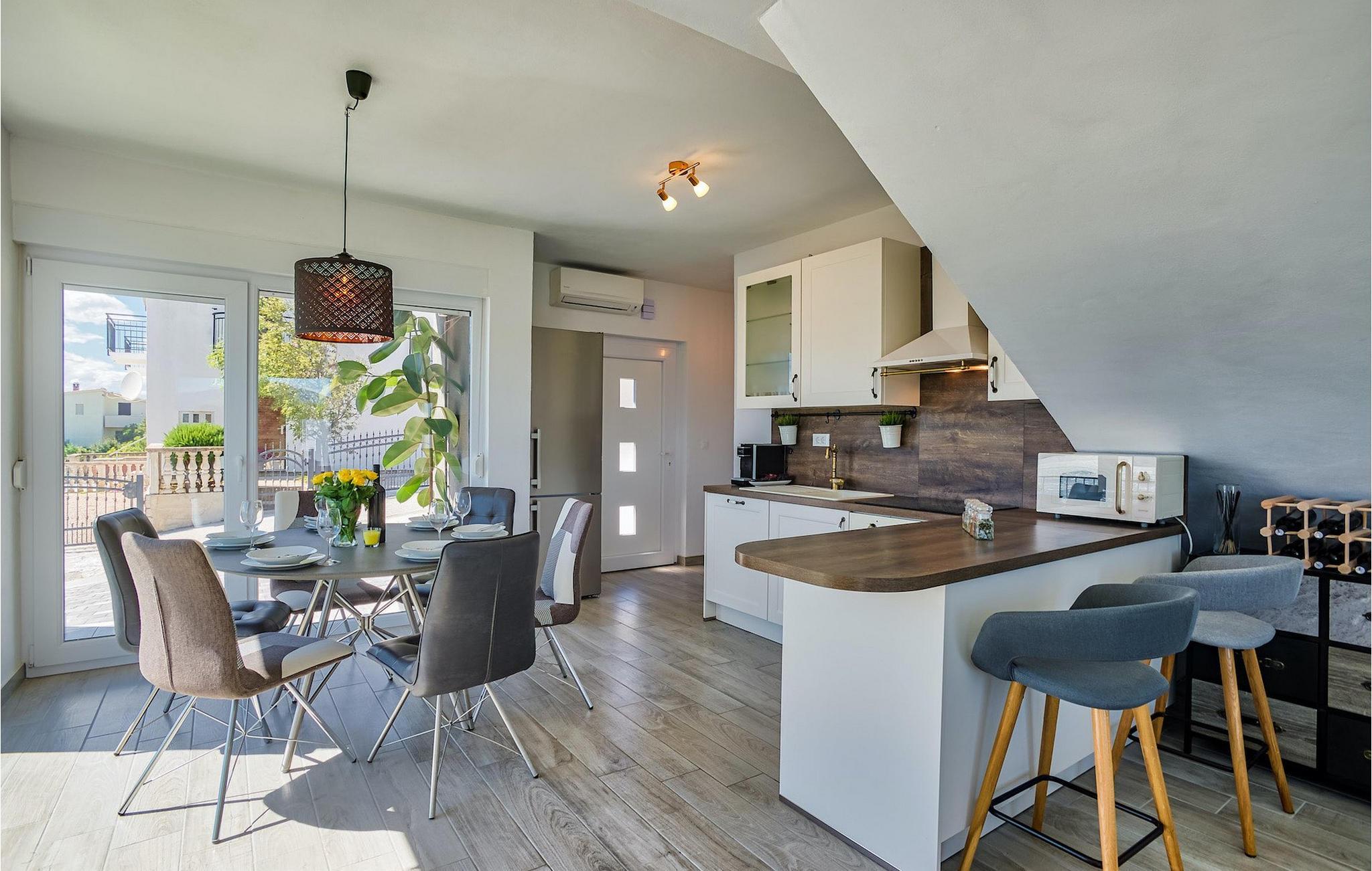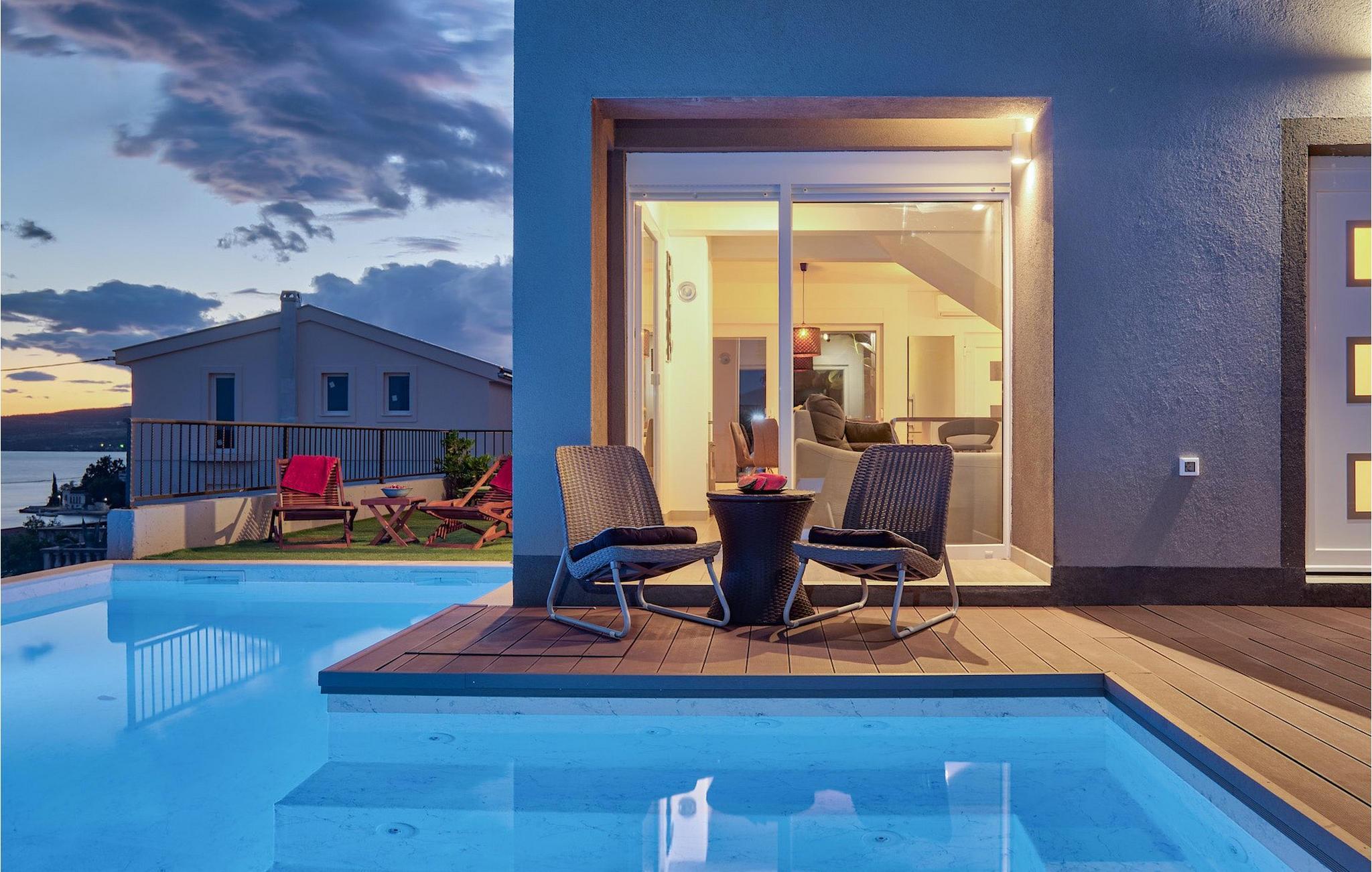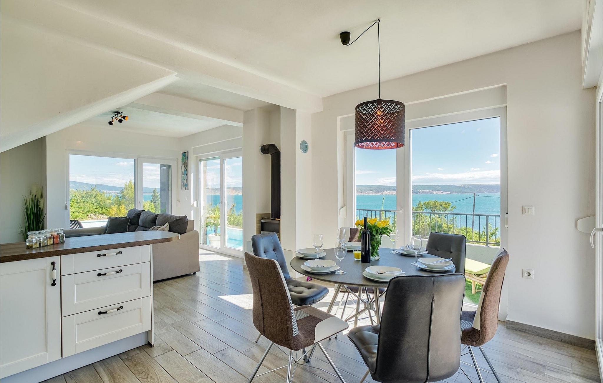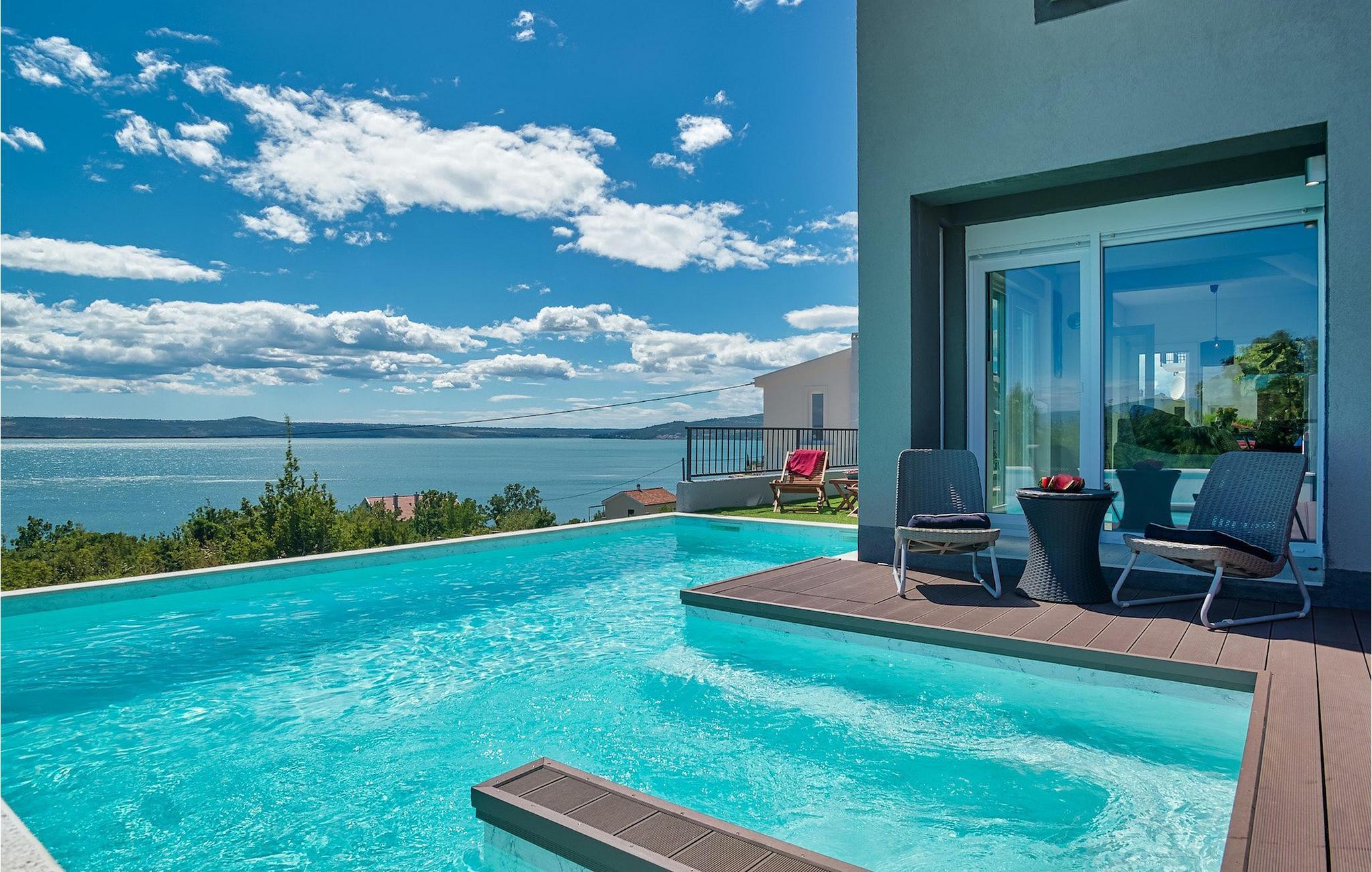 Indrettet med stil, tilbyder en fantastisk havudsigt, en privat pool, og beliggende kun 200 m væk fra den nærmeste strand, vil Villa Amy opfylde alle dine behov for en ultimativ ferie! Beliggende på et sted, der muliggør fritid og afslapning, men også et stort udvalg af aktiviteter såsom vandreture, rafting og bungeejump, vil denne ejendom ikke undlade at imponere dig. Det repræsenterer en ideel indkvartering for op til 10 gæster i 4 moderne soveværelser, der alle har et luksuriøst ensuite badeværelse. To soveværelser, der er placeret på øverste etage, er ideelt velegnet til familier, da de består af en dobbeltseng og trapper op til galleriet med to opdelte enkeltsenge. Disse to værelser har også balkoner, hvor du kan slappe af og nyde den vidunderlige udsigt over Novigrad-bugten med en kop kaffe om morgenen. Yderligere to soveværelser er placeret i den lyse stueetage, hvor det primære fællesrum er opdelt i køkkenet og opholds- og spiseafdelingen. De store glasflader muliggør masser af naturligt lys og fantastisk panoramaudsigt fra hvert hjørne af rummet. Køkkenet er fuldt udstyret og giver alt hvad du kunne få brug for under dit ophold. Den anden spiseplads ligger på den overdækkede terrasse, hvor du kan tilberede dine yndlingsmåltider på kulgrillen. Terrassen er et fantastisk sted at slappe af, da den byder på et loungeområde, hyggelige liggestole og selvfølgelig - den private pool. Simpelthen det perfekte sted at nyde alle fordelene ved denne villa fuldt ud. Villaen er beliggende i et fredeligt område, omkring 2 km fra den nærmeste by, Maslenica. Dette sted er takket være den specifikke geografiske placering ret usædvanlig sammenlignet med de fleste steder på Adriaterhavskysten; du kan få adgang til havet ved at tage en kort gåtur omkring 200 m fra villaen, ved at tage mod nord på kysten ved foden af Velebit-bjerget eller sydpå til Zadar-omgivelserne. Zrmanja-flodens kløft, hvor du også kan prøve rafting, ligger kun få kilometer fra villaen. Regionens mest populære bungeejump-sted ligger på Maslenica-broen. Bjergenes nærhed byder på mange muligheder for vandrere. Hvis du vil udforske det omkringliggende, anbefaler vi at besøge den historiske by Nin og regionens hovedstad, Zadar, begge ca. 40 km væk. Zadar-regionen har 3 naturparker - Telašcica, det nordlige Velebit og Vransko-søen samt 5 nationalparker - Paklenica, Plitvice, Kornati, Krka og Velebit, der rangerer Zadar og dens omgivelser på toppen af det kroatiske turisttilbud.