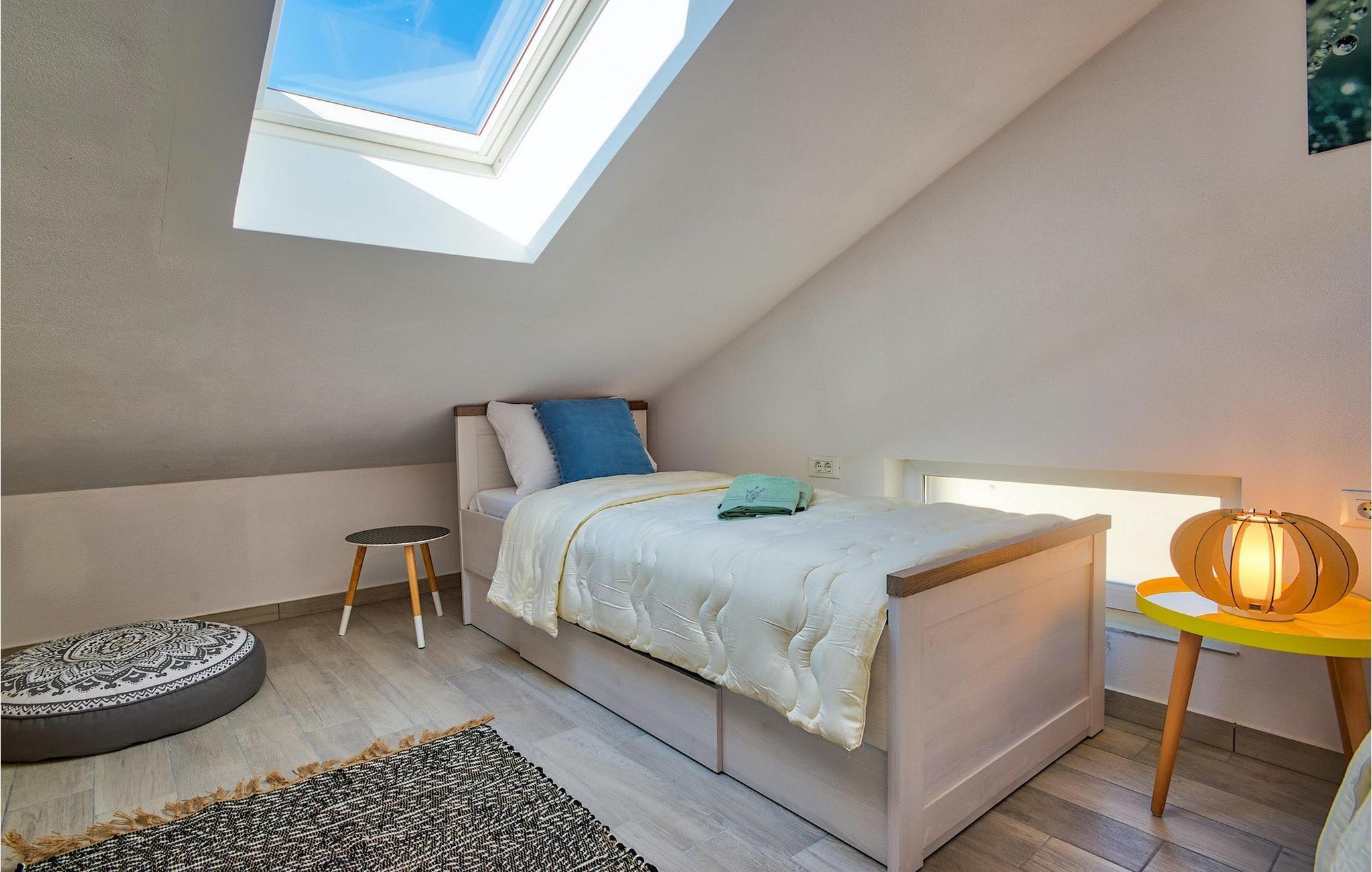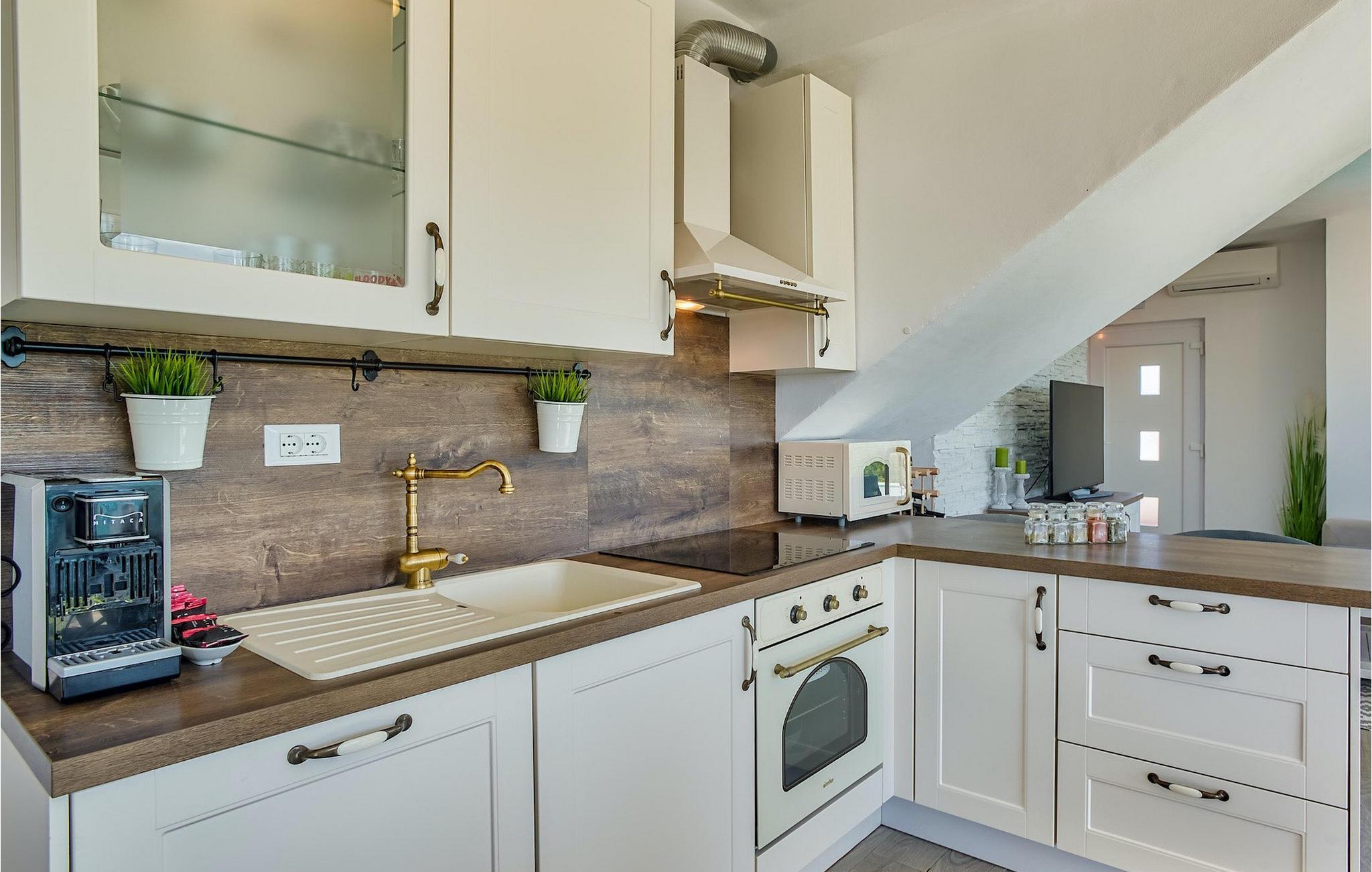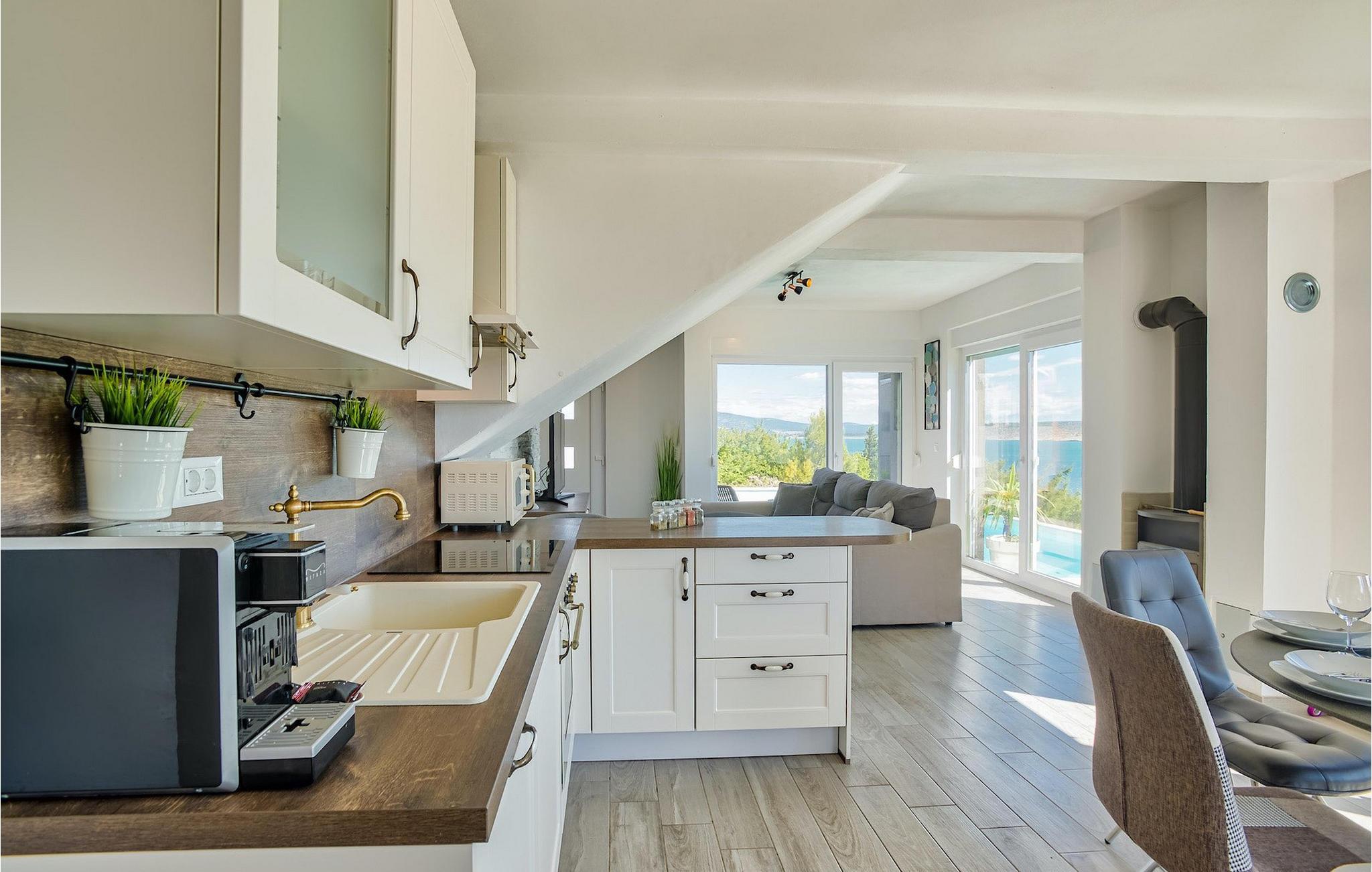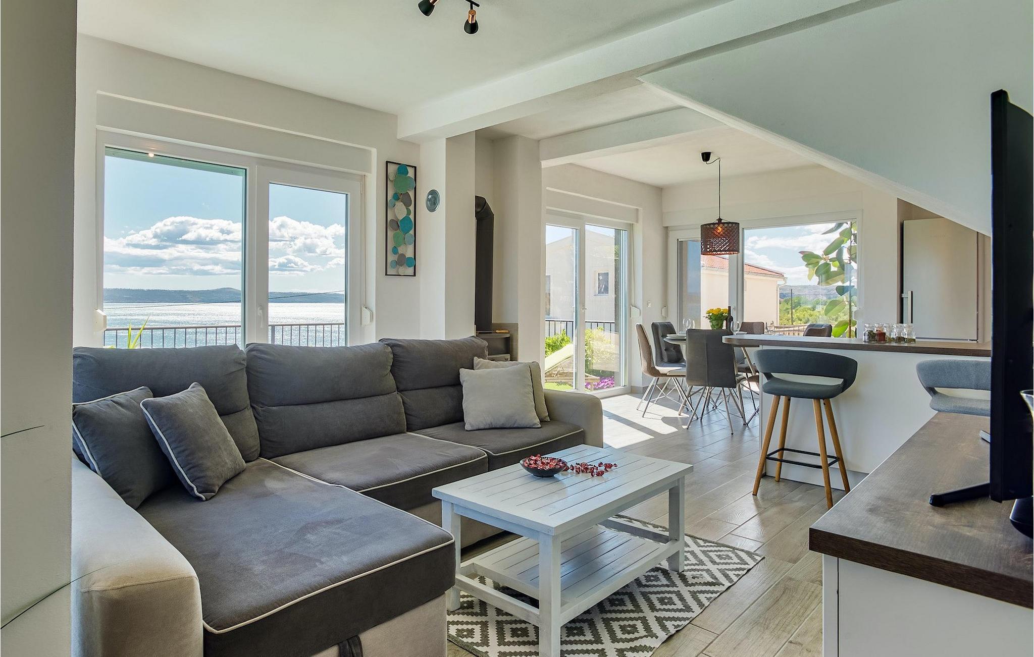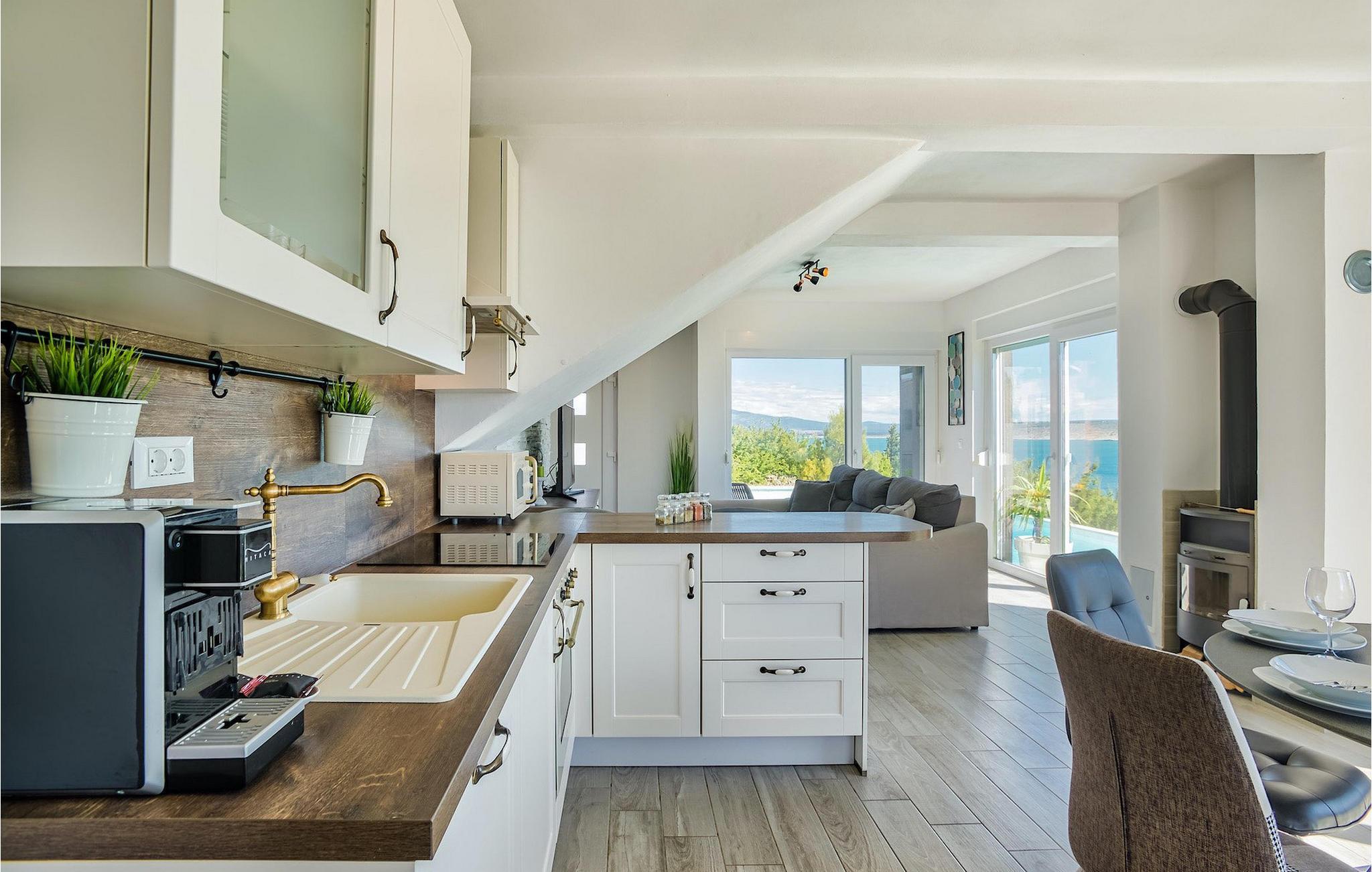 Indrettet med stil, tilbyder en fantastisk havudsigt, en privat pool, og beliggende kun 200 m væk fra den nærmeste strand, vil Villa Amy opfylde alle dine behov for en ultimativ ferie! Beliggende på et sted, der muliggør fritid og afslapning, men også et stort udvalg af aktiviteter såsom vandreture, rafting og bungeejump, vil denne ejendom ikke undlade at imponere dig. Det repræsenterer en ideel indkvartering for op til 10 gæster i 4 moderne soveværelser, der alle har et luksuriøst ensuite badeværelse. To soveværelser, der er placeret på øverste etage, er ideelt velegnet til familier, da de består af en dobbeltseng og trapper op til galleriet med to opdelte enkeltsenge. Disse to værelser har også balkoner, hvor du kan slappe af og nyde den vidunderlige udsigt over Novigrad-bugten med en kop kaffe om morgenen. Yderligere to soveværelser er placeret i den lyse stueetage, hvor det primære fællesrum er opdelt i køkkenet og opholds- og spiseafdelingen. De store glasflader muliggør masser af naturligt lys og fantastisk panoramaudsigt fra hvert hjørne af rummet. Køkkenet er fuldt udstyret og giver alt hvad du kunne få brug for under dit ophold. Den anden spiseplads ligger på den overdækkede terrasse, hvor du kan tilberede dine yndlingsmåltider på kulgrillen. Terrassen er et fantastisk sted at slappe af, da den byder på et loungeområde, hyggelige liggestole og selvfølgelig - den private pool. Simpelthen det perfekte sted at nyde alle fordelene ved denne villa fuldt ud. Villaen er beliggende i et fredeligt område, omkring 2 km fra den nærmeste by, Maslenica. Dette sted er takket være den specifikke geografiske placering ret usædvanlig sammenlignet med de fleste steder på Adriaterhavskysten; du kan få adgang til havet ved at tage en kort gåtur omkring 200 m fra villaen, ved at tage mod nord på kysten ved foden af Velebit-bjerget eller sydpå til Zadar-omgivelserne. Zrmanja-flodens kløft, hvor du også kan prøve rafting, ligger kun få kilometer fra villaen. Regionens mest populære bungeejump-sted ligger på Maslenica-broen. Bjergenes nærhed byder på mange muligheder for vandrere. Hvis du vil udforske det omkringliggende, anbefaler vi at besøge den historiske by Nin og regionens hovedstad, Zadar, begge ca. 40 km væk. Zadar-regionen har 3 naturparker - Telašcica, det nordlige Velebit og Vransko-søen samt 5 nationalparker - Paklenica, Plitvice, Kornati, Krka og Velebit, der rangerer Zadar og dens omgivelser på toppen af det kroatiske turisttilbud.