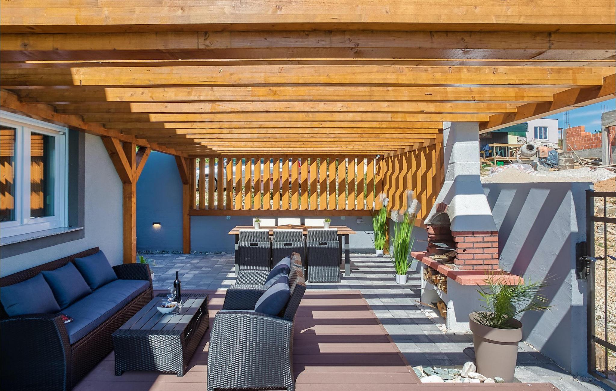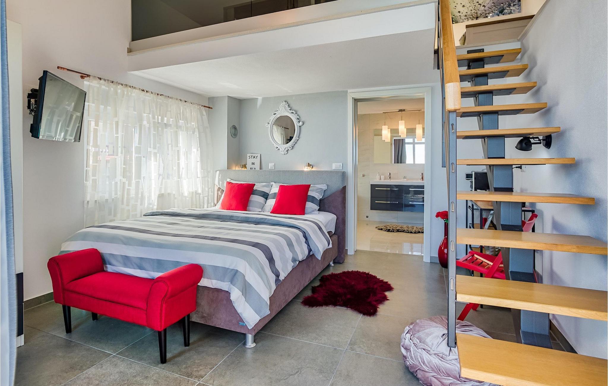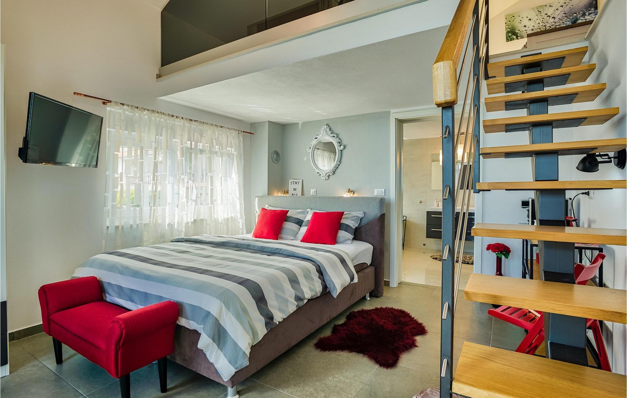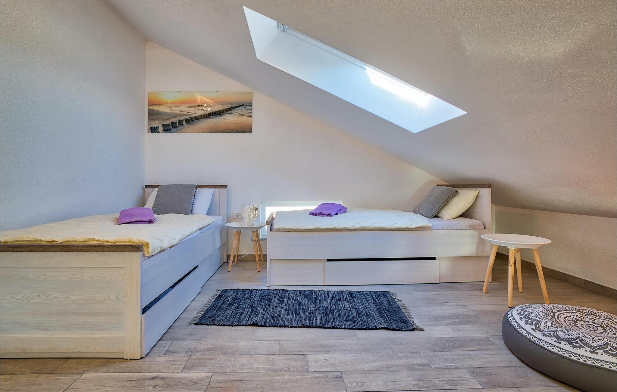 Indrettet med stil, tilbyder en fantastisk havudsigt, en privat pool, og beliggende kun 200 m væk fra den nærmeste strand, vil Villa Amy opfylde alle dine behov for en ultimativ ferie! Beliggende på et sted, der muliggør fritid og afslapning, men også et stort udvalg af aktiviteter såsom vandreture, rafting og bungeejump, vil denne ejendom ikke undlade at imponere dig. Det repræsenterer en ideel indkvartering for op til 10 gæster i 4 moderne soveværelser, der alle har et luksuriøst ensuite badeværelse. To soveværelser, der er placeret på øverste etage, er ideelt velegnet til familier, da de består af en dobbeltseng og trapper op til galleriet med to opdelte enkeltsenge. Disse to værelser har også balkoner, hvor du kan slappe af og nyde den vidunderlige udsigt over Novigrad-bugten med en kop kaffe om morgenen. Yderligere to soveværelser er placeret i den lyse stueetage, hvor det primære fællesrum er opdelt i køkkenet og opholds- og spiseafdelingen. De store glasflader muliggør masser af naturligt lys og fantastisk panoramaudsigt fra hvert hjørne af rummet. Køkkenet er fuldt udstyret og giver alt hvad du kunne få brug for under dit ophold. Den anden spiseplads ligger på den overdækkede terrasse, hvor du kan tilberede dine yndlingsmåltider på kulgrillen. Terrassen er et fantastisk sted at slappe af, da den byder på et loungeområde, hyggelige liggestole og selvfølgelig - den private pool. Simpelthen det perfekte sted at nyde alle fordelene ved denne villa fuldt ud. Villaen er beliggende i et fredeligt område, omkring 2 km fra den nærmeste by, Maslenica. Dette sted er takket være den specifikke geografiske placering ret usædvanlig sammenlignet med de fleste steder på Adriaterhavskysten; du kan få adgang til havet ved at tage en kort gåtur omkring 200 m fra villaen, ved at tage mod nord på kysten ved foden af Velebit-bjerget eller sydpå til Zadar-omgivelserne. Zrmanja-flodens kløft, hvor du også kan prøve rafting, ligger kun få kilometer fra villaen. Regionens mest populære bungeejump-sted ligger på Maslenica-broen. Bjergenes nærhed byder på mange muligheder for vandrere. Hvis du vil udforske det omkringliggende, anbefaler vi at besøge den historiske by Nin og regionens hovedstad, Zadar, begge ca. 40 km væk. Zadar-regionen har 3 naturparker - Telašcica, det nordlige Velebit og Vransko-søen samt 5 nationalparker - Paklenica, Plitvice, Kornati, Krka og Velebit, der rangerer Zadar og dens omgivelser på toppen af det kroatiske turisttilbud.