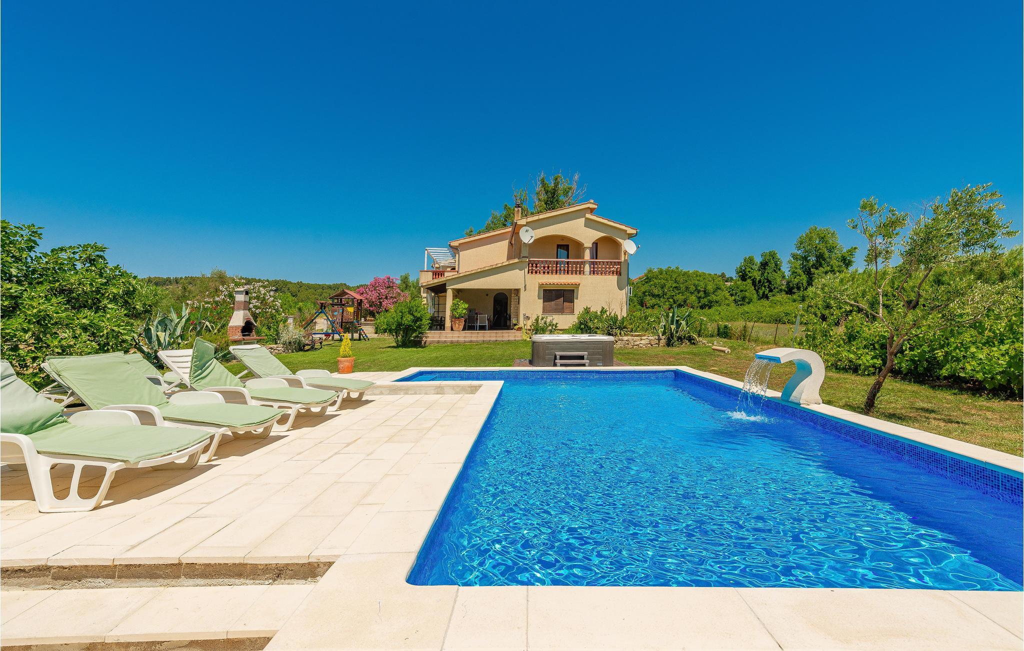 Denne feriebolig består af en rummelig ferielejlighed i stueplan samt tre små ferielejligheder på øverste etage. Den luftige, lyse og smukke indretning, giver de perfekte rammer til en rigtig afslappet ferie. Husets pool er oplagt til de lange varme sommerdage, svøm, leg og pjask. På terrassen er der god plads til hyggelige grillfester, mens de små i familien kan lege i haven. Besøg den historiske by Zadar med en spændende gammel bydel med mange taverner og restauranter. Naturelskere vil blive henrykte over den skønne nationalpark Paklenica