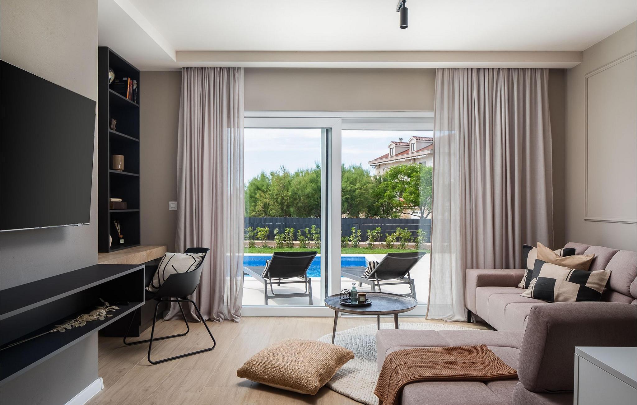 Den moderne Villa Eleni byder jer velkommen til en privilegeret beliggenhed lige ved havet og forkæler jer med ro og adskillige ekstrafunktioner, som I kan nyde under en afslappende ferie med venner eller familie. Tilbered kulinariske lækkerier, mens andre hygger sig på PlayStation, ved darttavlen eller ved bordfodboldbordet, og find sammen til stimulerende samtaler over et glas vin i den hyggelige stue.