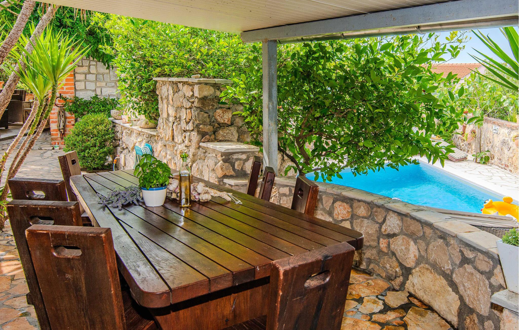 Behageligt feriehus i en have tilplantet med middelhavsplanter. i bor i Maslenica. Huset består af to separate boligenheder og har kun udvendige trapper. I haven står en seng med baldakin og en havepavillon parate til afslapning. Poolen giver afkøling i de varme sommermåneder. Ejeren bor i et lille hus på grunden, men er adskilt fra jer af en mur og en separat indgang, så jeres privatliv ikke forstyrres. Besøg den nærliggende nationalpark Paklenica, eller vov et elastikspring fra broen i Maslenica.