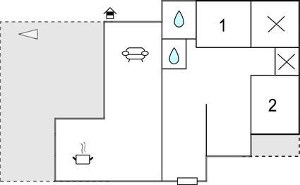 Opholdsstue/køkken - 1 Soveplads. (Sofa, madras eller lignende).