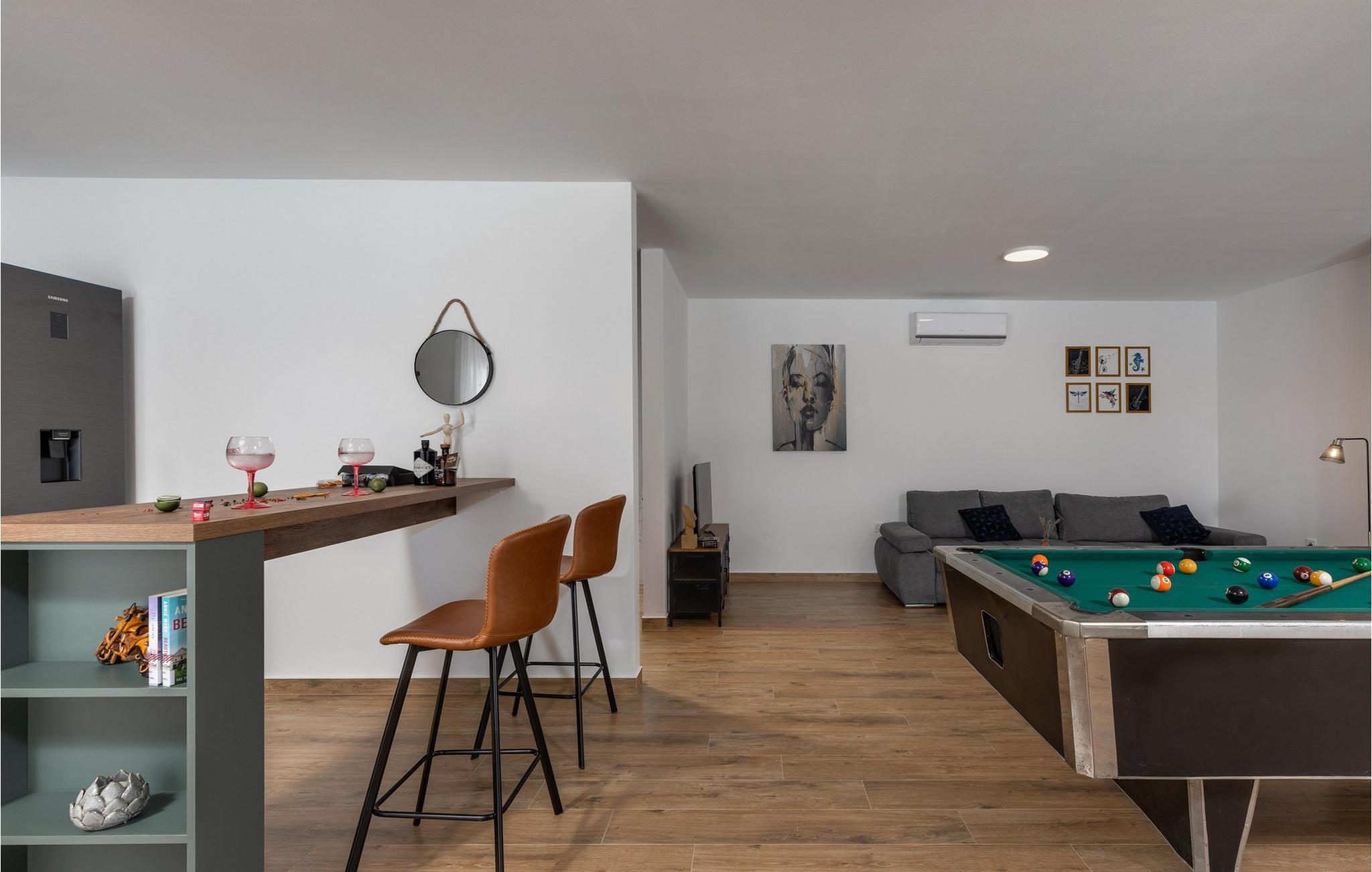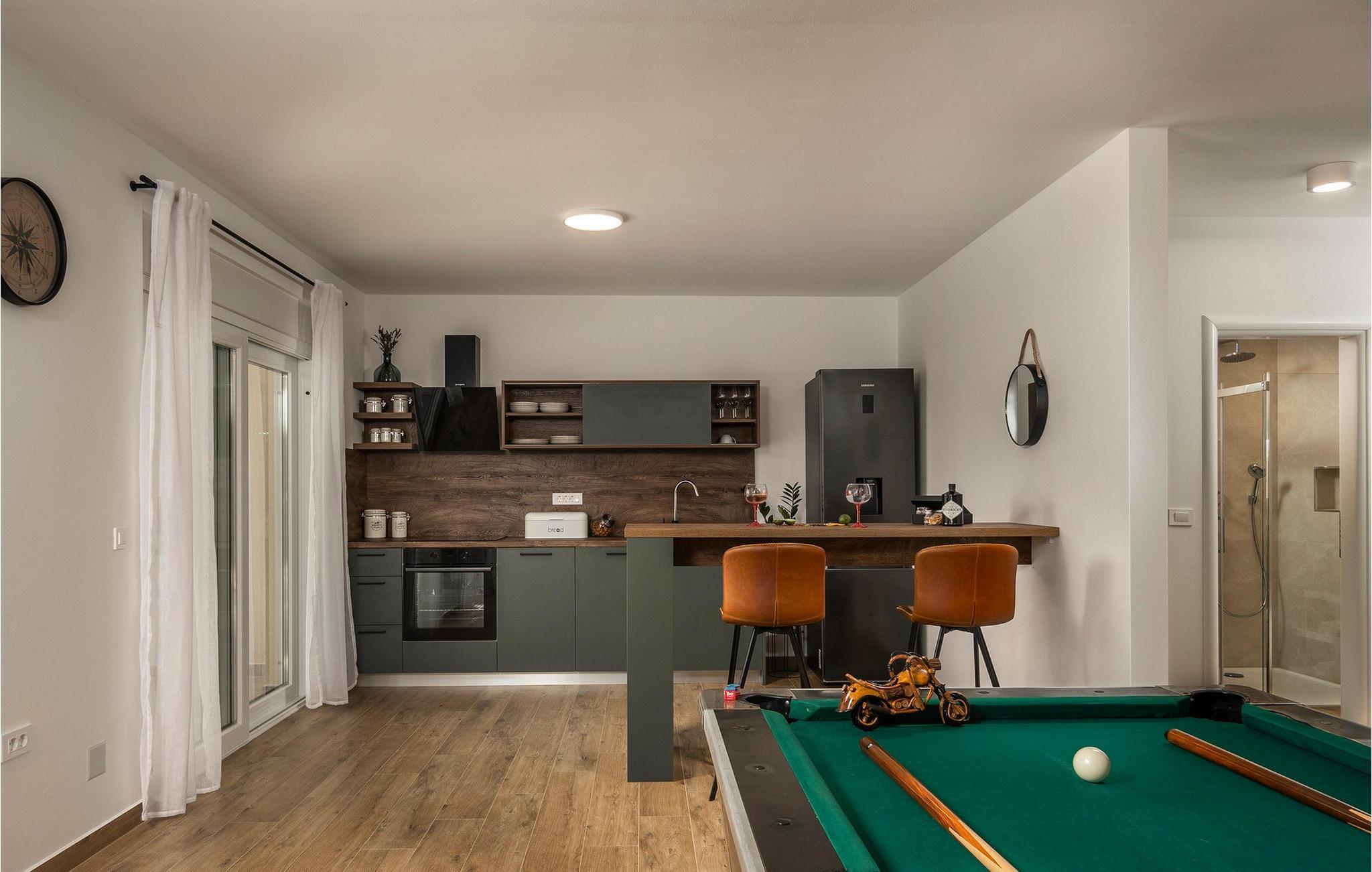 Villa Deep Green har en varm, moderne atmosfære, hvor naturlige materialer og stilfulde detaljer skaber et harmonisk opholdsmiljø. Nyd hyggelige timer omkring poolbordet eller slap af i den hyggelige opholdsstue til film- og spilleaftener. Del måltider ved det rummelige spisebord, og brug det åbne køkken til at afprøve nye opskrifter sammen. Find fred og ro i de forskellige siddeområder, hvor I kan læse en god bog eller lytte til en interessant podcast.