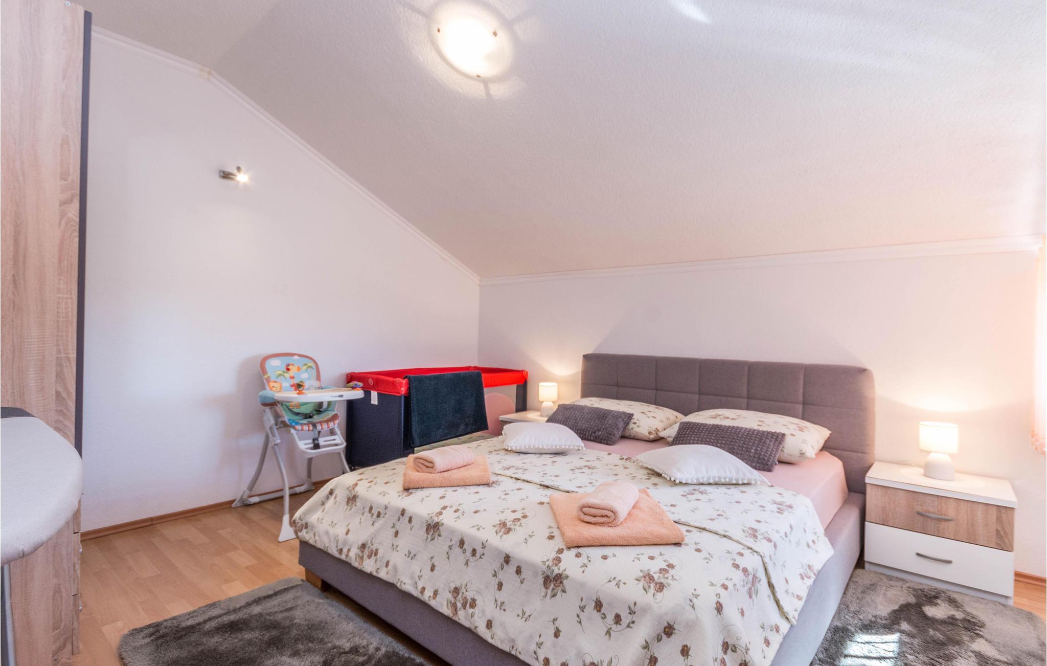 Dette rummelige feriehus med pool ligger i byen Miranje på en stor privat grund. Huset rummer to separate ferielejligheder, der er tilgængelige via en udendørs trappe. På den fælles grund er der en pool, havemøbler, samt flere former for legeredskaber. Ejer bor også på grunden, i et lille helårshus. Nærmeste by er Biograd, med hele to marinaer, som er meget populære blandt bådfolket. Nautrligvis kan I også besøge Zadar med sin gamle bydel og utallige moderne bygninger og former for kunst og naturparken Vranasøen, er der udnævnt til fuglebeskyttelsesområde.