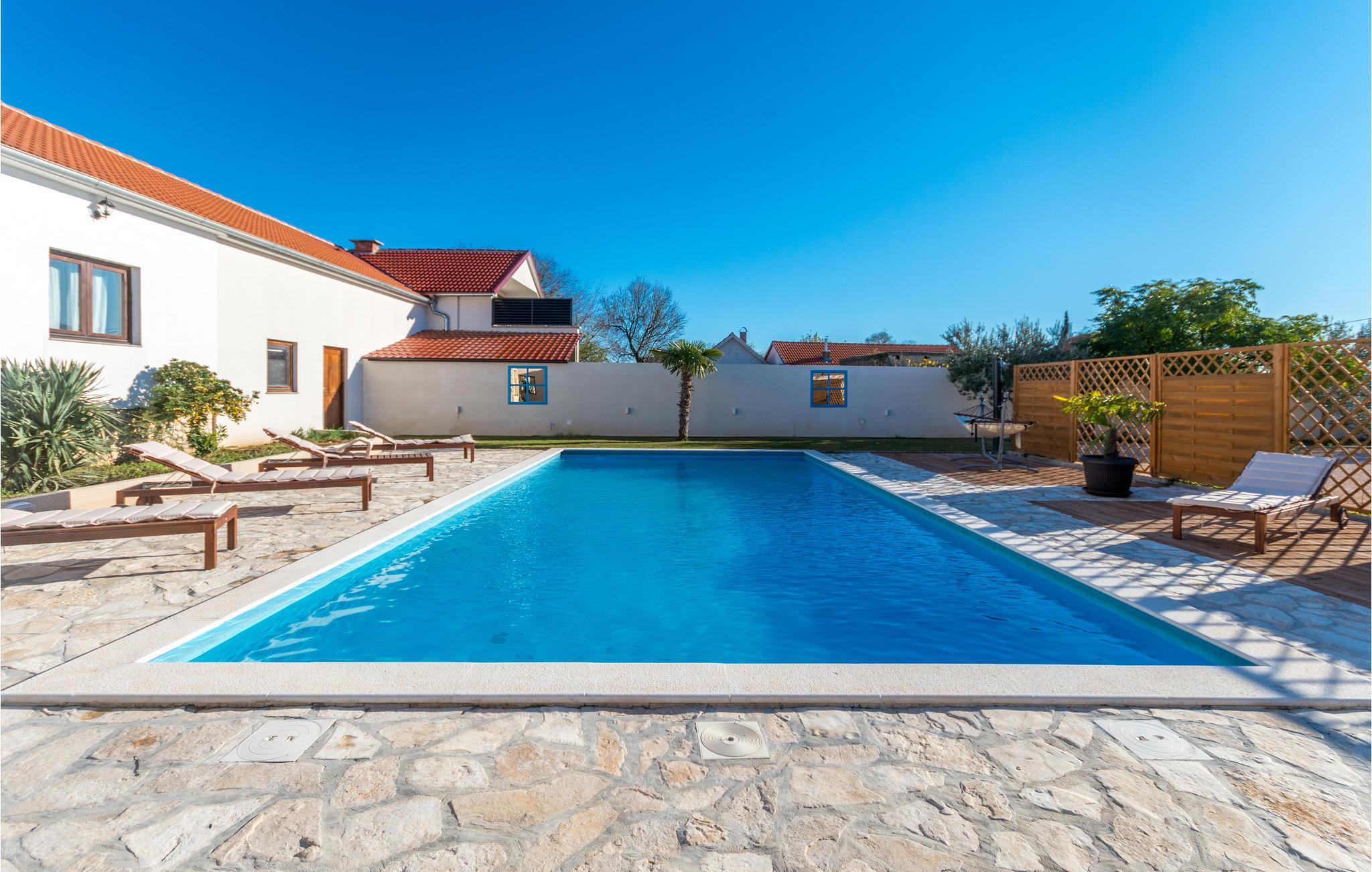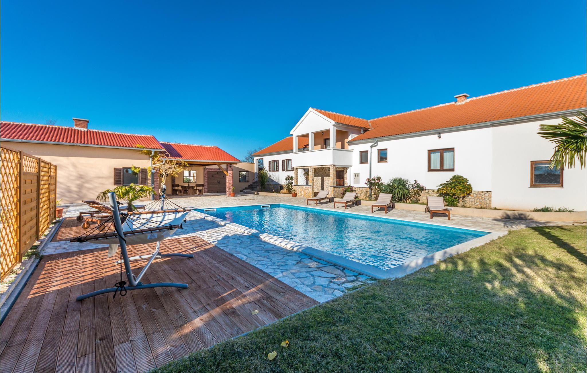 Beliggende ikke langt fra kysten omkring Zadar finder I denne indbydende ejendom med plads til jer og jeres venner eller familie. Interiøret kombinerer harmonisk værelser og fællesarealer, som der er masser af. Spil et slag bordtennis eller billard i det store aktivitetsområde og plask rundt i poolen, mens børnene leger på trampolinen.