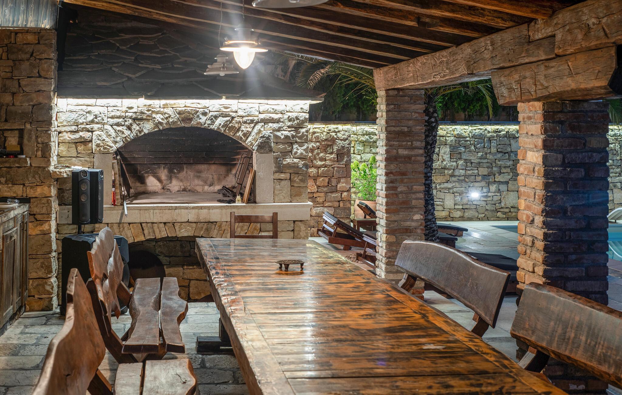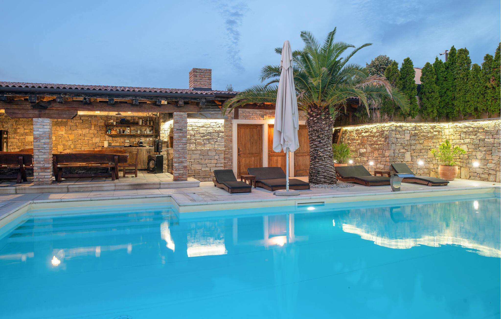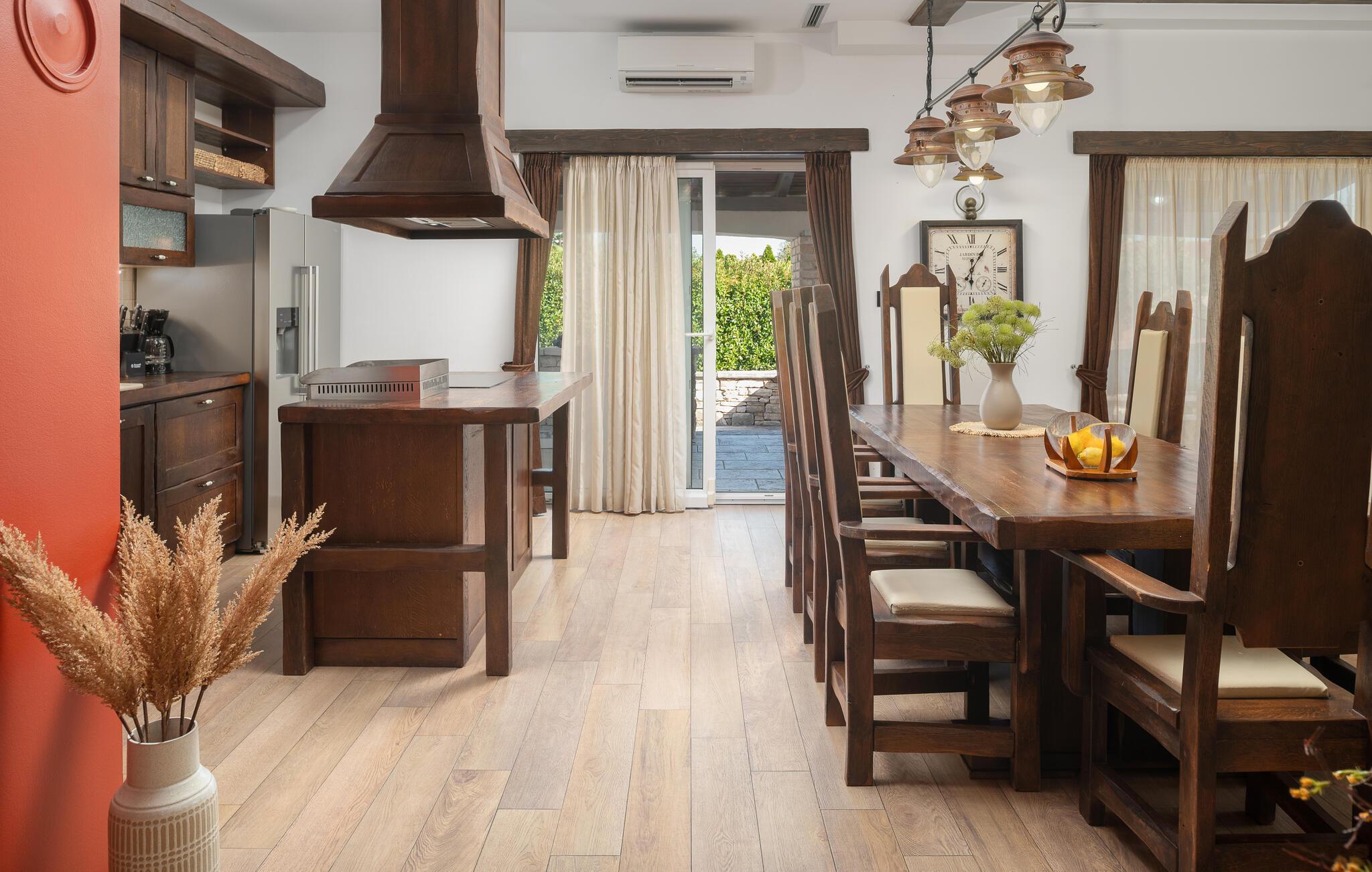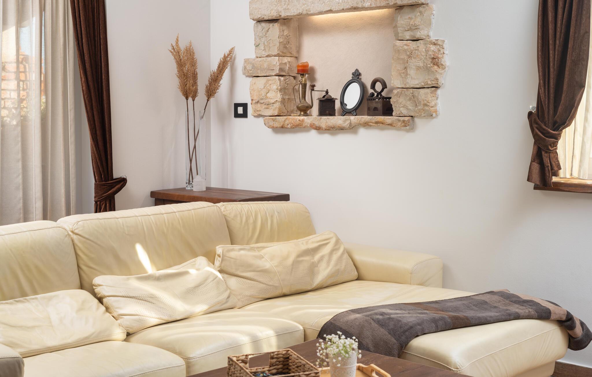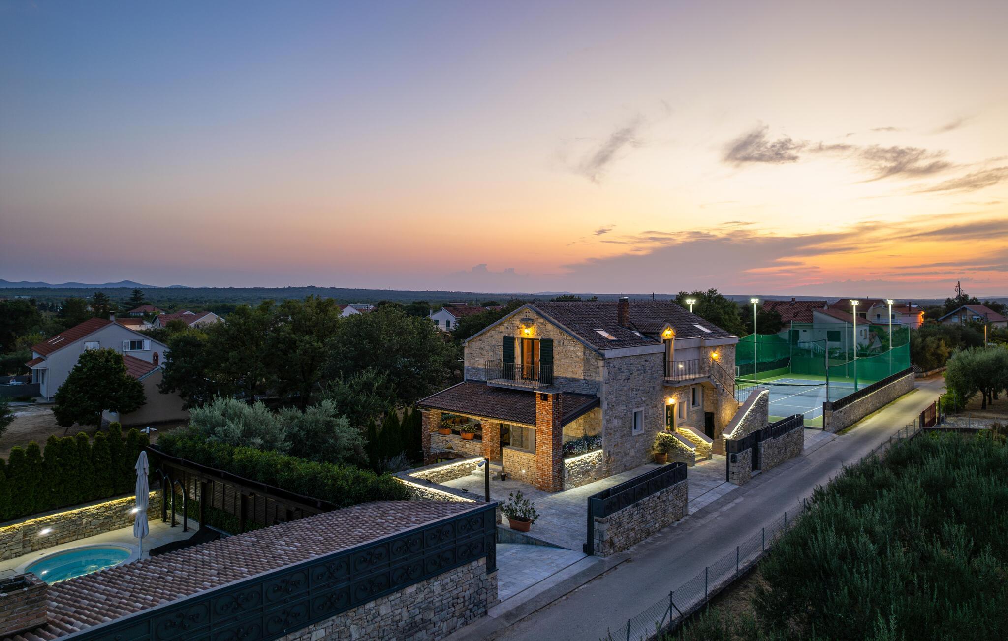 Villa Culina er en smuk villa, som er perfekt til store grupper: Villaen kan rumme op til 14 personer i tre lejligheder. Placeringen af ??villaen er perfekt for dem, der ønsker at udforske byen Zadar. Byen Zadar ligger kun en kort køretur fra villaen. Der er en smuk, stor pool udenfor, hvor I kan forfriske jer eller svømme. Det indendørs område byder på nok sjov, så ingen keder sig - fuldt udstyret fitnesscenter, hvor I kan forbrænde kalorier med lækre Konoba-specialiteter. I Konoba er der en brændeovn til rådighed, som er ideel til hjemmebagt brød, men også til den lækre Peka eller tilberedning af forskellige kødretter. Villaen har i alt tre lejligheder. En treværelses lejlighed ligger i stueetagen. Yderligere to lejligheder er på første sal - den ene har to soveværelser og den anden lejlighed har et soveværelse. Villaen har Wi-Fi, har aircondition og byder på alt til en perfekt ferie med familien.