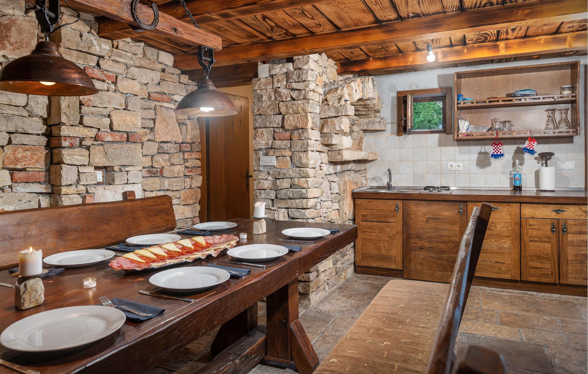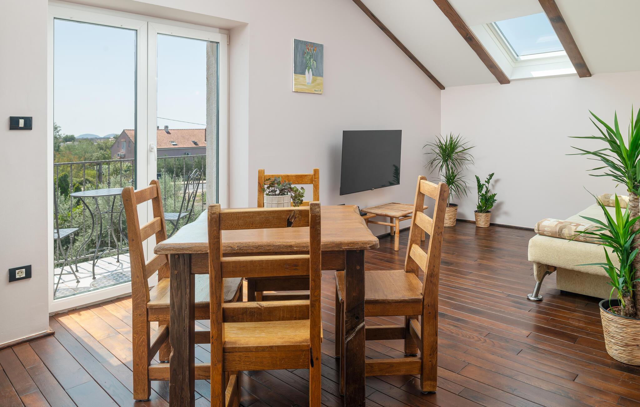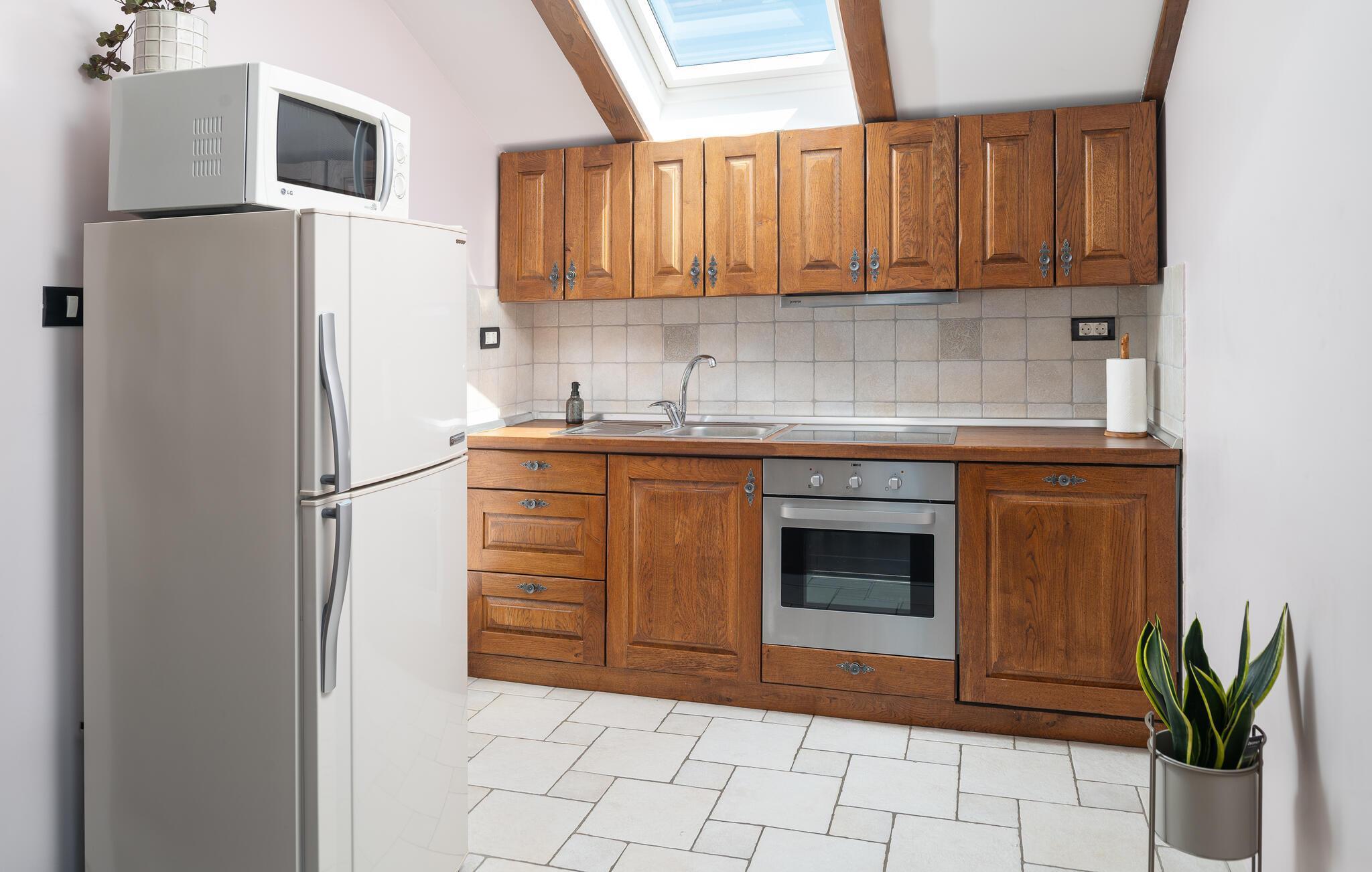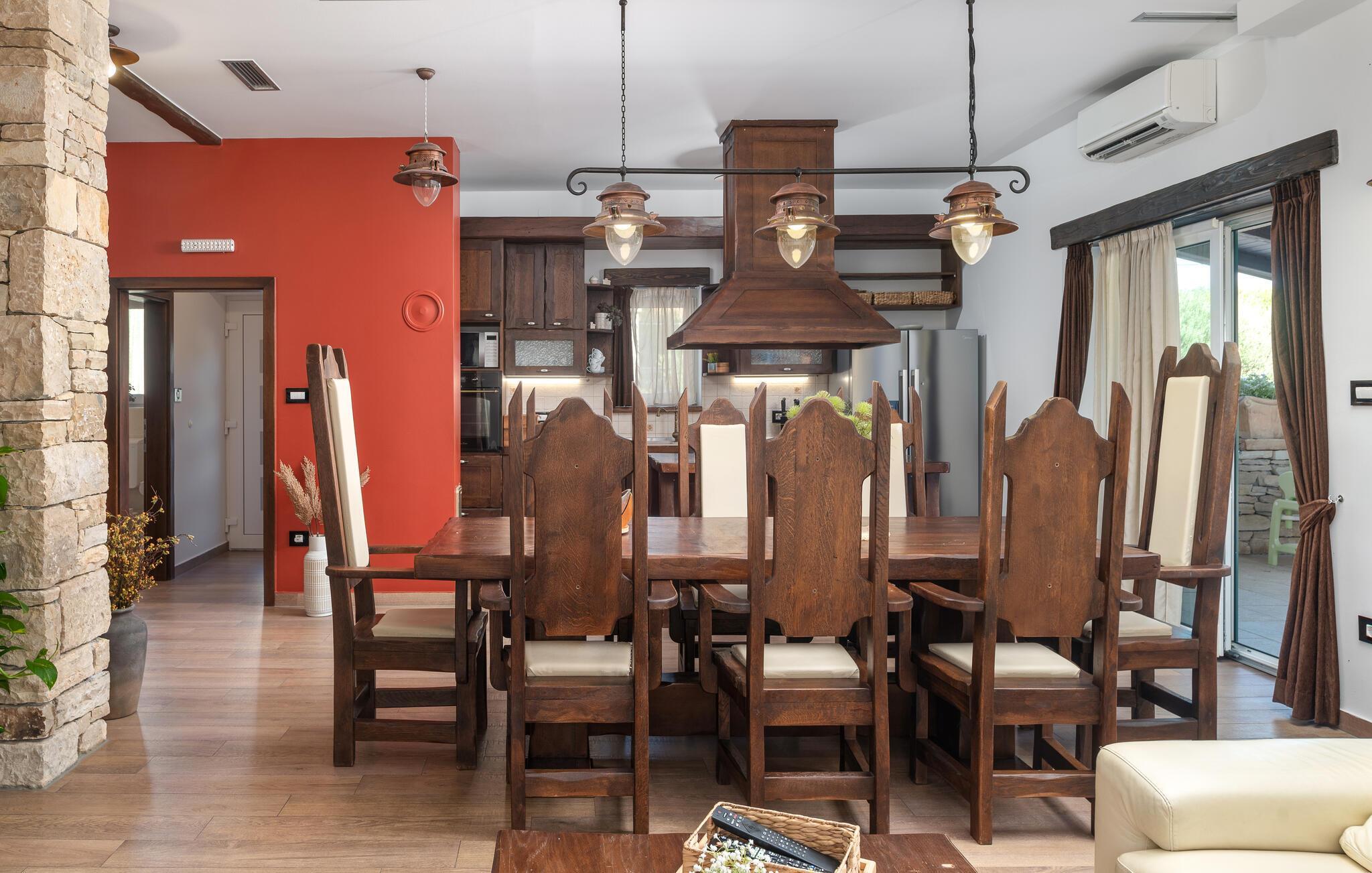 Villa Culina er en smuk villa, som er perfekt til store grupper: Villaen kan rumme op til 14 personer i tre lejligheder. Placeringen af ??villaen er perfekt for dem, der ønsker at udforske byen Zadar. Byen Zadar ligger kun en kort køretur fra villaen. Der er en smuk, stor pool udenfor, hvor I kan forfriske jer eller svømme. Det indendørs område byder på nok sjov, så ingen keder sig - fuldt udstyret fitnesscenter, hvor I kan forbrænde kalorier med lækre Konoba-specialiteter. I Konoba er der en brændeovn til rådighed, som er ideel til hjemmebagt brød, men også til den lækre Peka eller tilberedning af forskellige kødretter. Villaen har i alt tre lejligheder. En treværelses lejlighed ligger i stueetagen. Yderligere to lejligheder er på første sal - den ene har to soveværelser og den anden lejlighed har et soveværelse. Villaen har Wi-Fi, har aircondition og byder på alt til en perfekt ferie med familien.