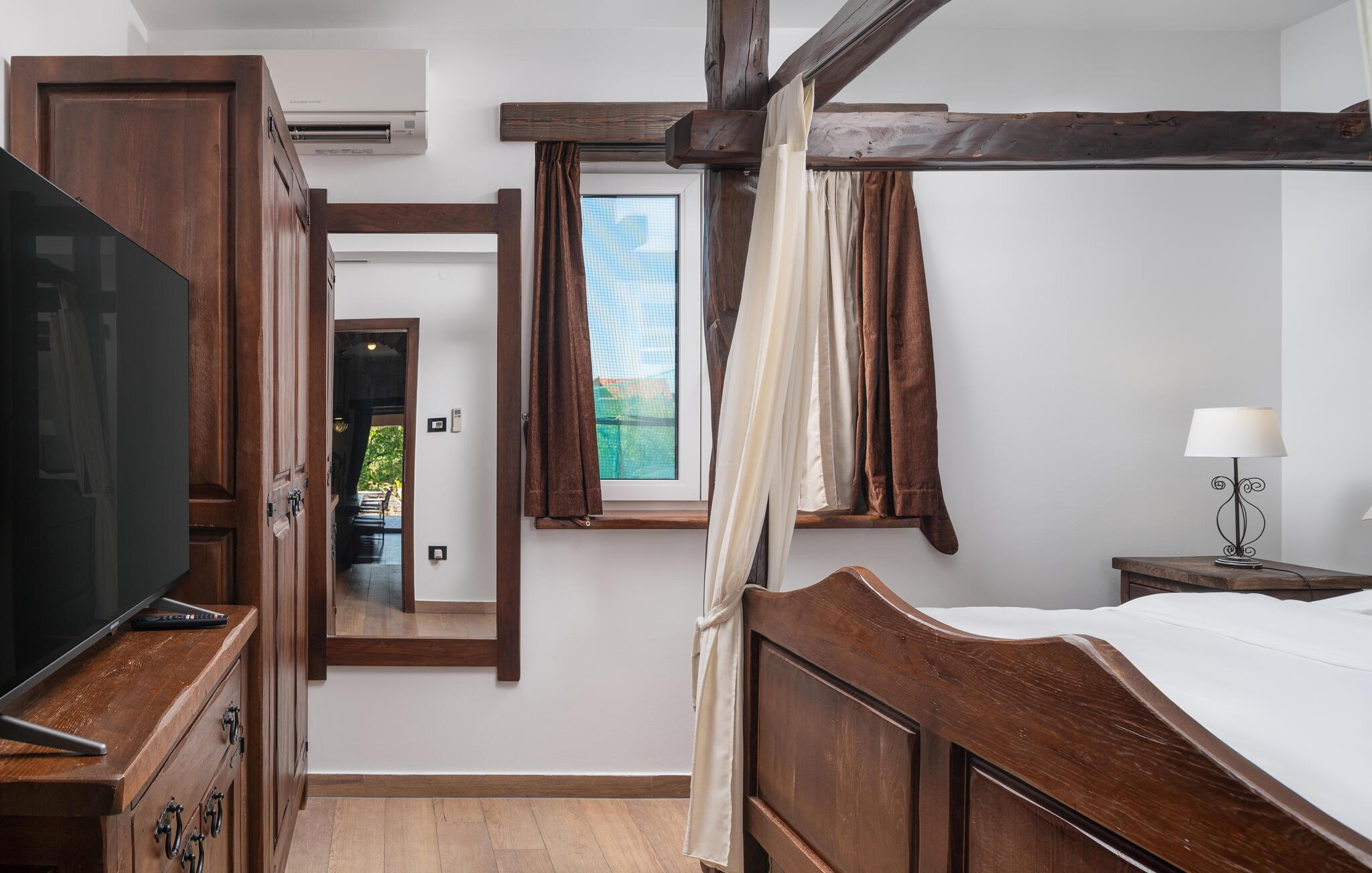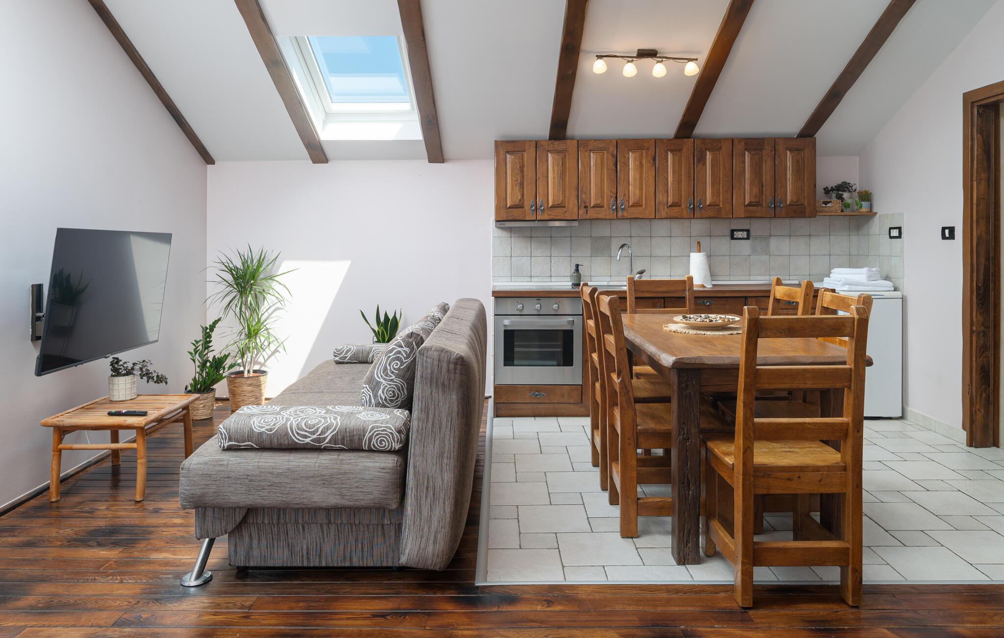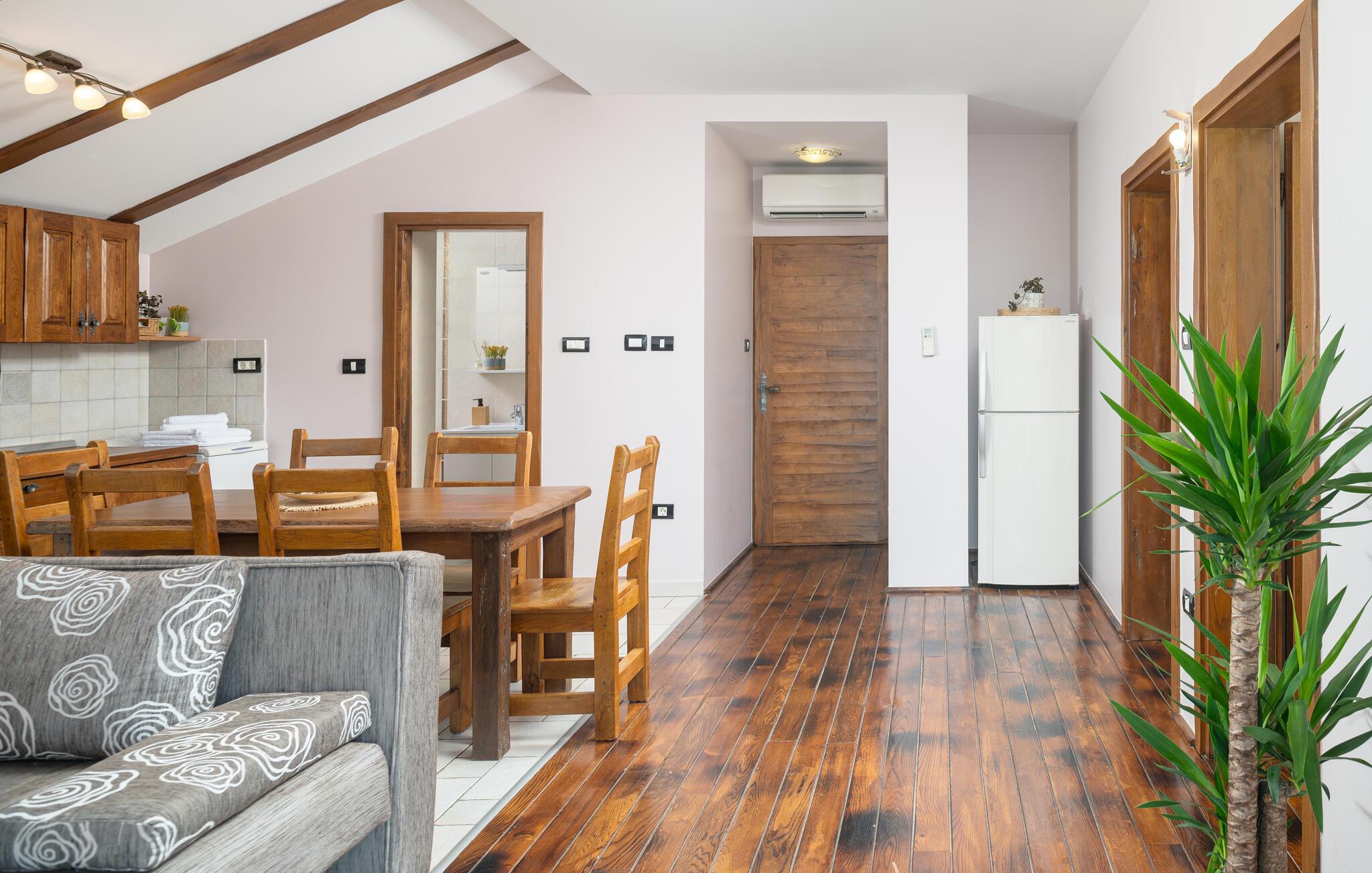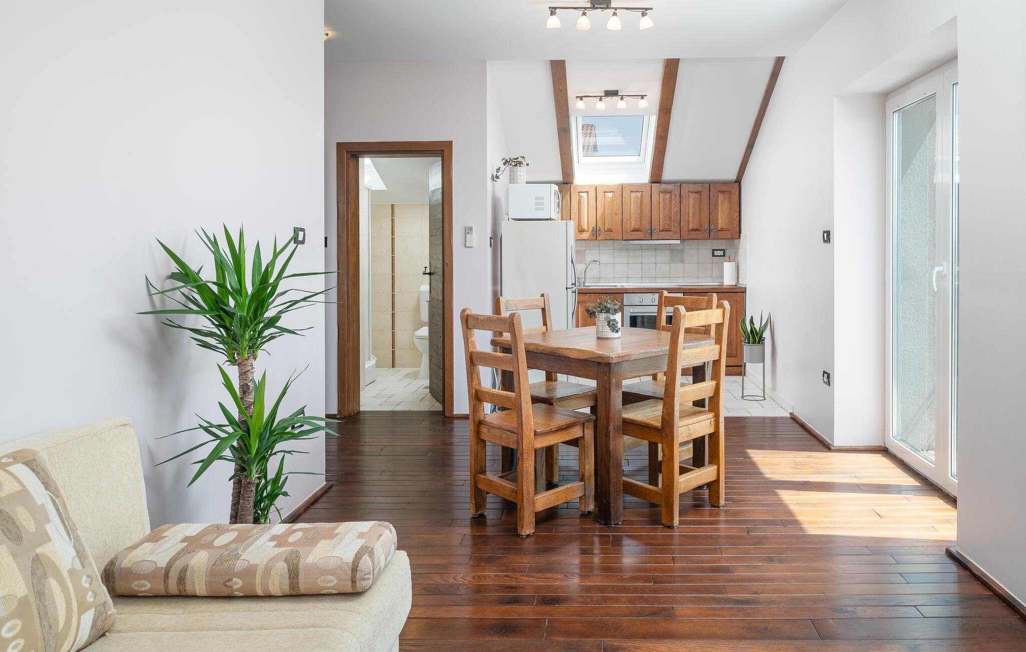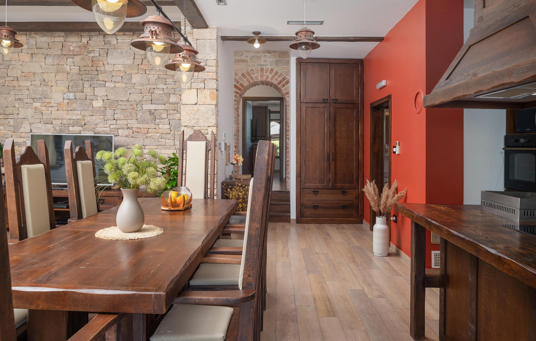 Villa Culina er en smuk villa, som er perfekt til store grupper: Villaen kan rumme op til 14 personer i tre lejligheder. Placeringen af ??villaen er perfekt for dem, der ønsker at udforske byen Zadar. Byen Zadar ligger kun en kort køretur fra villaen. Der er en smuk, stor pool udenfor, hvor I kan forfriske jer eller svømme. Det indendørs område byder på nok sjov, så ingen keder sig - fuldt udstyret fitnesscenter, hvor I kan forbrænde kalorier med lækre Konoba-specialiteter. I Konoba er der en brændeovn til rådighed, som er ideel til hjemmebagt brød, men også til den lækre Peka eller tilberedning af forskellige kødretter. Villaen har i alt tre lejligheder. En treværelses lejlighed ligger i stueetagen. Yderligere to lejligheder er på første sal - den ene har to soveværelser og den anden lejlighed har et soveværelse. Villaen har Wi-Fi, har aircondition og byder på alt til en perfekt ferie med familien.