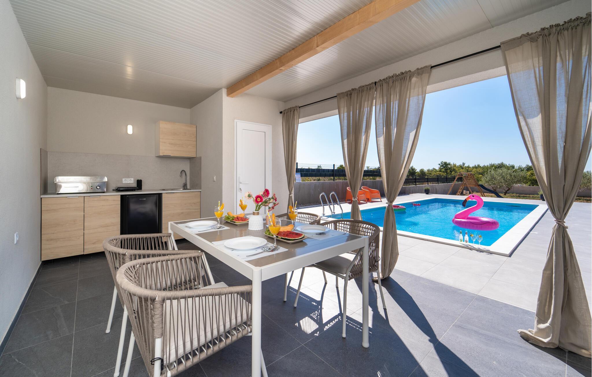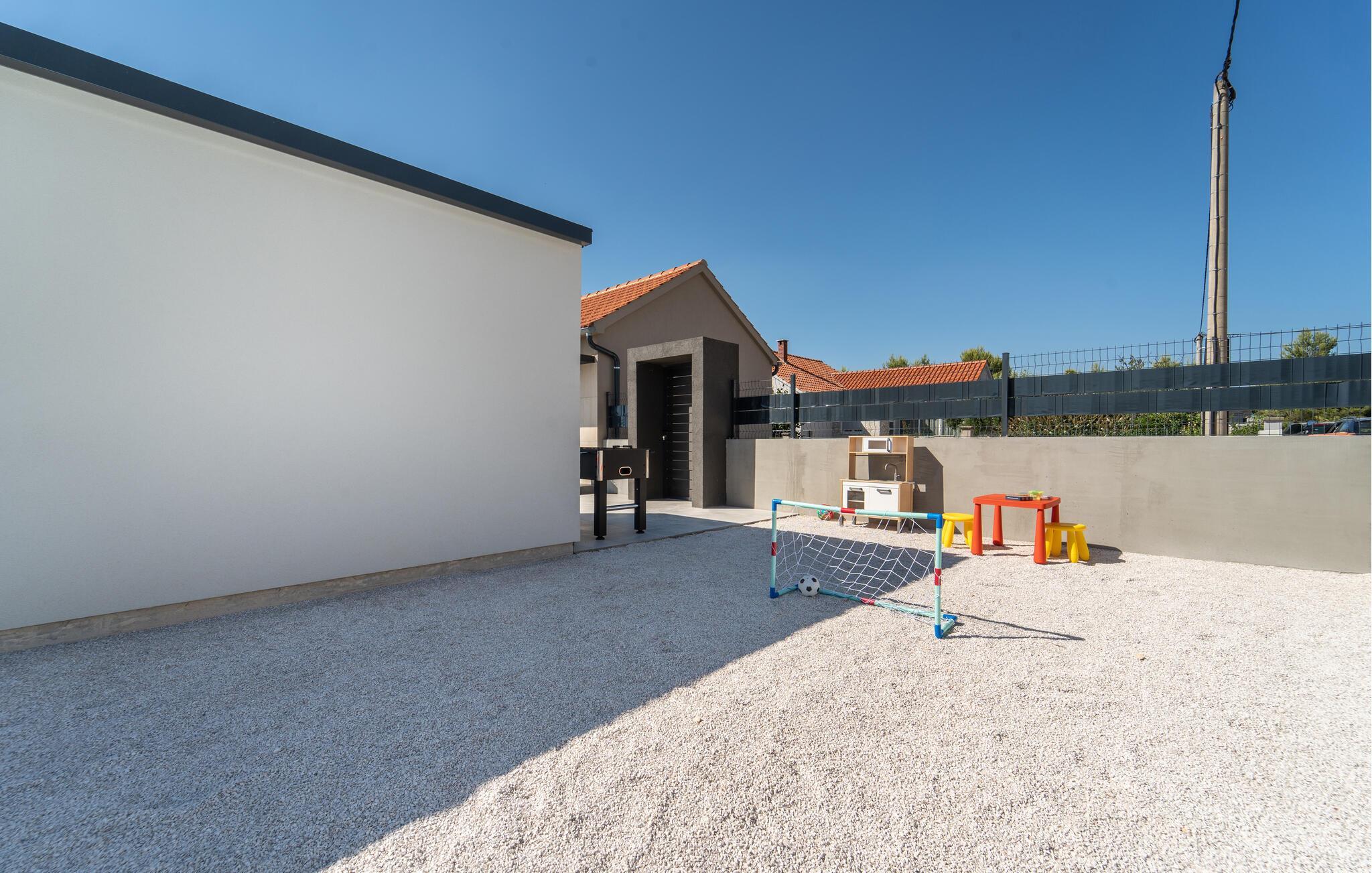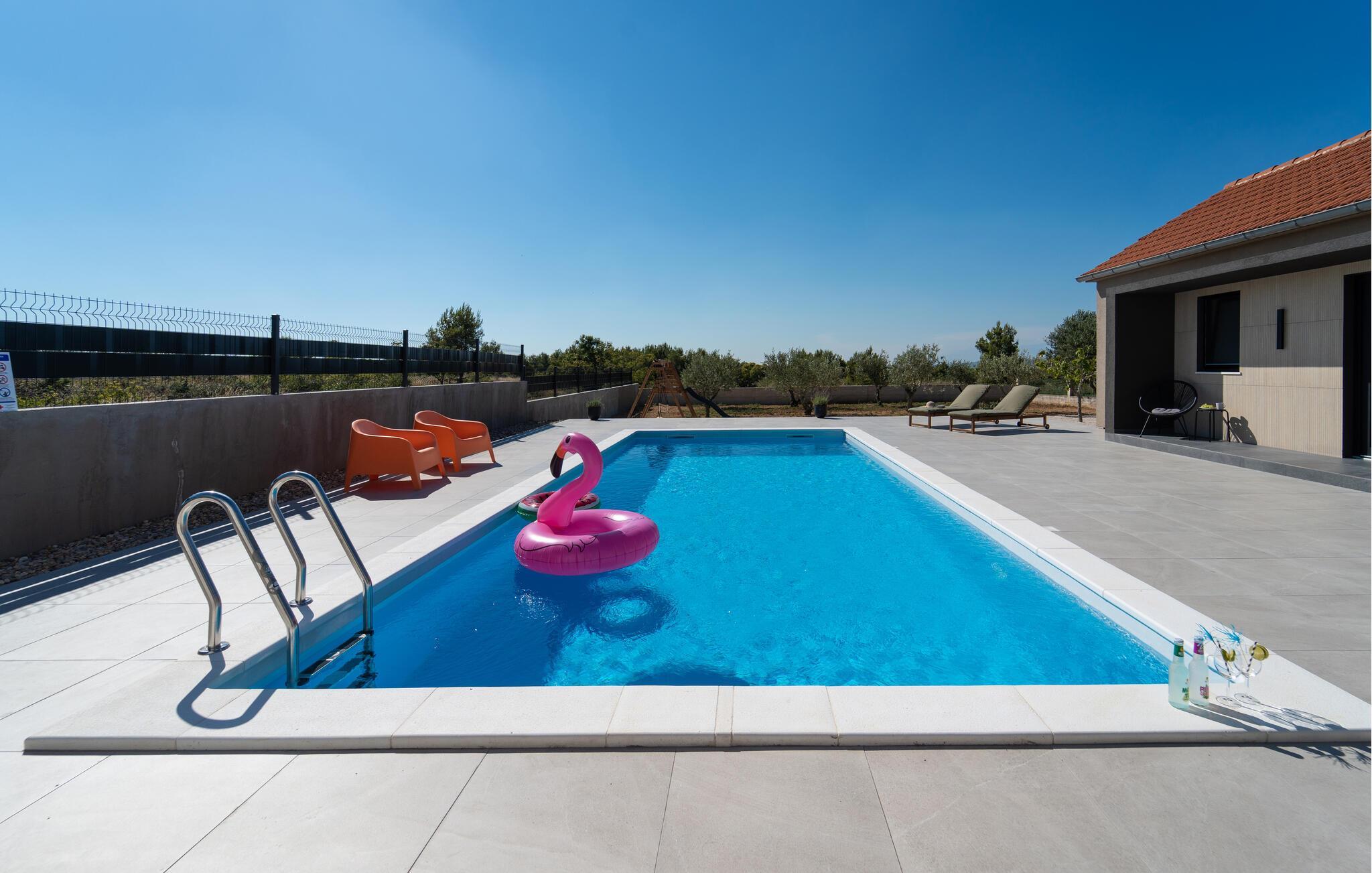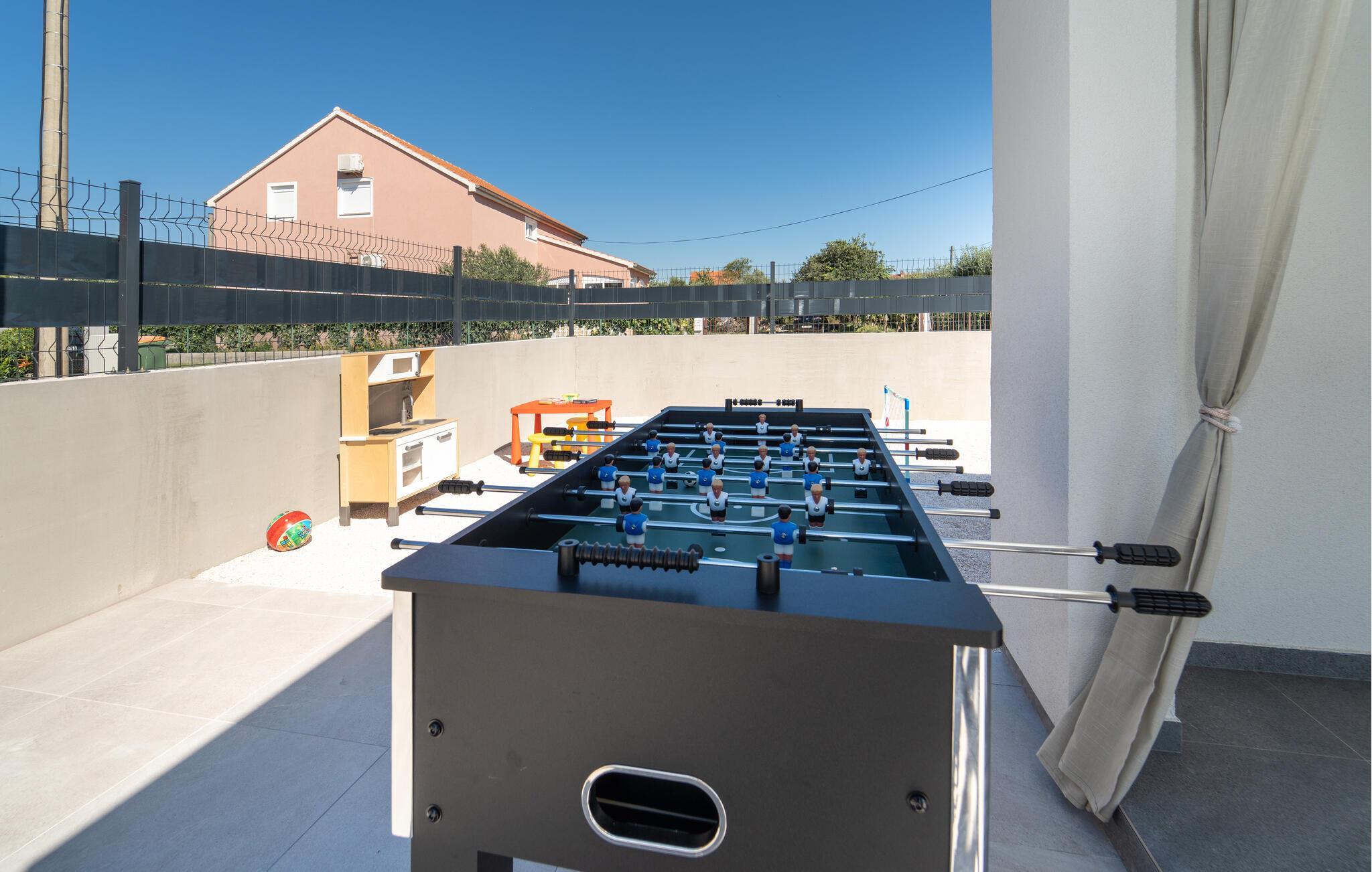 En ferie i dette dejlige hus i Paljuv byder på afslapning og mange aktivitetsmuligheder. Det moderne hus tilbyder mange gode faciliteter for et komfortabelt ophold og er det ideelle udgangspunkt for at opdage regionens skønhed. Begynd jeres dage med en forfriskende dukkert i den private pool, der er omgivet af en rummelig solterrasse. Slap af på en af liggestolene, og nyd den varme kroatiske sol. Det veludstyrede udendørskøkken indbyder til fælles måltider i det fri. Tilbring hyggelige aftener i det overdækkede spiseområde, der har en herlig udsigt over poolen. I kan også dyrke sport i jeres feriehus, for eksempel bordfodbold, fodbold eller badminton.