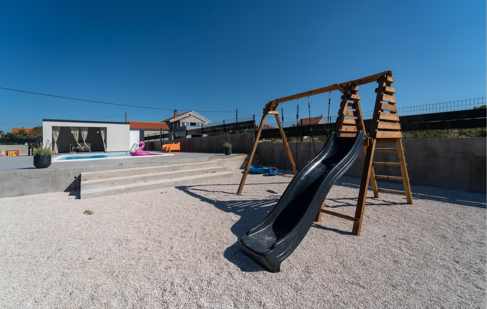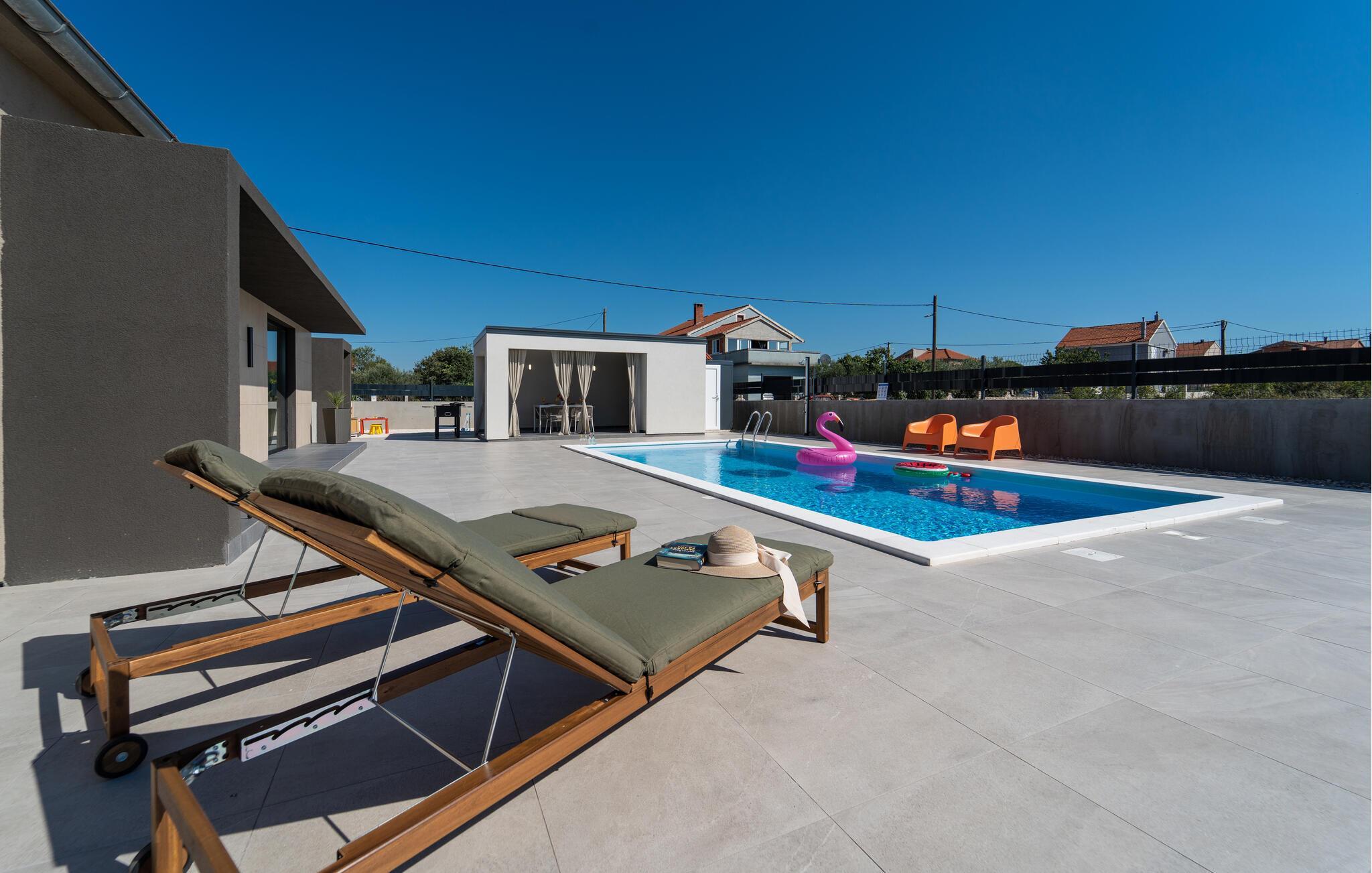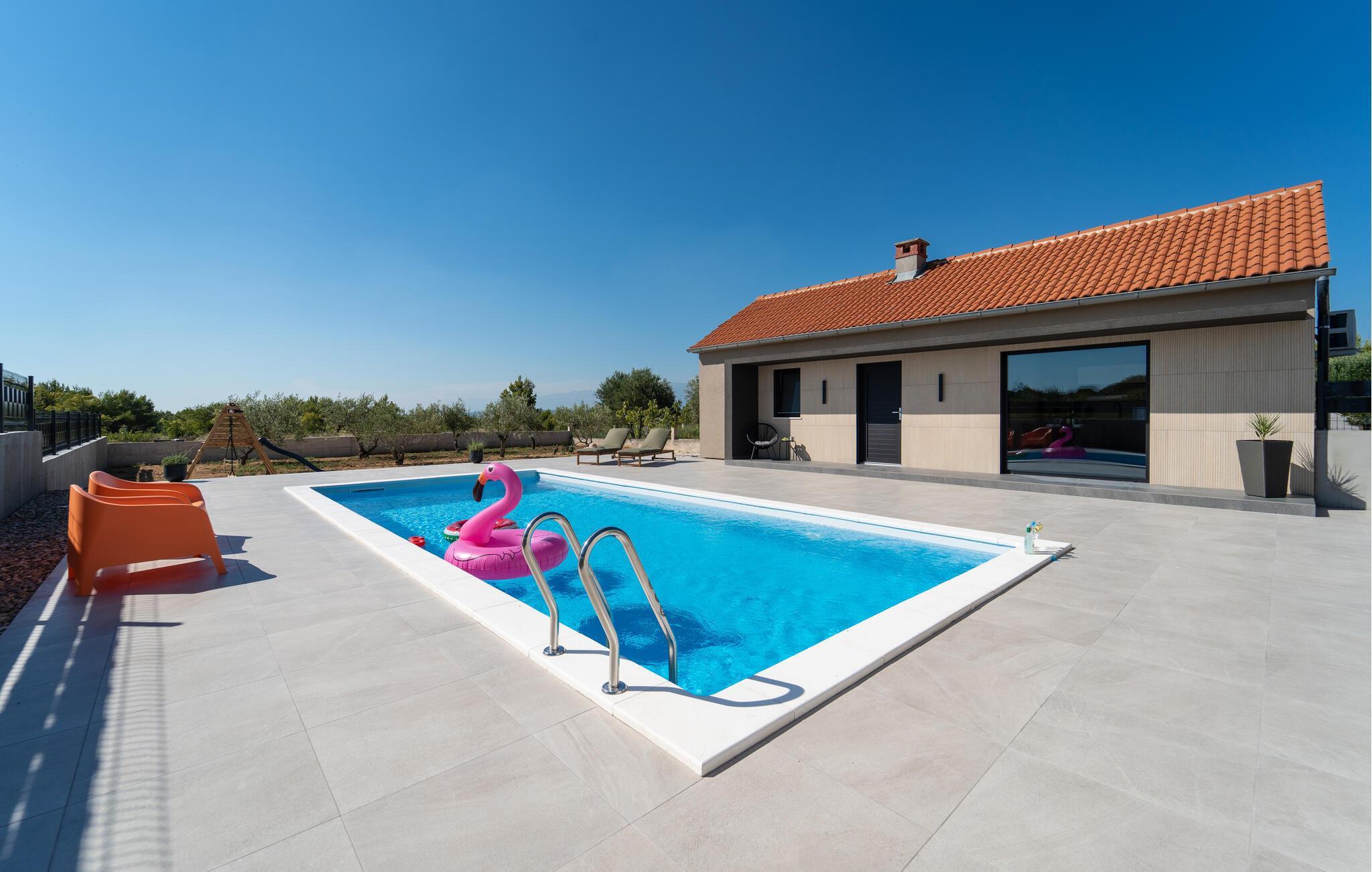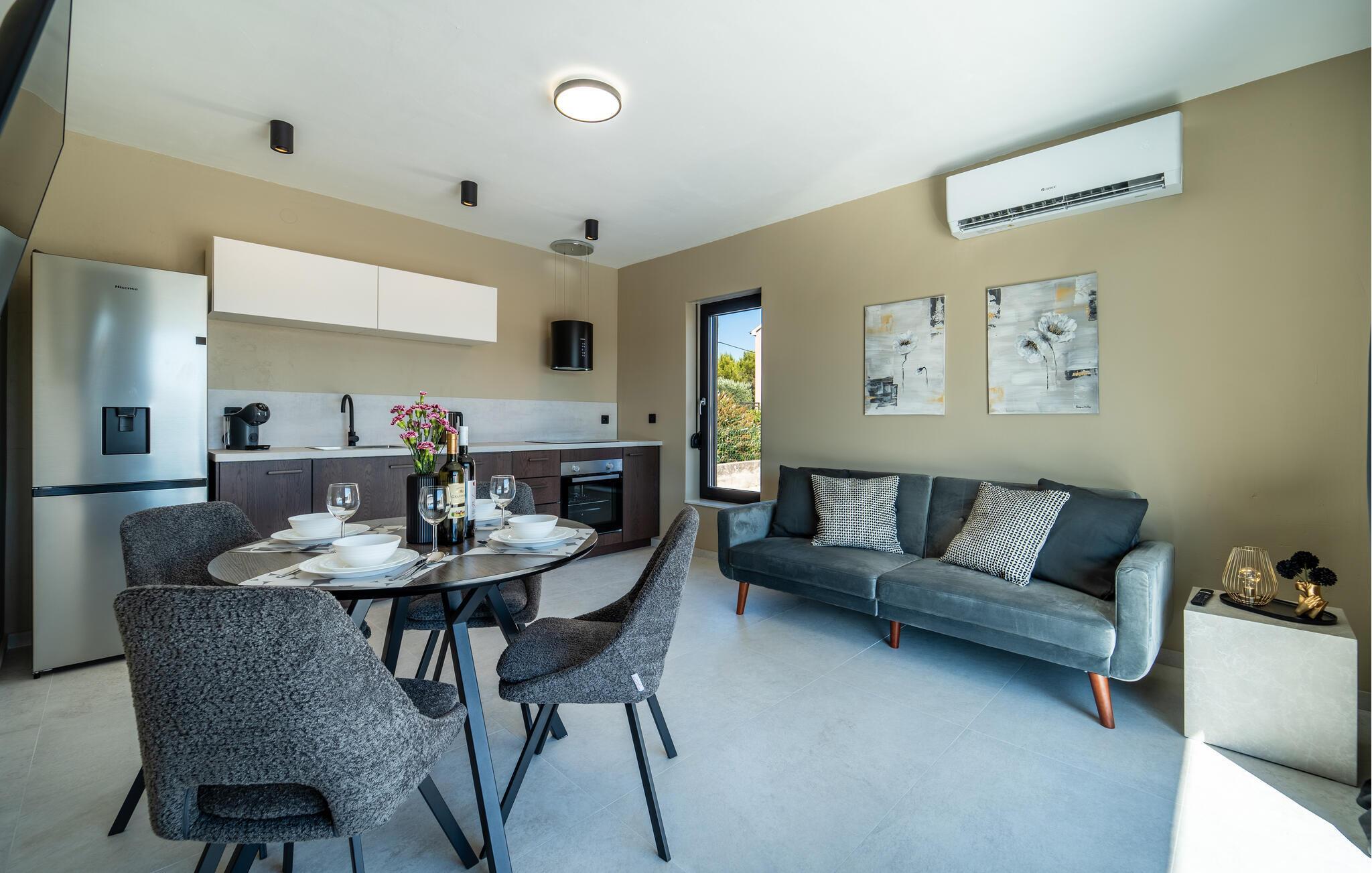 En ferie i dette dejlige hus i Paljuv byder på afslapning og mange aktivitetsmuligheder. Det moderne hus tilbyder mange gode faciliteter for et komfortabelt ophold og er det ideelle udgangspunkt for at opdage regionens skønhed. Begynd jeres dage med en forfriskende dukkert i den private pool, der er omgivet af en rummelig solterrasse. Slap af på en af liggestolene, og nyd den varme kroatiske sol. Det veludstyrede udendørskøkken indbyder til fælles måltider i det fri. Tilbring hyggelige aftener i det overdækkede spiseområde, der har en herlig udsigt over poolen. I kan også dyrke sport i jeres feriehus, for eksempel bordfodbold, fodbold eller badminton.