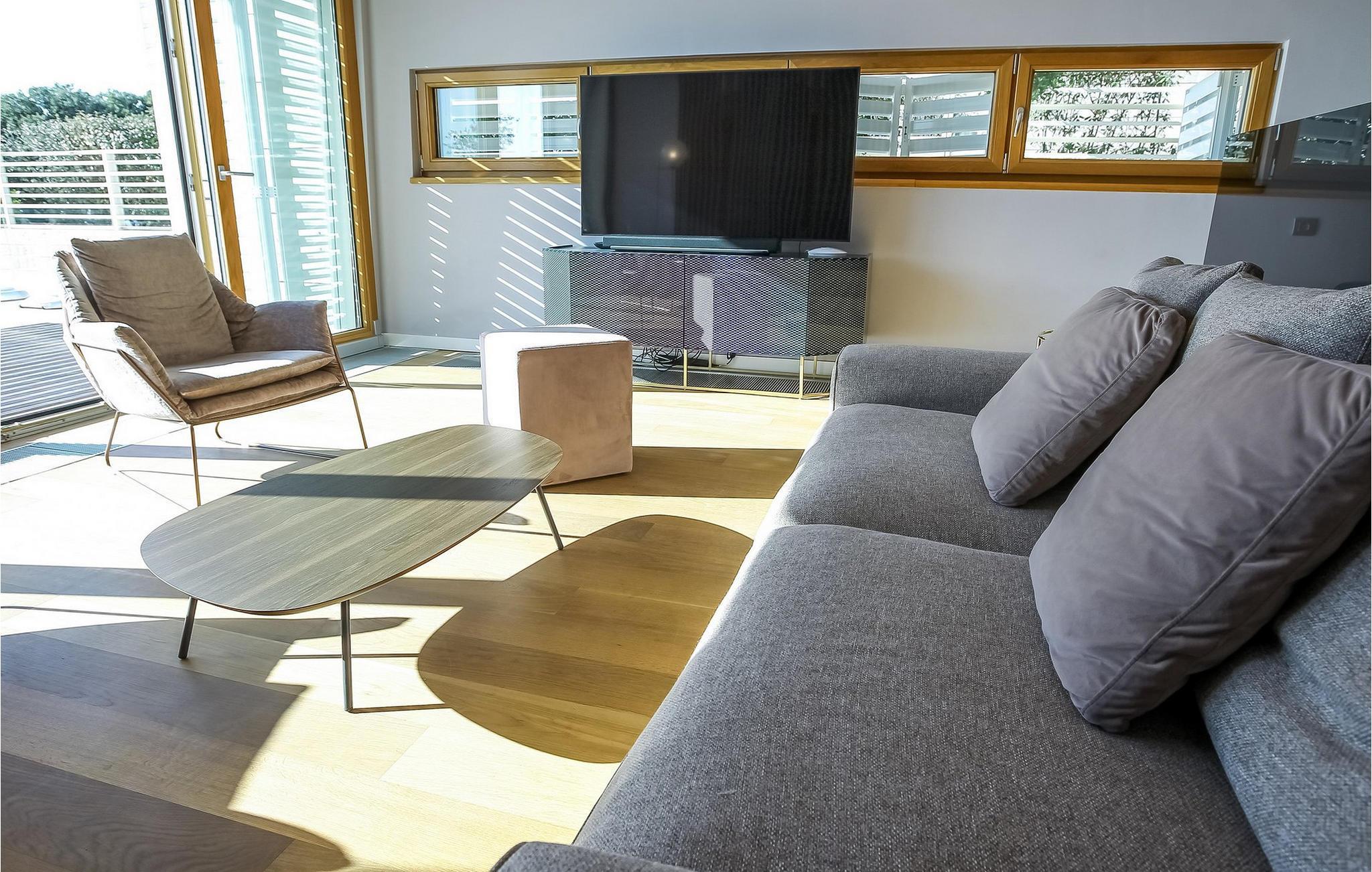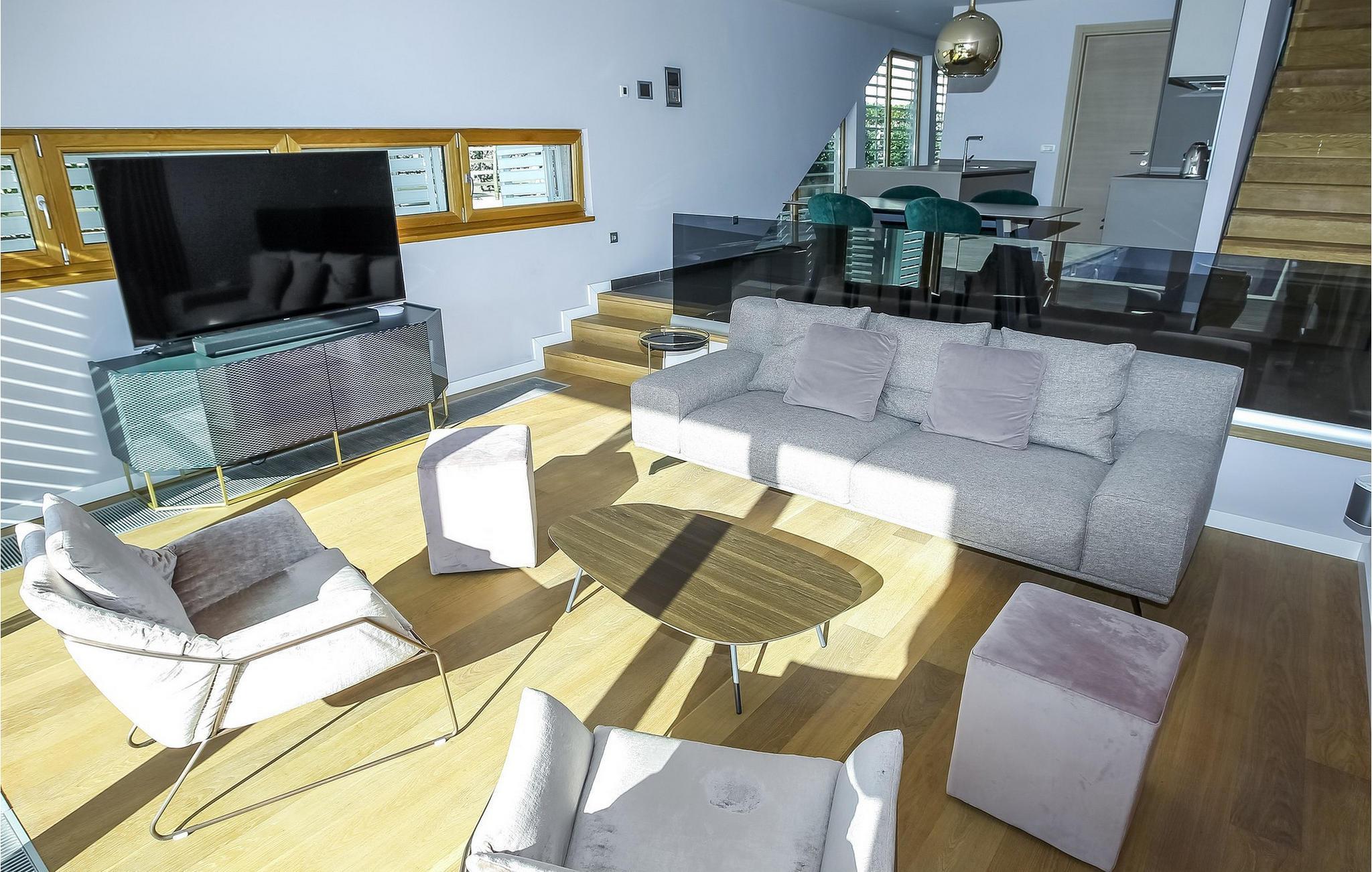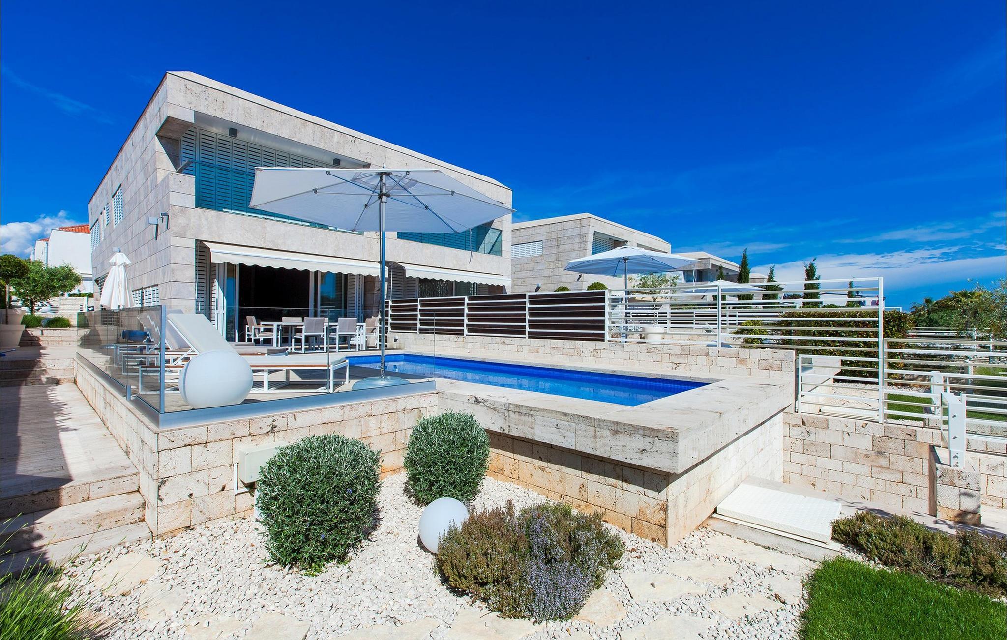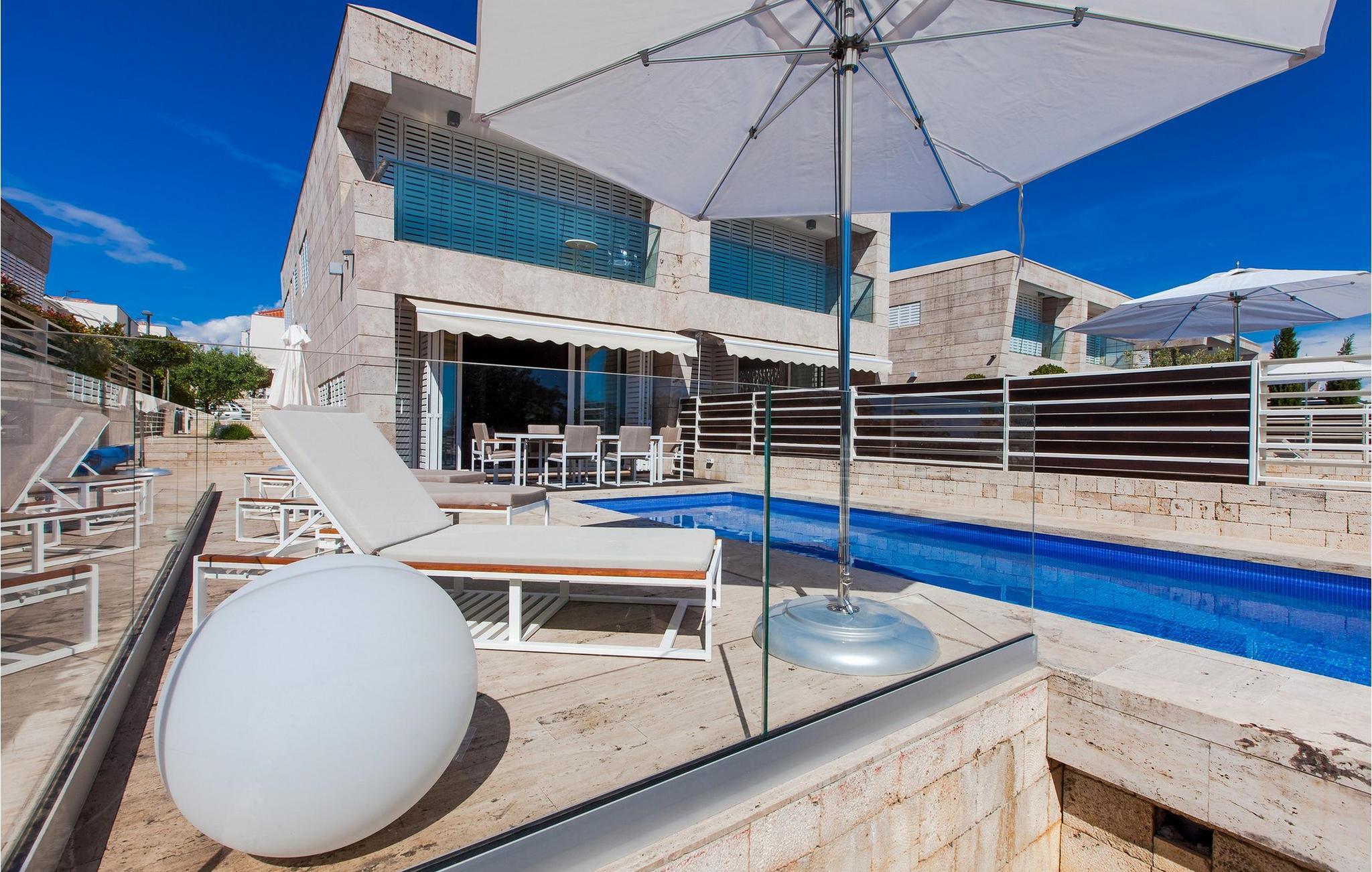 Oplev luksuriøs afslapning i denne villa med havudsigt og pool. En ferie fuld af afslapning og komfort venter jer i den eksklusive Villa Olea i Petrcane. Denne moderne villa ligger kun få skridt fra havet og tilbyder en stilfuld opholdsstemning. I stueetagen inviterer det fuldt udstyrede køkken med spiseplads og en lys stue jer til hyggestunder. Ovenpå kan I nyde udsigten over den private pool, mens I slapper af i de elegante soveværelser eller på den separate loggia. Den indbydende have med swimmingpool er perfekt til forfriskende svømmeture eller afslappende timer i solen. Dase jer på liggestolene og få et glimt af havet. Petrcane er ideelt placeret til en række udflugter: Besøg de nærliggende nationalparker Krka, Kornati og Paklenica, som vil betage jer med deres imponerende naturlige skønhed. Udforsk den historiske by Zadar med dens 3.000 år lange historie, kulturelle højdepunkter og livlige sommerbegivenheder. Uanset om I leder efter rolige stranddage eller eventyr i det omkringliggende område, tilbyder Villa Olea den perfekte base for en uforglemmelig ferie. Bemærk venligst: Ejendommen accepterer ikke ungdomsgrupper under 30 år eller polterabender. Bookinger fra sådanne grupper vil blive afvist, selv ved ankomst eller under opholdet, uden refusion.