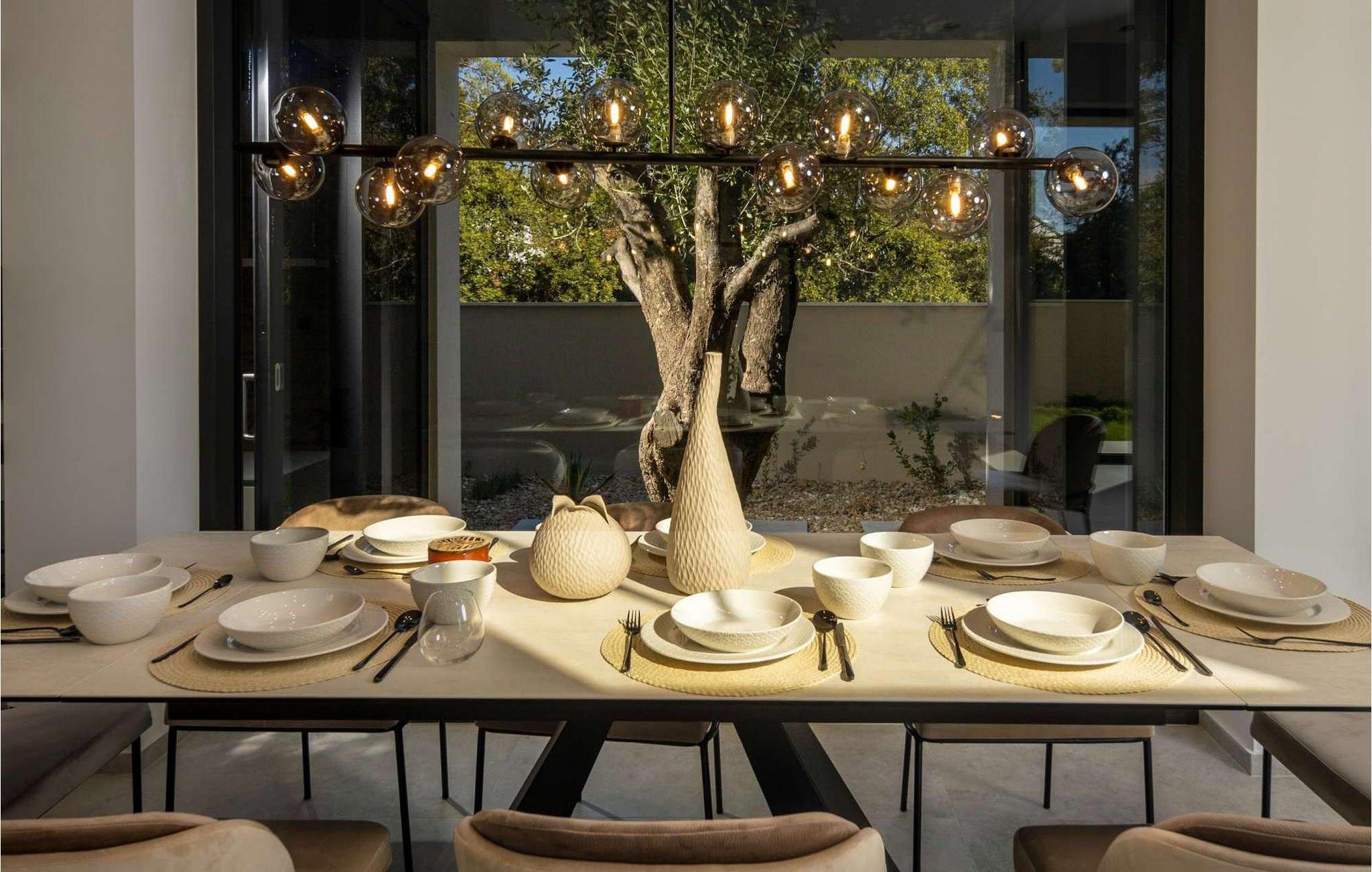 Villa Meta lover en virkelig exceptionel ferie, der har en moderne, lys atmosfære, hvor rene linjer og elegante detaljer smelter harmonisk sammen. Slap af i den rummelige opholdsstue eller nyd måltider sammen ved det stilfulde spisebord med udsigt over poolen. Brug det åbne køkken til afslappede aftener med madlavning og afprøvning af nye opskrifter. Find fred og ro i de komfortable sofaer eller i de hyggelige siddeområder og nyd den elegante ro, som denne villa udstråler.