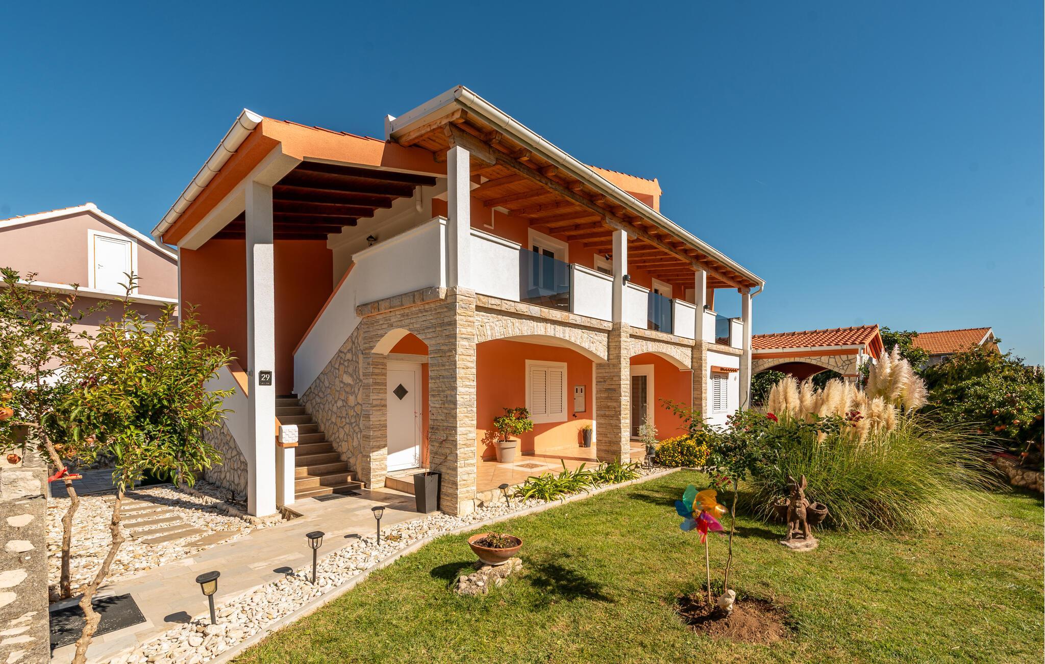 De to enkelt og funktionelt indrettede ferielejligheder ligger i den lille landsby Podgradini. De ligger på første sal og deler en terrasse og en fælles hovedindgang. Få kilometer fra lejligheden ligger stranden hvor også den lille kirke St. Duh findes. Den er kendt for at være bygget ude på en lille ø, som kan besøges via en gangbro. Også Zadar med de mange seværdigheder er inden for overkommelig rækkevidde. Et besøg i den nærliggende Nationalpark Starigrad Paklenica bør man også unde sig selv, og for dem der elsker vild og uberørt natur er en safari i Velebit bjergene, eller en rafting tur på Zmanja floden oplagt. Om aftenen skal I forkæle jer selv med god mad på en af regionens mange lækre restauranter, hvor der både serveres lokale specialiteter og mere internationale retter fra det mediterrane køkken.