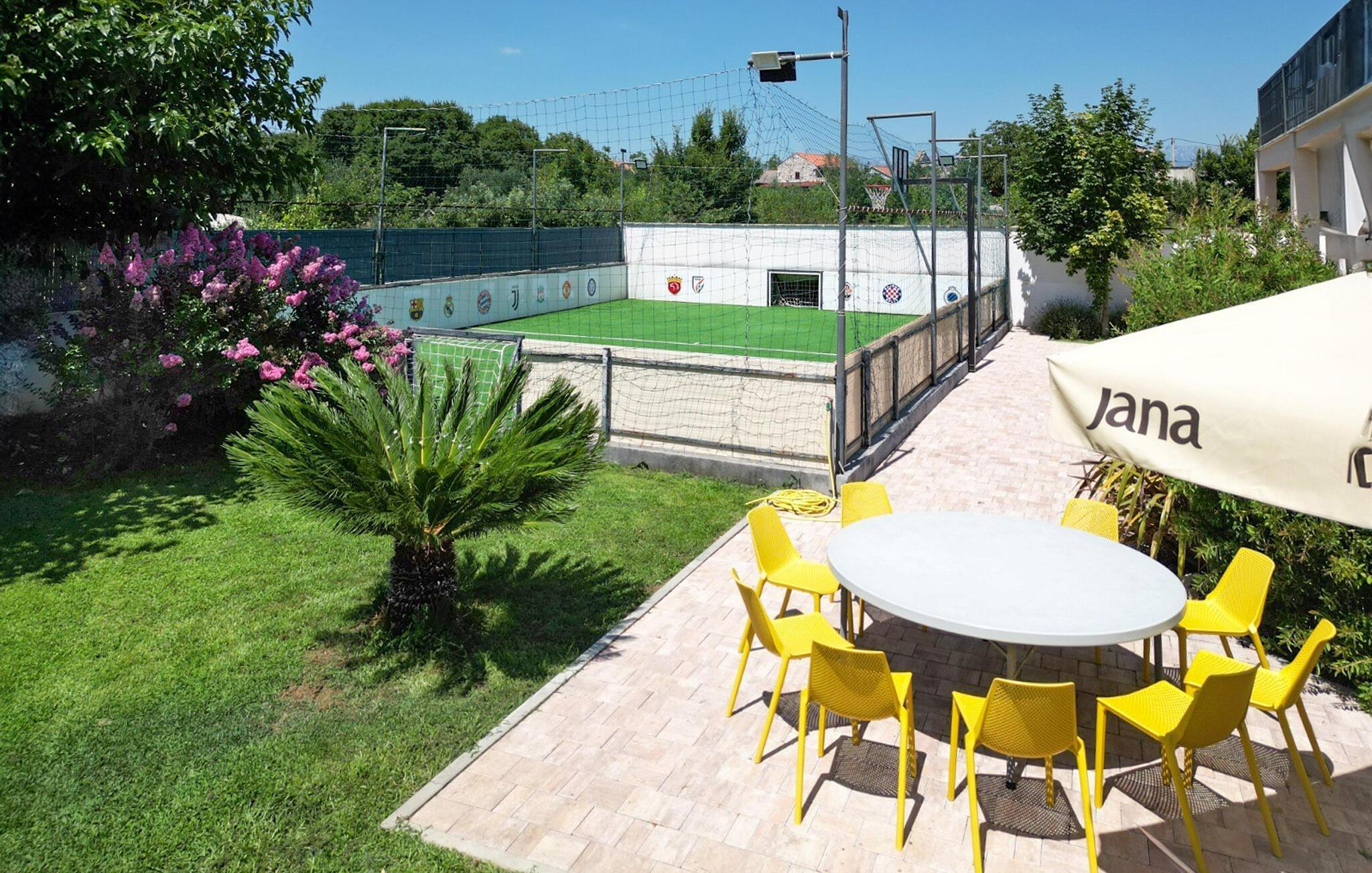 Tilbring en uforglemmelig ferie i dette moderne feriehus med pool og sauna. Den luksuriøse Villa Tona ligger i et roligt område ikke langt fra Zadar og forkæler jer med adskillige ekstrafunktioner, der vil gøre en ferie med familie eller venner til en uforglemmelig oplevelse. Lad jer betage af det elegante interiør af høj kvalitet, og glæd jer til hyggelige madlavningsaftener og muntre måltider i en sofistikeret og stilfuld atmosfære. Forkæl jer selv med afslappende øjeblikke i saunaen, mens andre nyder PlayStation, poolbord, dartskive eller bordfodboldbord. Villa Tona har to fuldt udstyrede køkkener, to spisestuer og to stuer. Den store ejendom omfatter en smukt anlagt have med grill, hvor I kan nyde frisktilberedte måltider med familien. snup en frisk dukkert i den store pool som det første om morgenen, og slap af på en liggestol. Et andet højdepunkt for sportsentusiaster er kunstgræsfodboldbanen. Udforsk den imponerende gamle bydel i Zadar med dens romerske ruiner, det berømte Havorgel og "Hilsen til Solen". Tag en bådtur til de nærliggende øer Ugljan og Pašman eller oplev de turkisblå bugter i Kornati Nationalpark. Udforsk kysten i kajak, tag en vandretur i Velebit Naturpark eller tag en cykeltur gennem Ravni Kotari's idylliske landskab. Prøv frisk fisk og skaldyr i traditionelle taverner, besøg lokale markeder og nyd vinsmagninger på regionens vingårde.