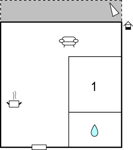 Opholdsstue/køkken - 2 Sovepladser. (Enkeltseng(e)).